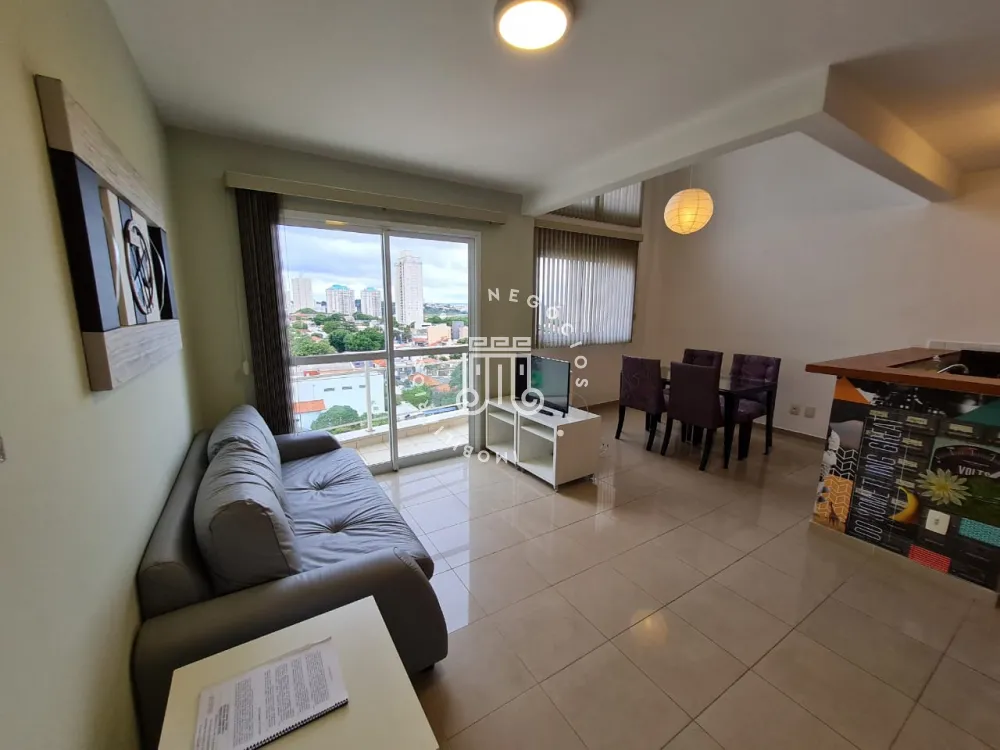 Localizado no bairro Anhangabaú, o apartamento conta com 1 dormitório, sendo 1 suíte com box blindex, closet, 1 cama box de casal, mesa de escritório e criado mudo, closet, sala para 2 ambientes com sacada, piso porcelanato, TV, mesa de vidro com 4 cadeiras, sofá e persianas, lavabo, cozinha com geladeira, fogão, área de serviço com armário embutido e máquina de lavar. Apartamento com 66m² de área útil, pé direito duplo, ar condicionado, sol da tarde, 2 vagas de garagem cobertas + depósito área de lazer e portaria 24h.