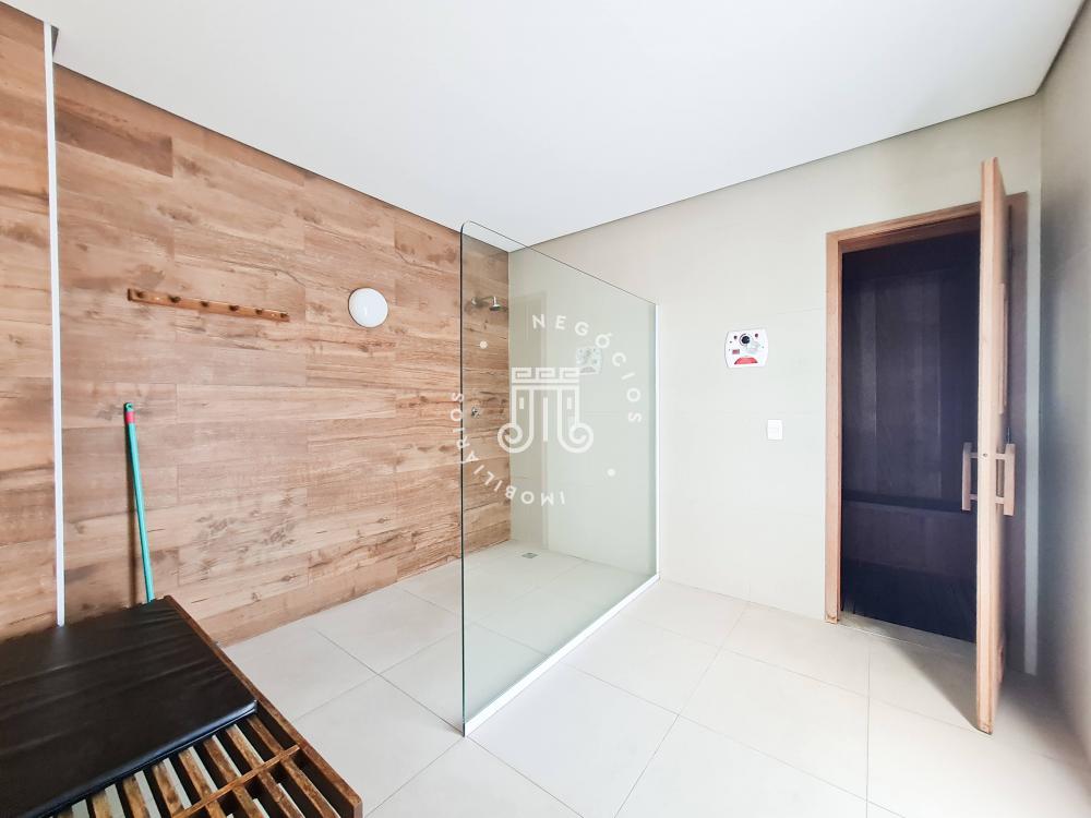 O piso é porcelanato em todos os ambientes e o teto possui acabamento em gesso com iluminação embutida. O apartamento dispõe de uma vaga de garagem coberta.