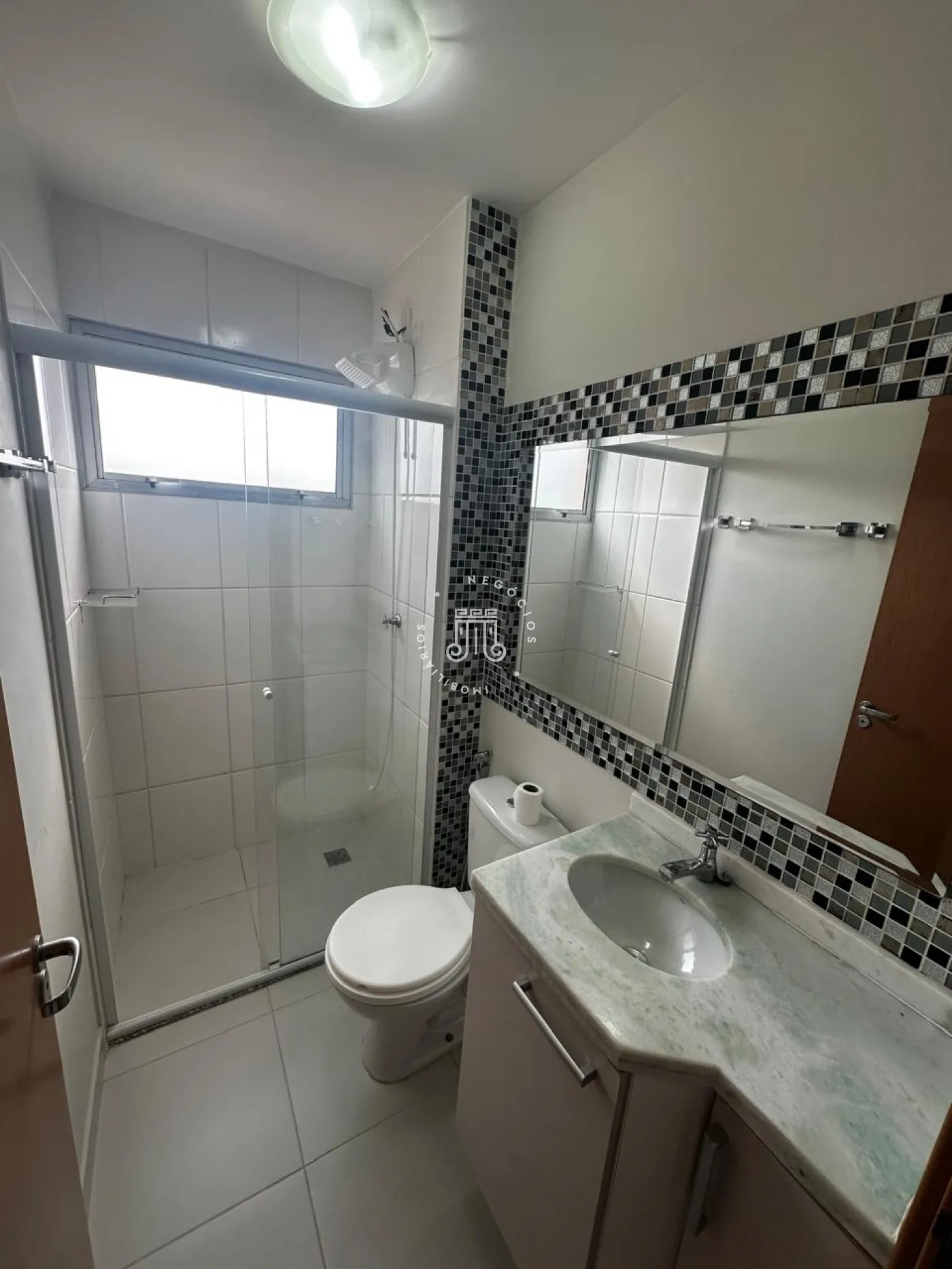 São 2 dormitórios com armários embutidos, sendo 1 com papel de parede, painel para TV e persiana, piso frio, banheiro social com com box blindex, piso porcelanato, sala para 2 ambientes, com painel para TV, persiana, papel de parede e espelho, piso frio, balcão planejado dividindo a cozinha, cozinha com armário embutido, exaustor, piso frio, área de serviço com armário embutido, persiana, piso frio.