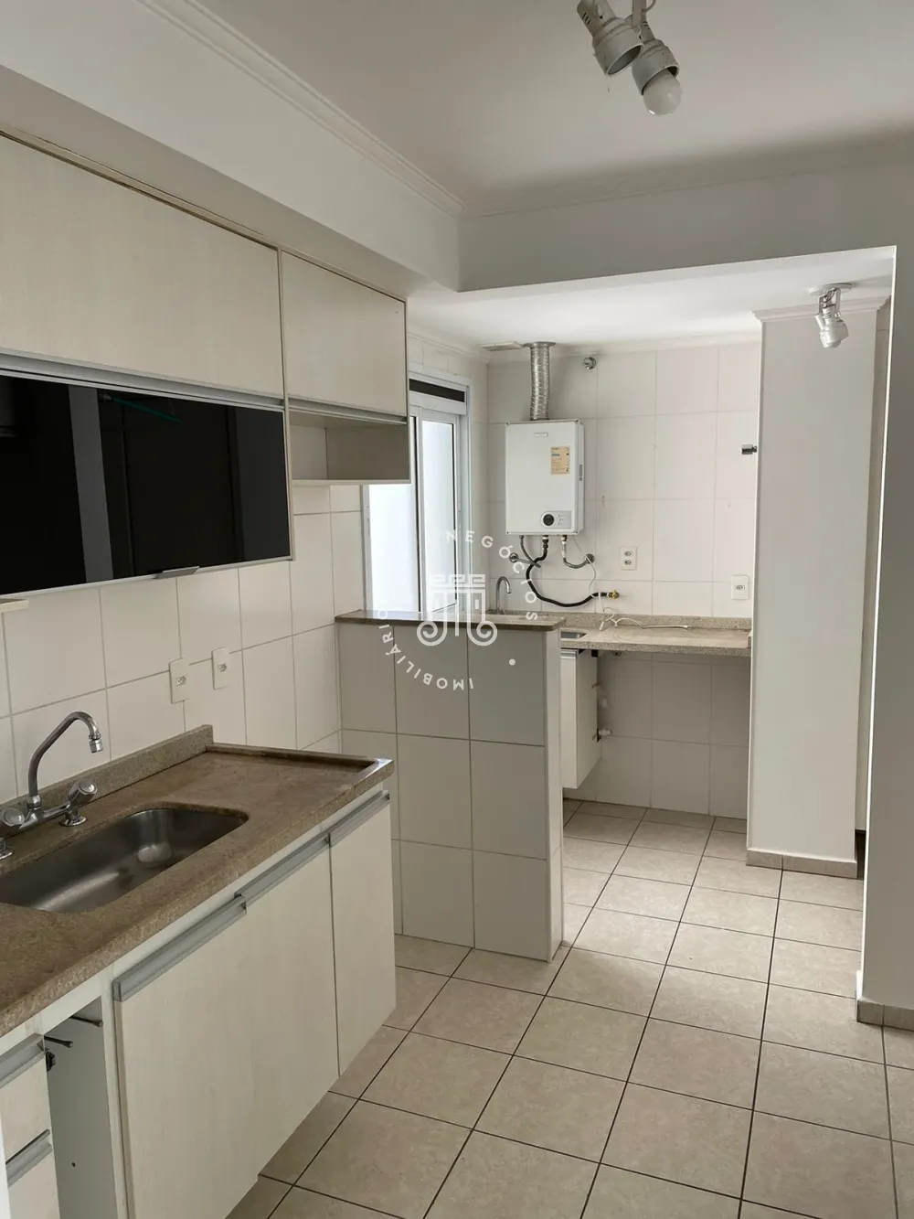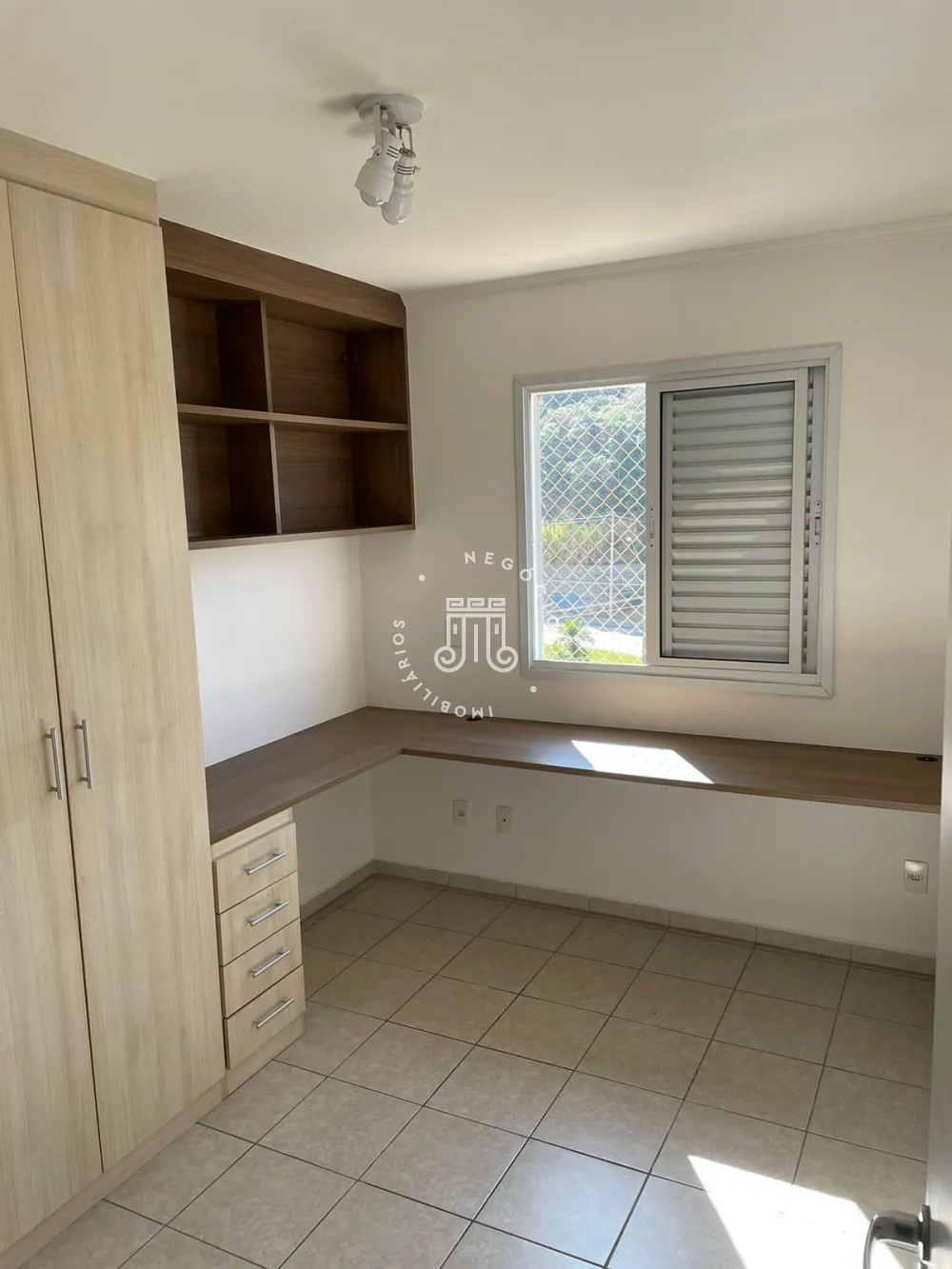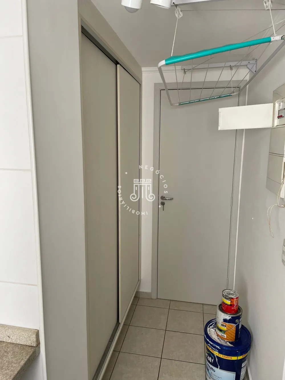 Com ampla sala com prateleiras e painel para TV, varanda fechada com vidros, 3 quartos sendo 1 suíte espaçosa com closet, 1 dormitório com armário e bancada e 1 dormitório vazio, banheiro social, cozinha planejada com balcão e armários, área de serviços bem distribuída com armários, varais e porta de acesso ao hall de entrada do apartamento e 2 vagas de garagens no subsolo.