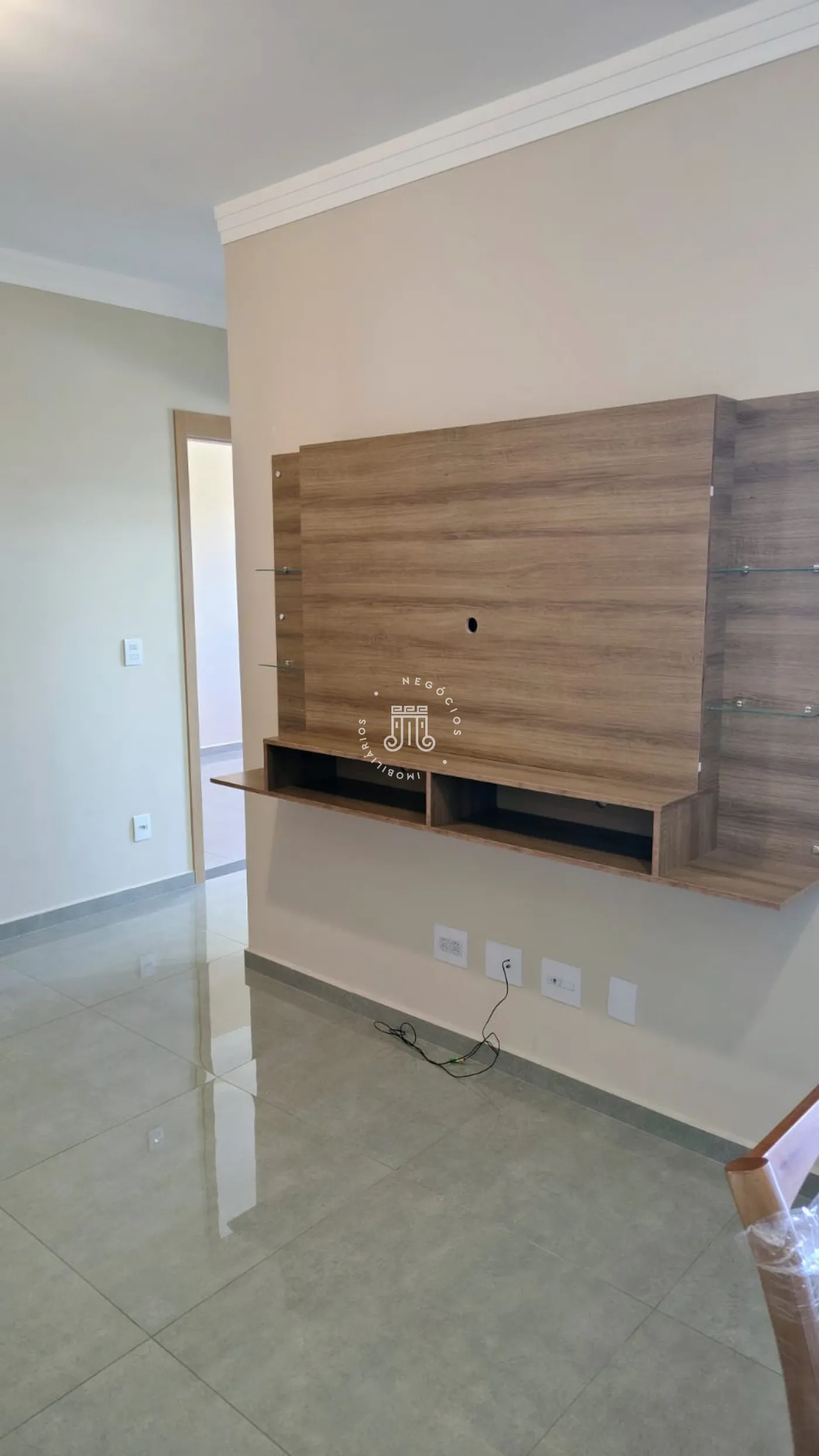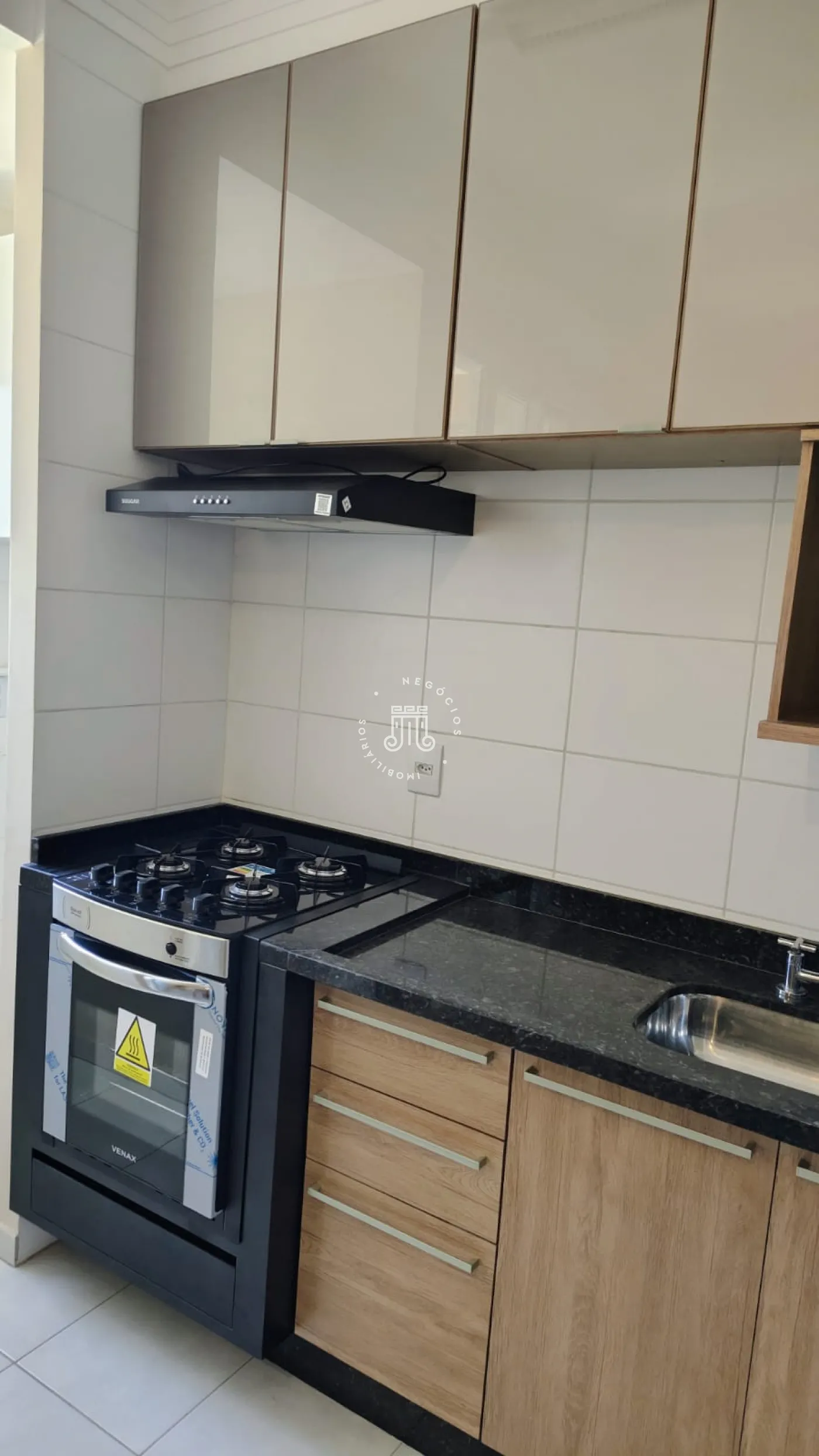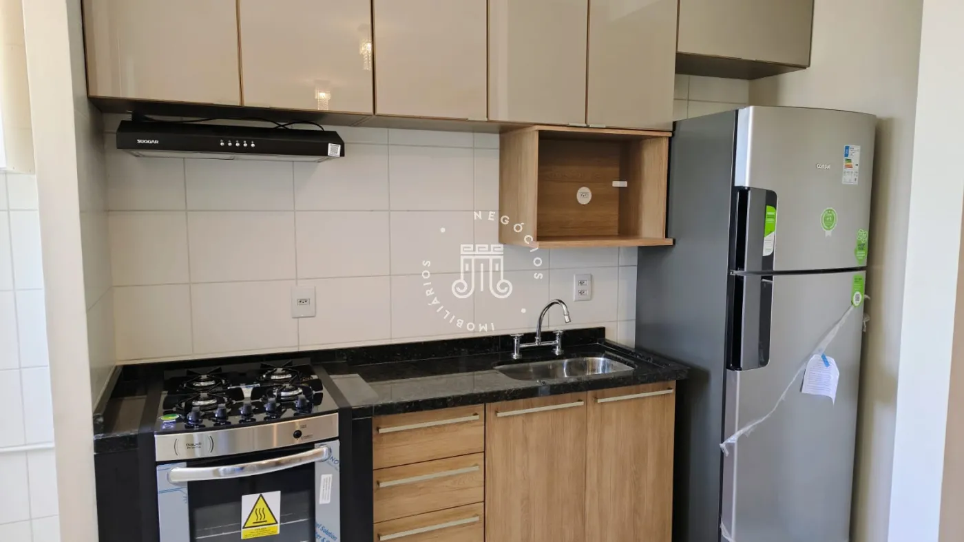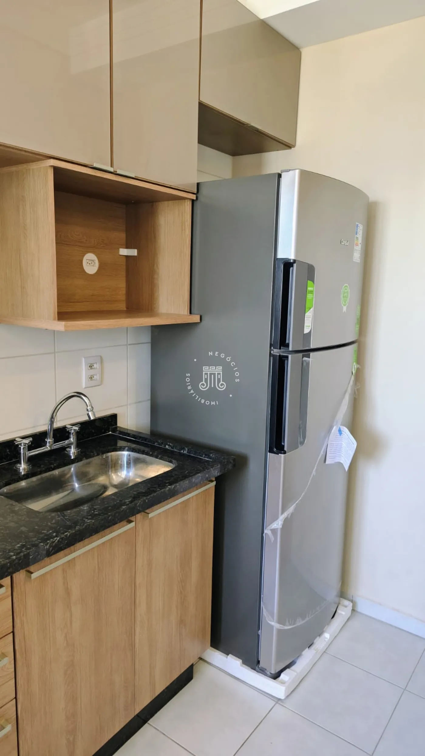 Novo e moderno, com planejados na cozinha, fogão embutido com exaustor, geladeira, mesa com 4 lugares, sofá, painel para TV, cama sem colchão e armário em um dos quartos e iluminação, deixando o local aconchegante !