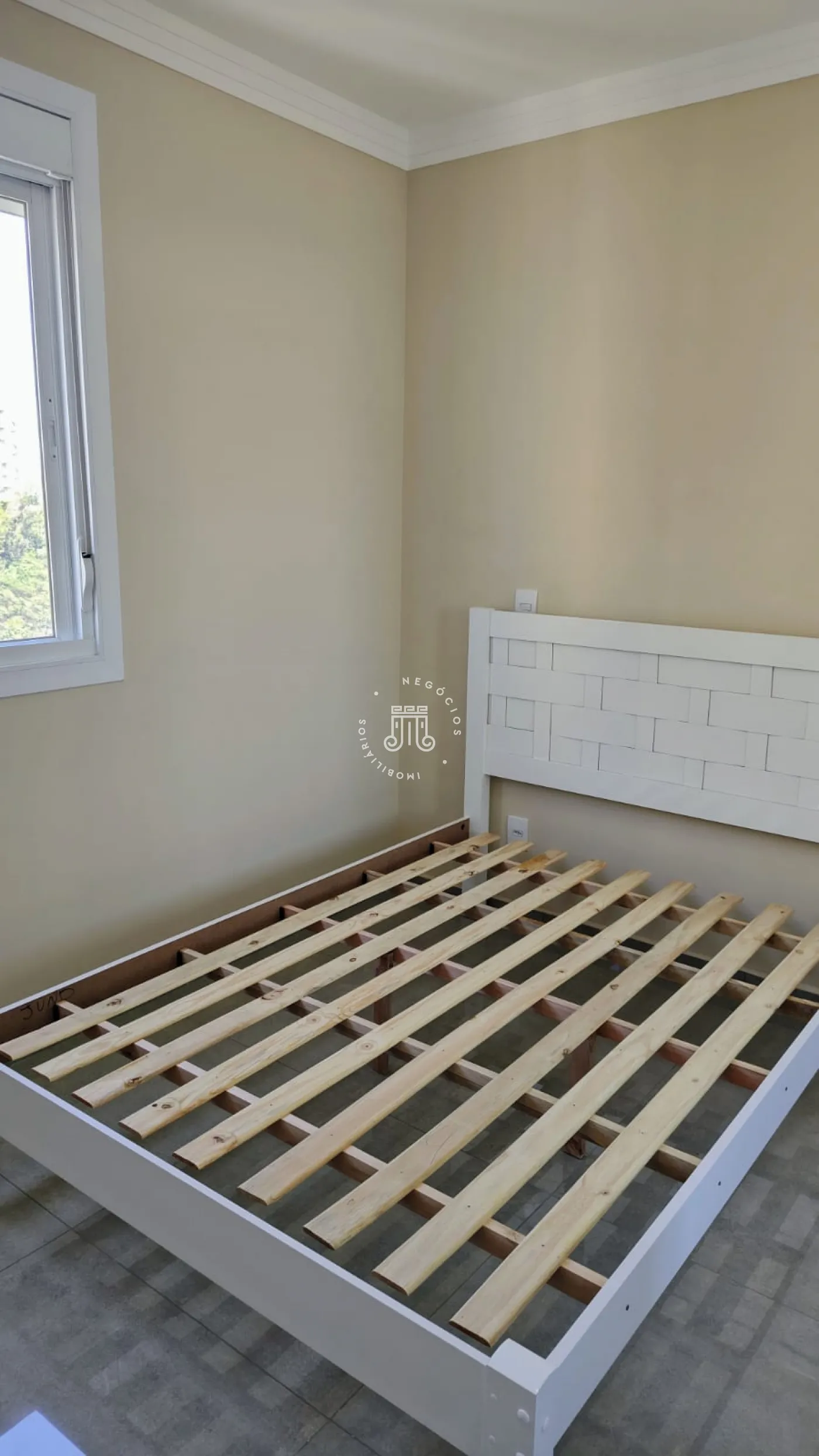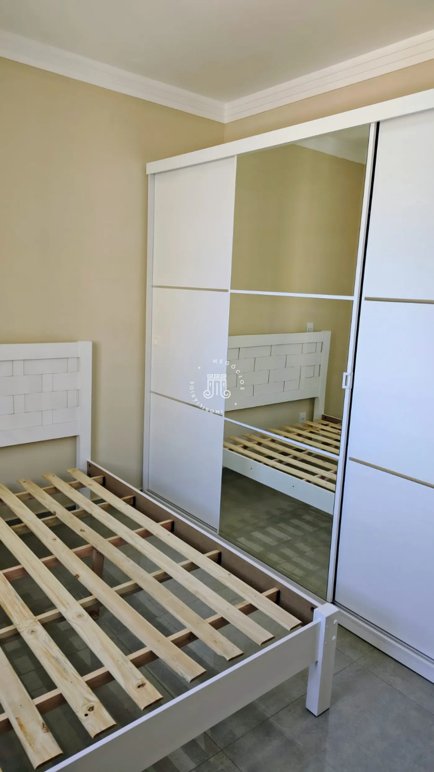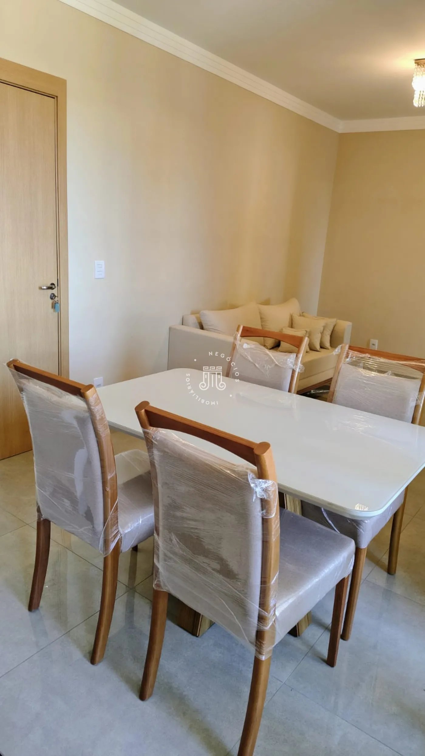 Novo e moderno, com planejados na cozinha, fogão embutido com exaustor, geladeira, mesa com 4 lugares, sofá, painel para TV, cama sem colchão e armário em um dos quartos e iluminação, deixando o local aconchegante !