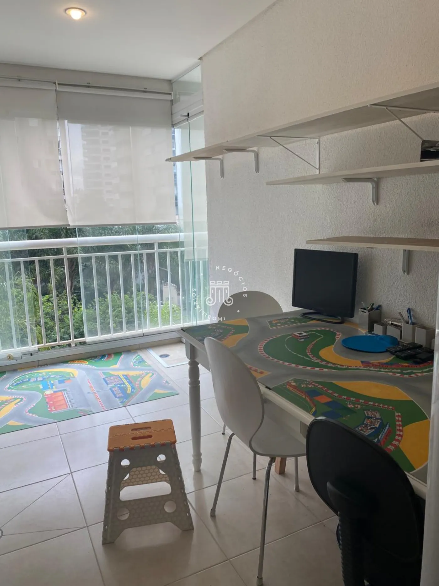 Permanecerão no apartamento os seguintes itens: máquina de lavar e secar roupas, ar-condicionado de 12.000 BTUs modelo inverter com infraestrutura instalada, dormitórios com painel para televisão, ventiladores de teto com controle remoto, televisão LED, cadeira reclinável tipo papai, mesa com cadeiras estofadas, exaustor, fogão de quatro bocas com forno, geladeira, forno elétrico, equipamento Air Fryer, torneiras com comando único de origem alemã, conjunto de panelas, talheres e pratos, tomadas nas voltagens 110V e 220V, tábua de passar roupa fixada na parede, dois varais de parede, dois balcões em granito, bancadas e luminárias com painéis LED.