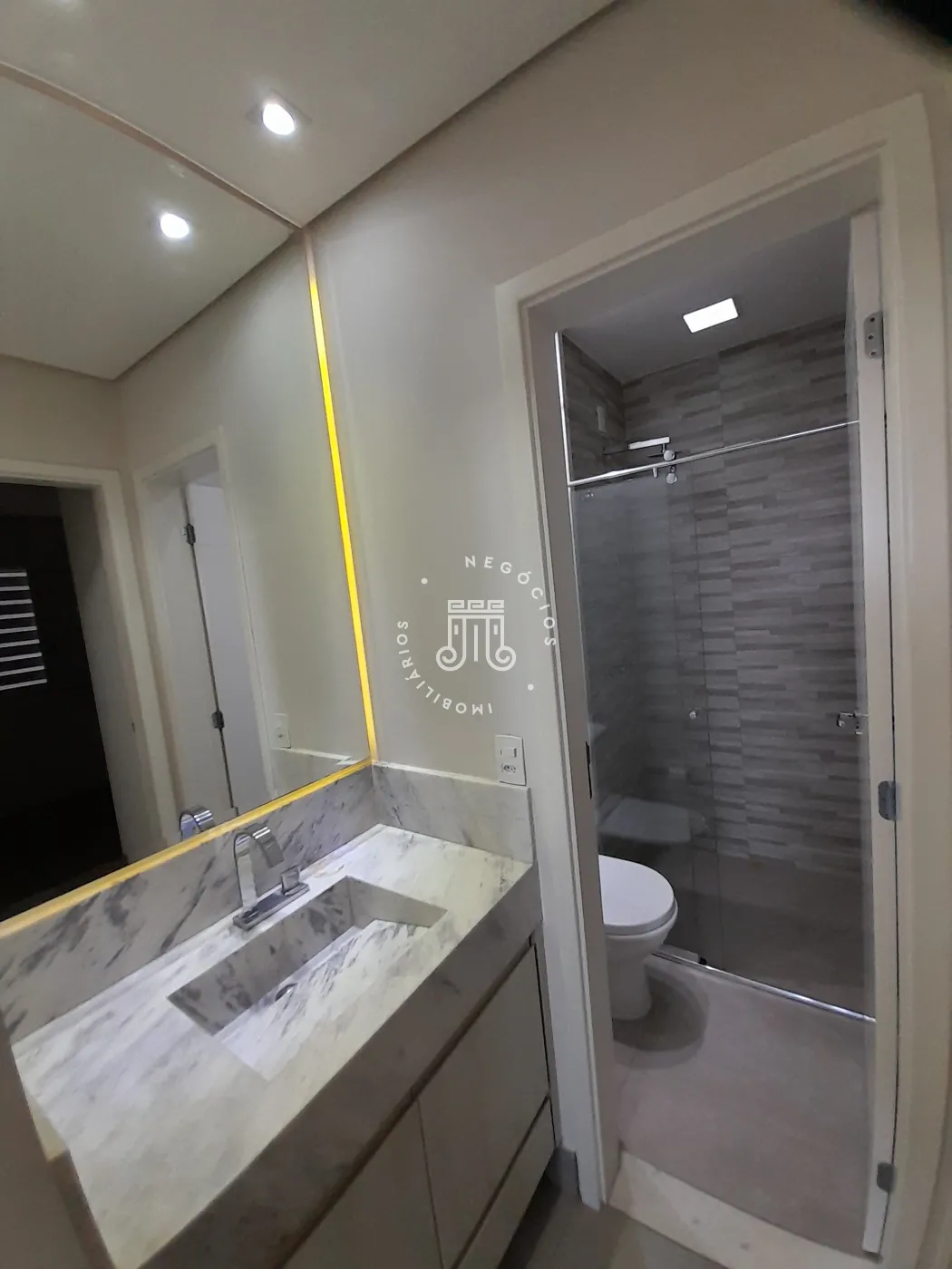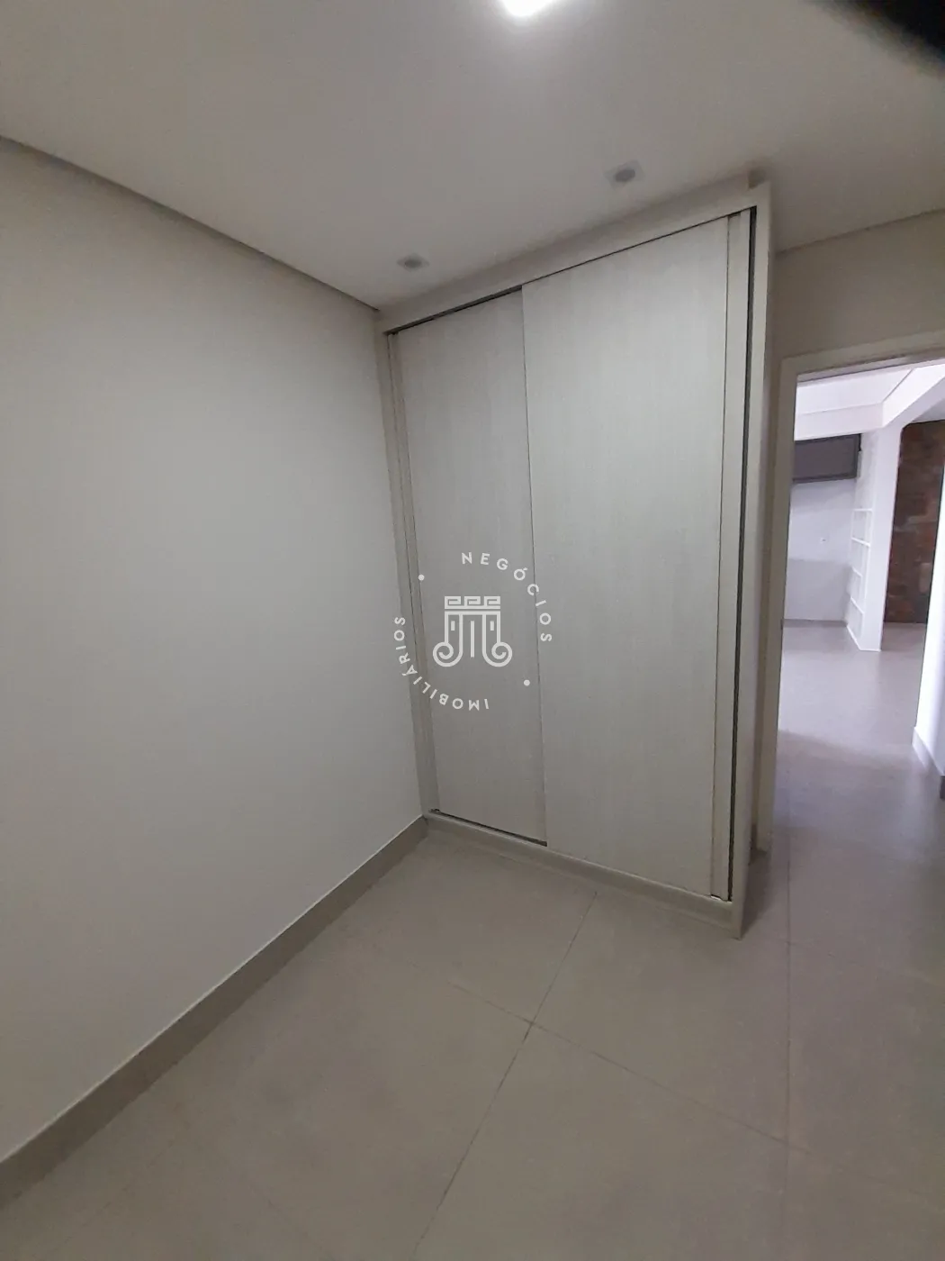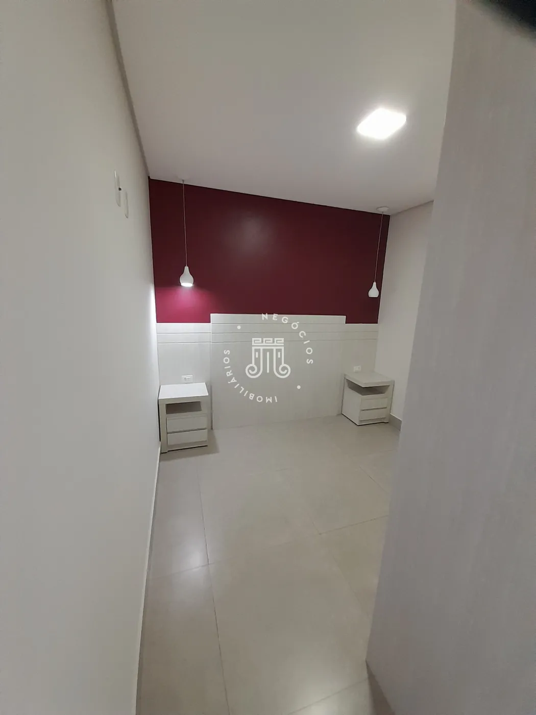 Com fechadura eletrônica e todos os móveis feitos sob medida em marcenaria.