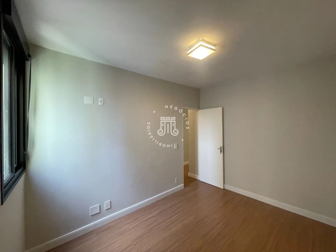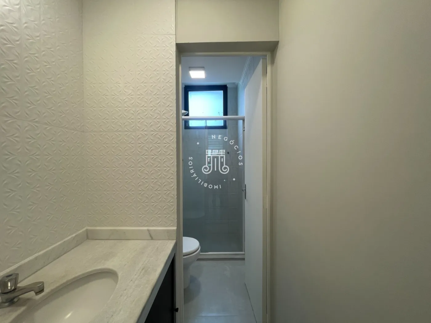 O apartamento é composto por uma sala espaçosa e iluminada, com boa entrada de luz natural, uma cozinha planejada com armários sob medida e integrada à área de serviço, dois quartos de bom tamanho e um banheiro com box de vidro, pia separada e detalhes em revestimento 3D.