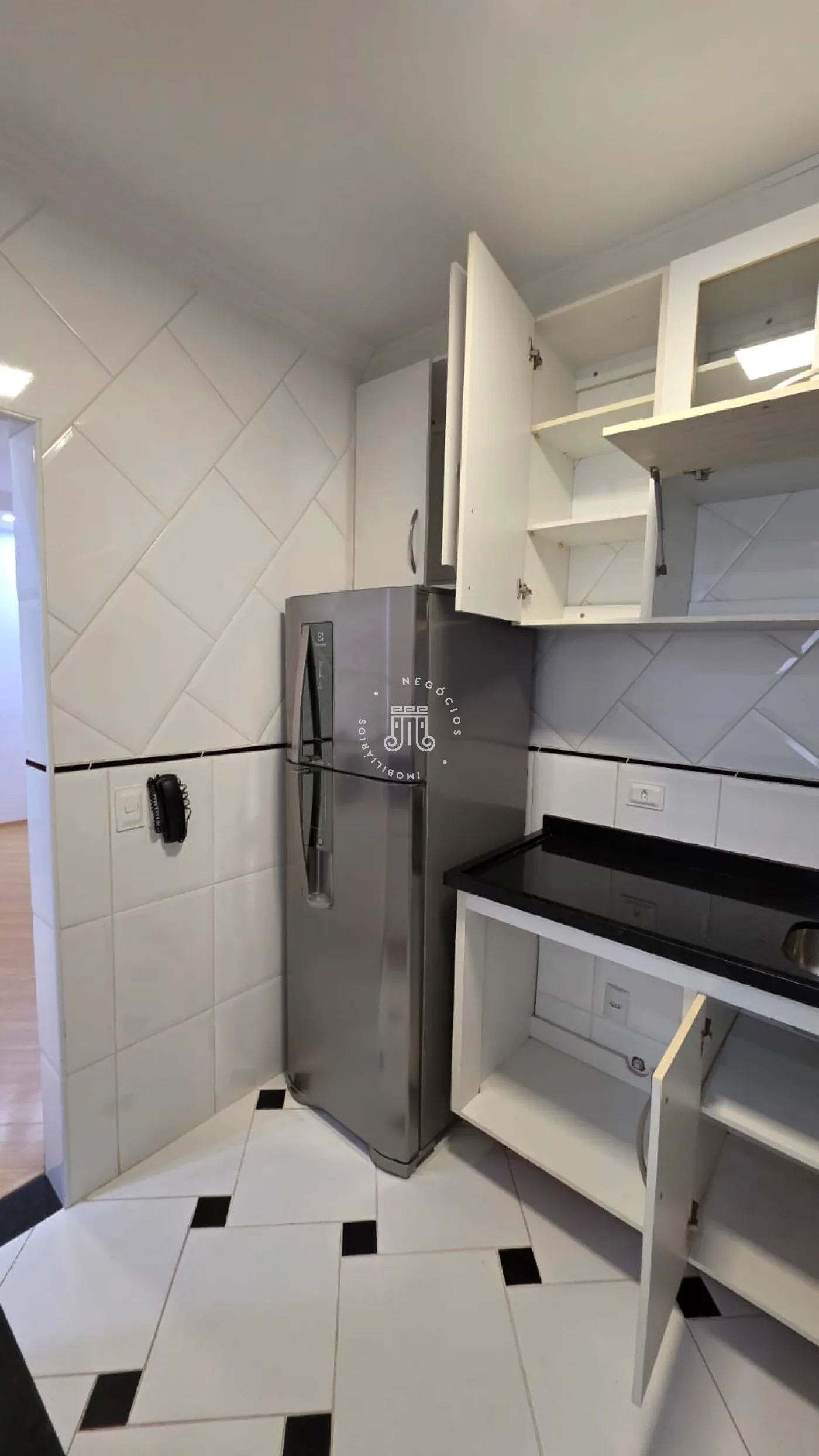 Composto por 2 dormitórios com armários planejados, sala para dois ambientes, banheiro social com box de vidro, cozinha com armários planejados e fogão, lavanderia com armário, 1 vaga de garagem descoberto.