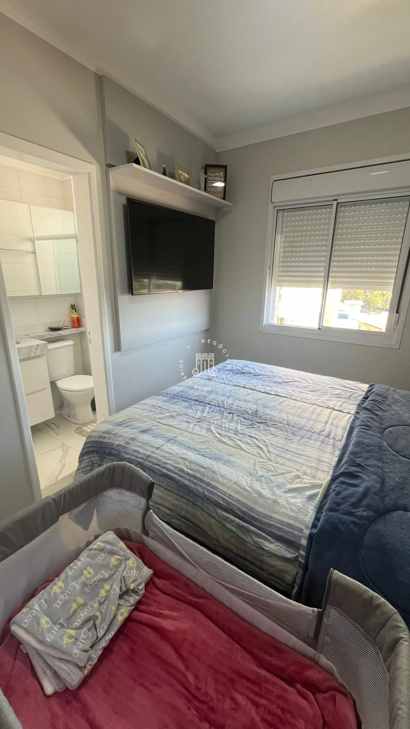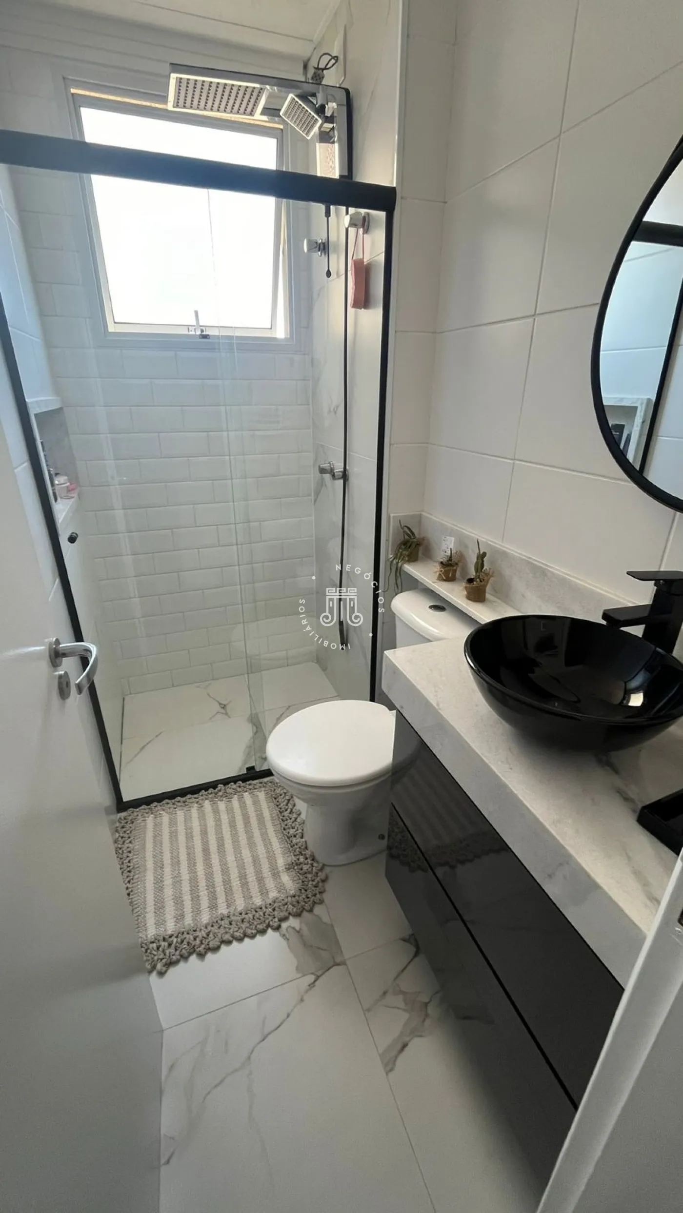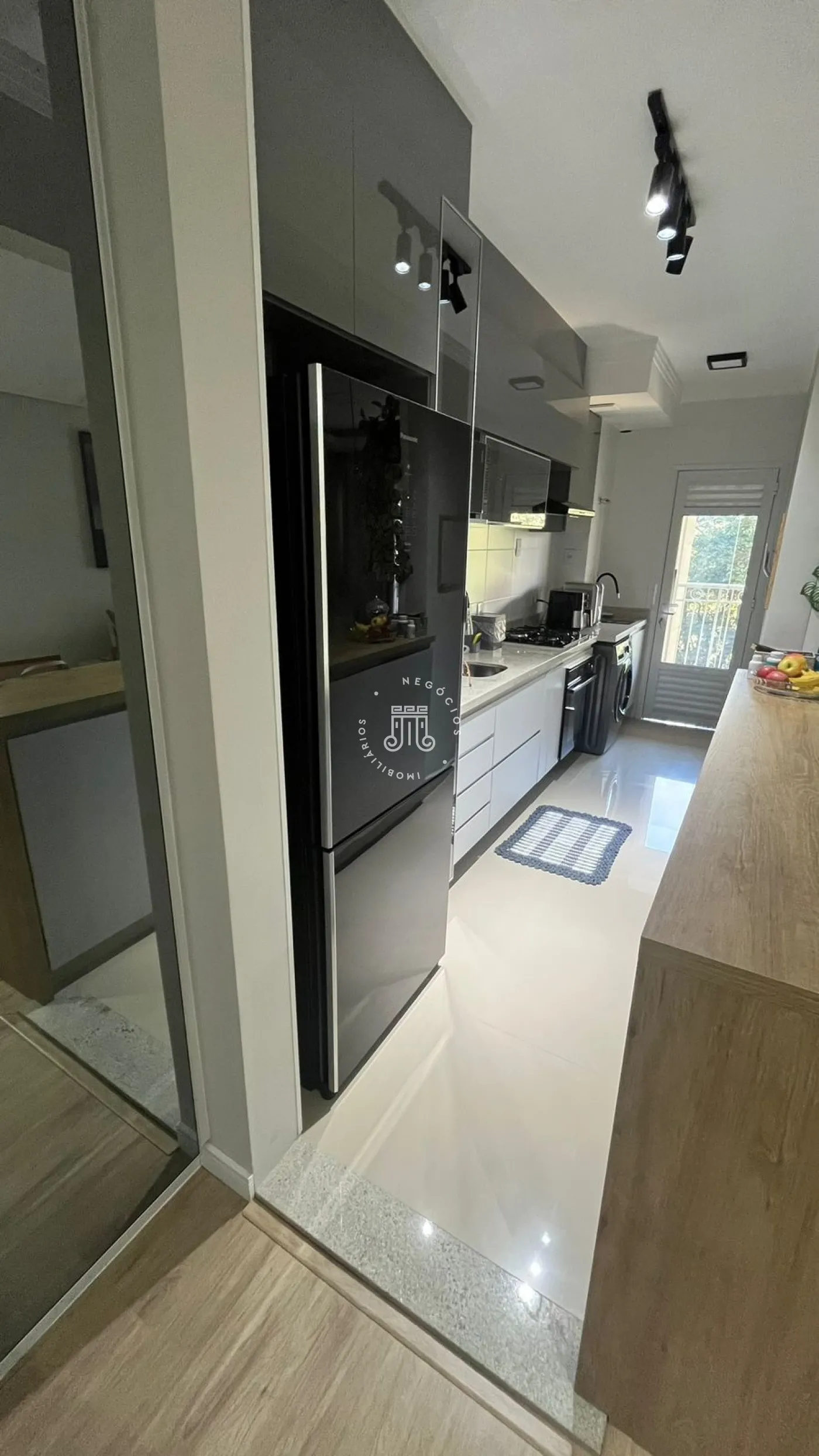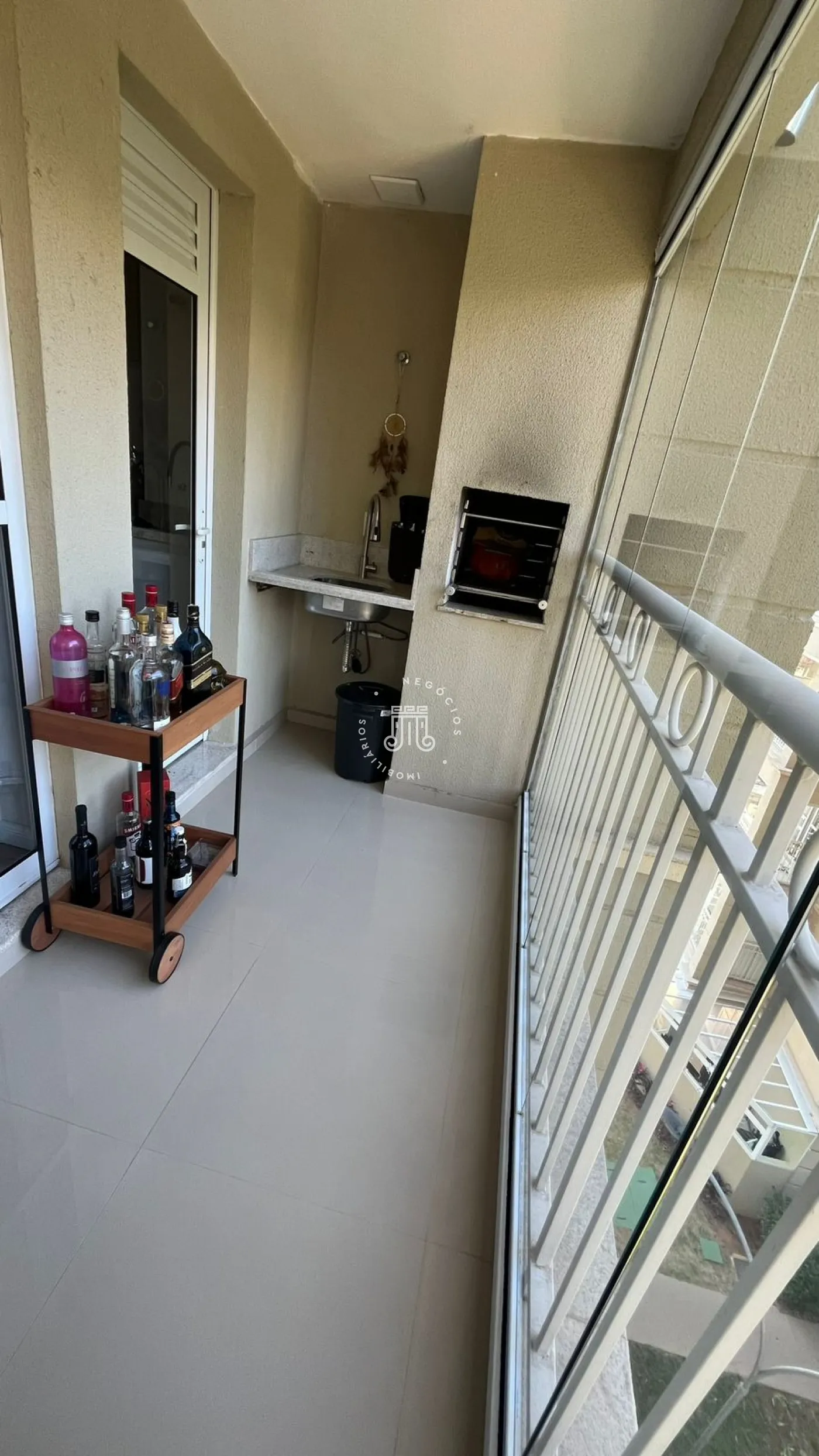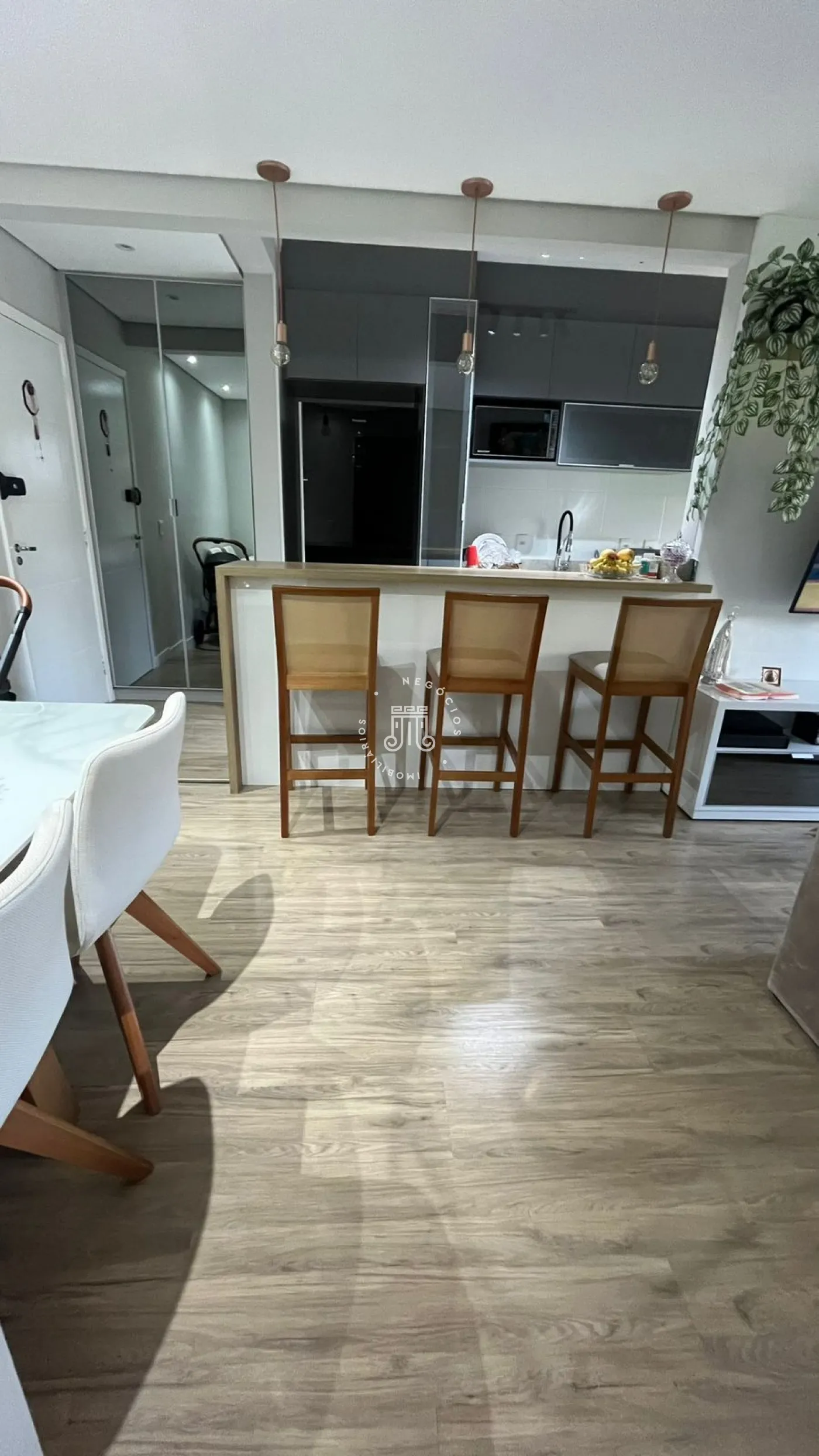 Apartamento com dois quartos, sendo um suíte. Possui sala com dois ambientes integrada à varanda gourmet, banheiro social com box de vidro, cozinha com armários planejados, área de serviço e uma vaga de garagem descoberta.