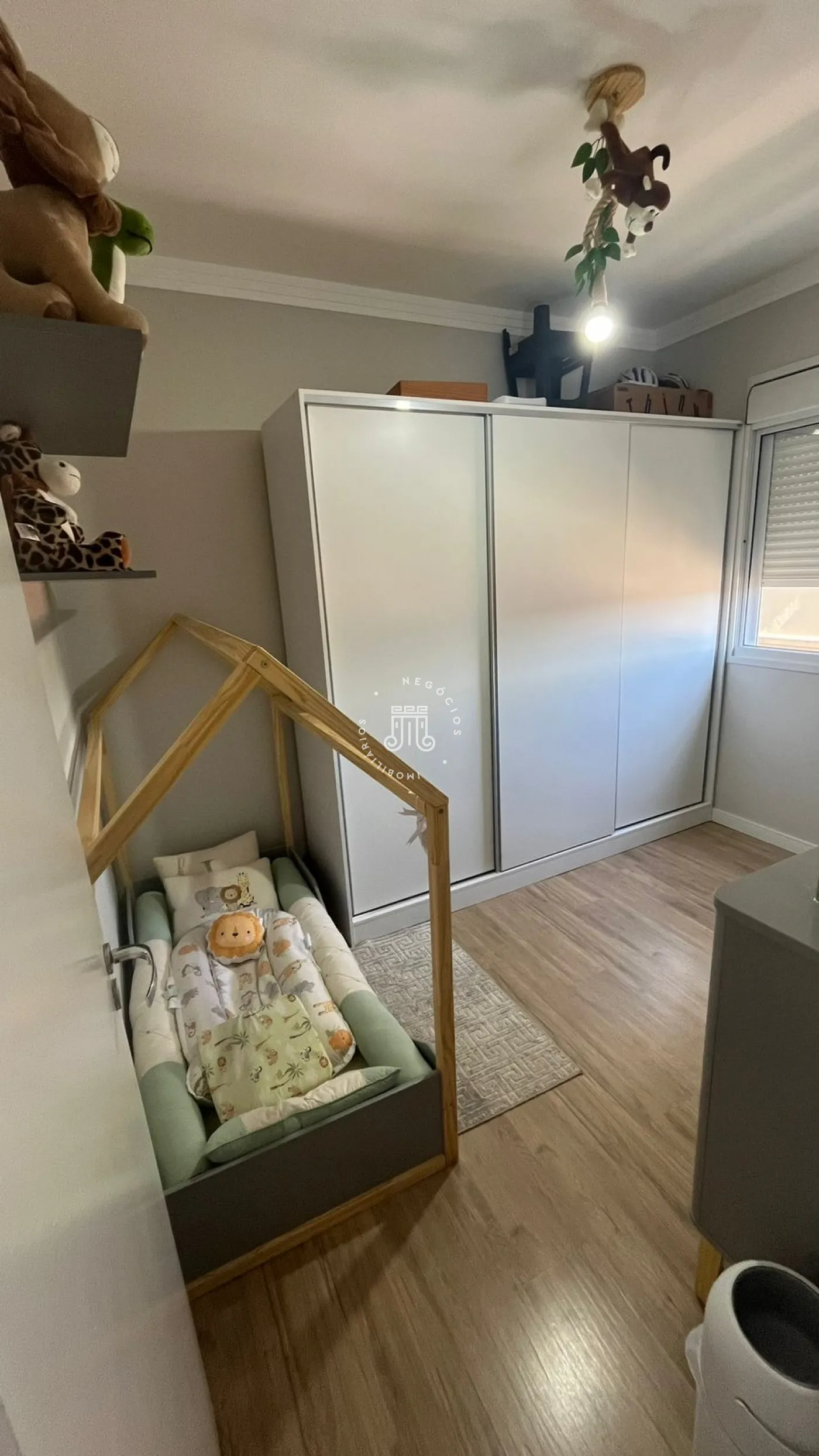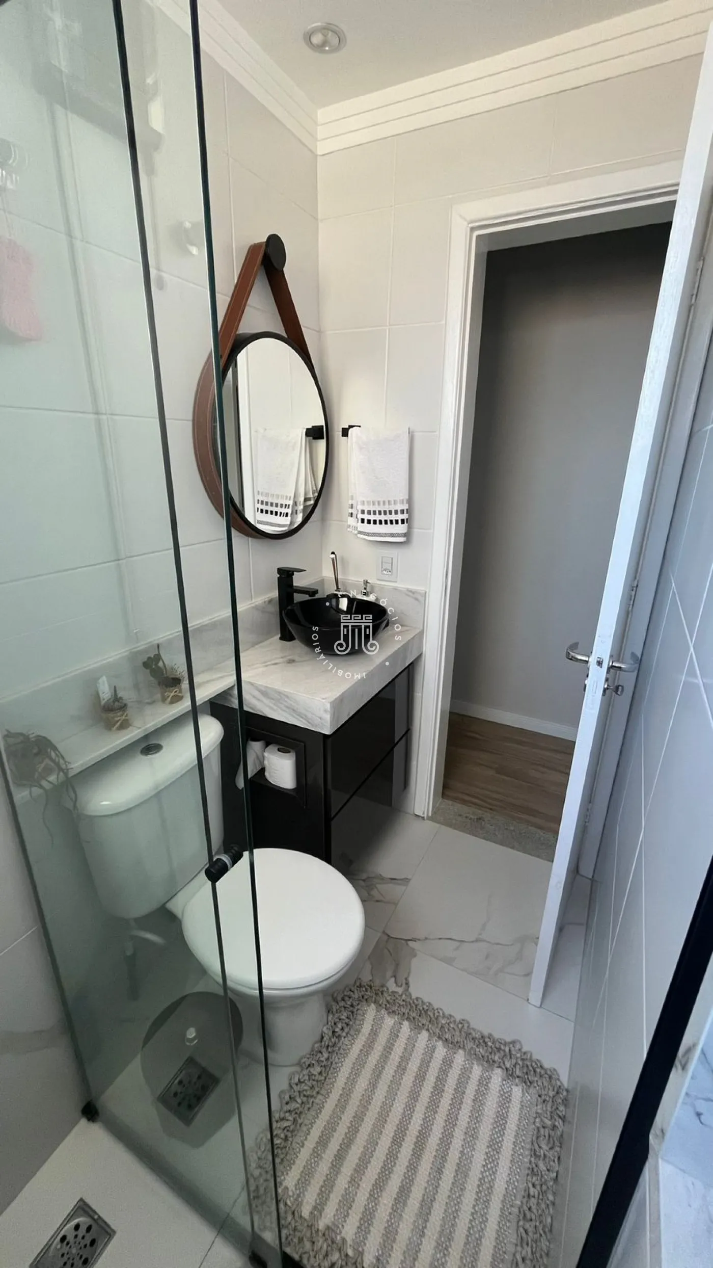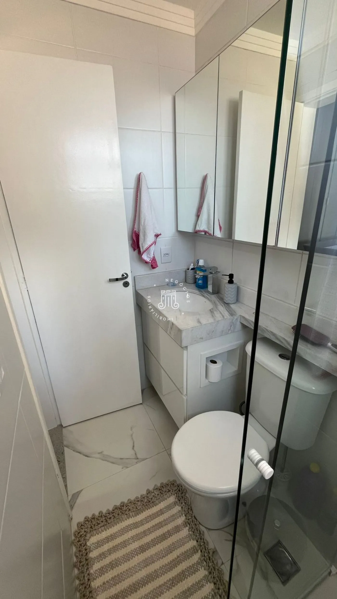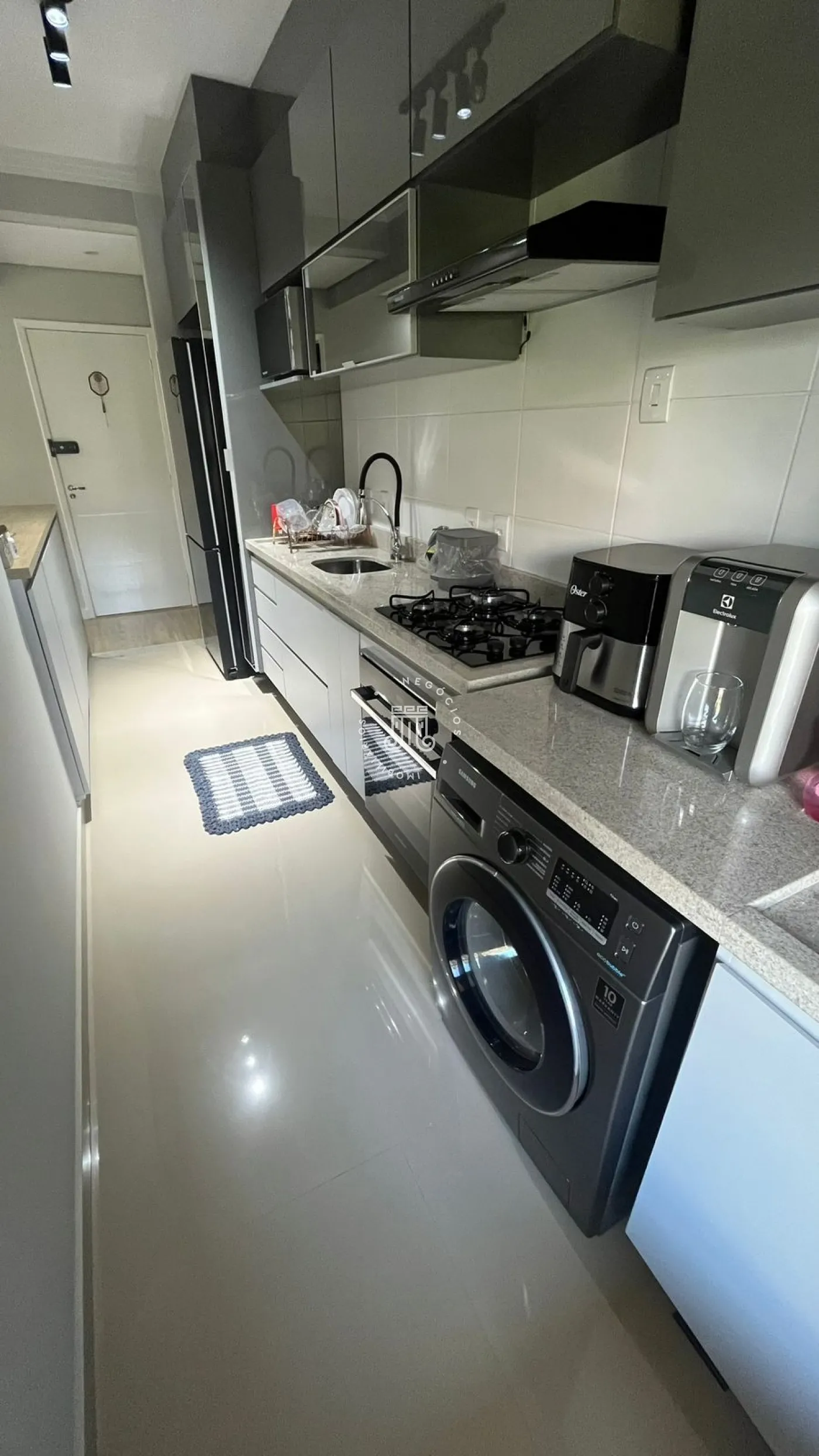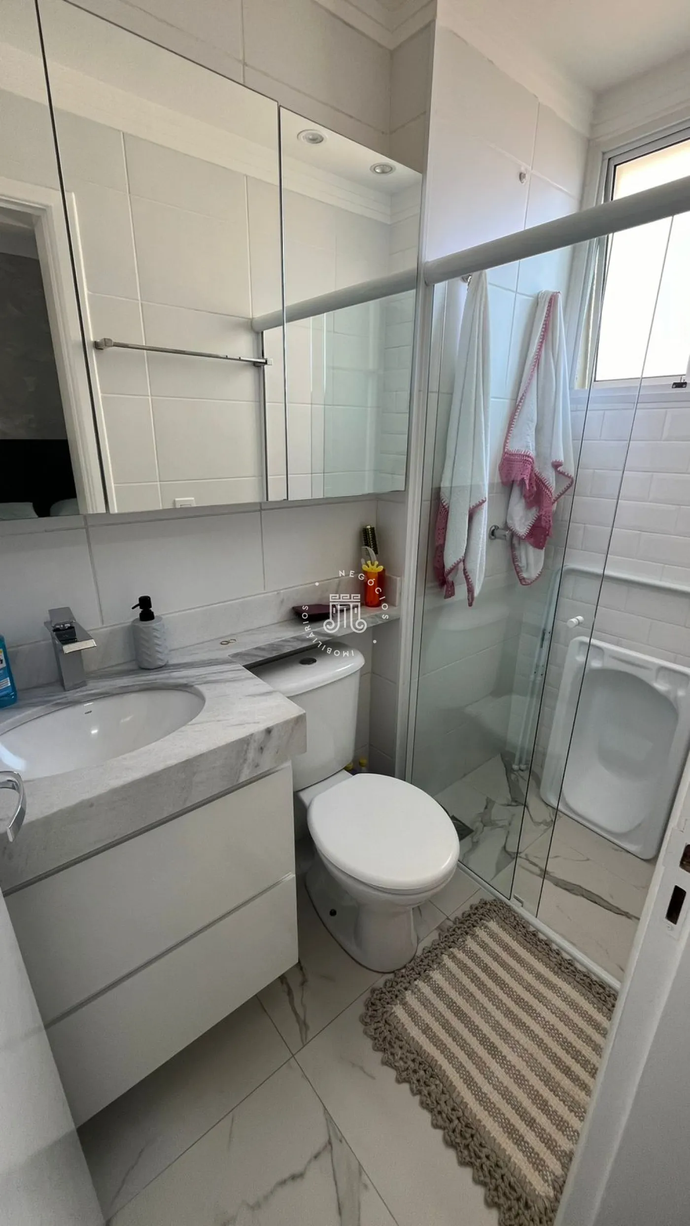 Apartamento com dois quartos, sendo um suíte. Possui sala com dois ambientes integrada à varanda gourmet, banheiro social com box de vidro, cozinha com armários planejados, área de serviço e uma vaga de garagem descoberta.