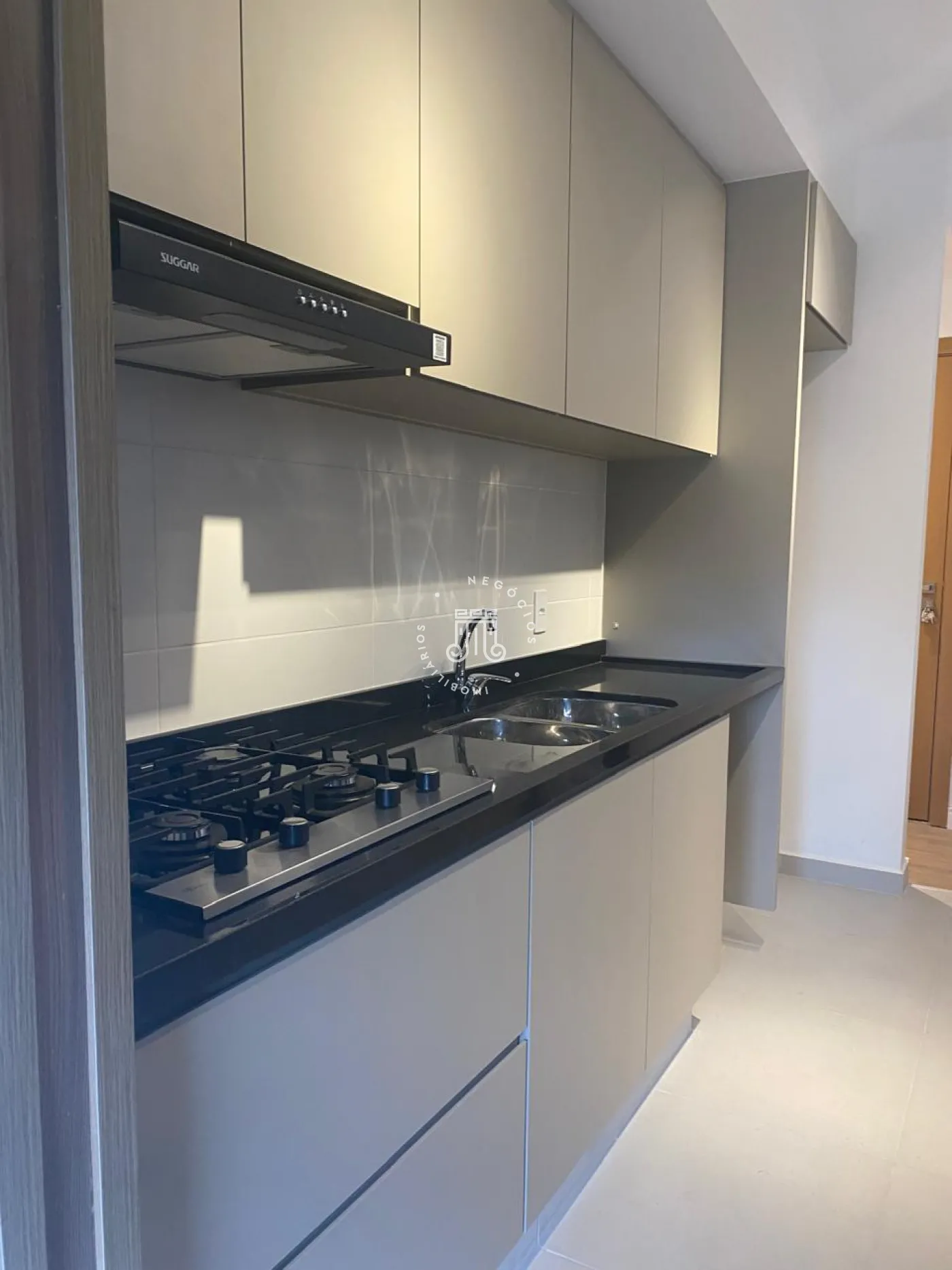 Apartamento para locação de 95 metros, sol da manhã com 2 dormitórios com armários sendo 1 suíte, sala estendida, banheiro social, cozinha planejada com fogão cooktop e forno a gás, lavanderia, quarto de despejo, 2 vagas cobertas;