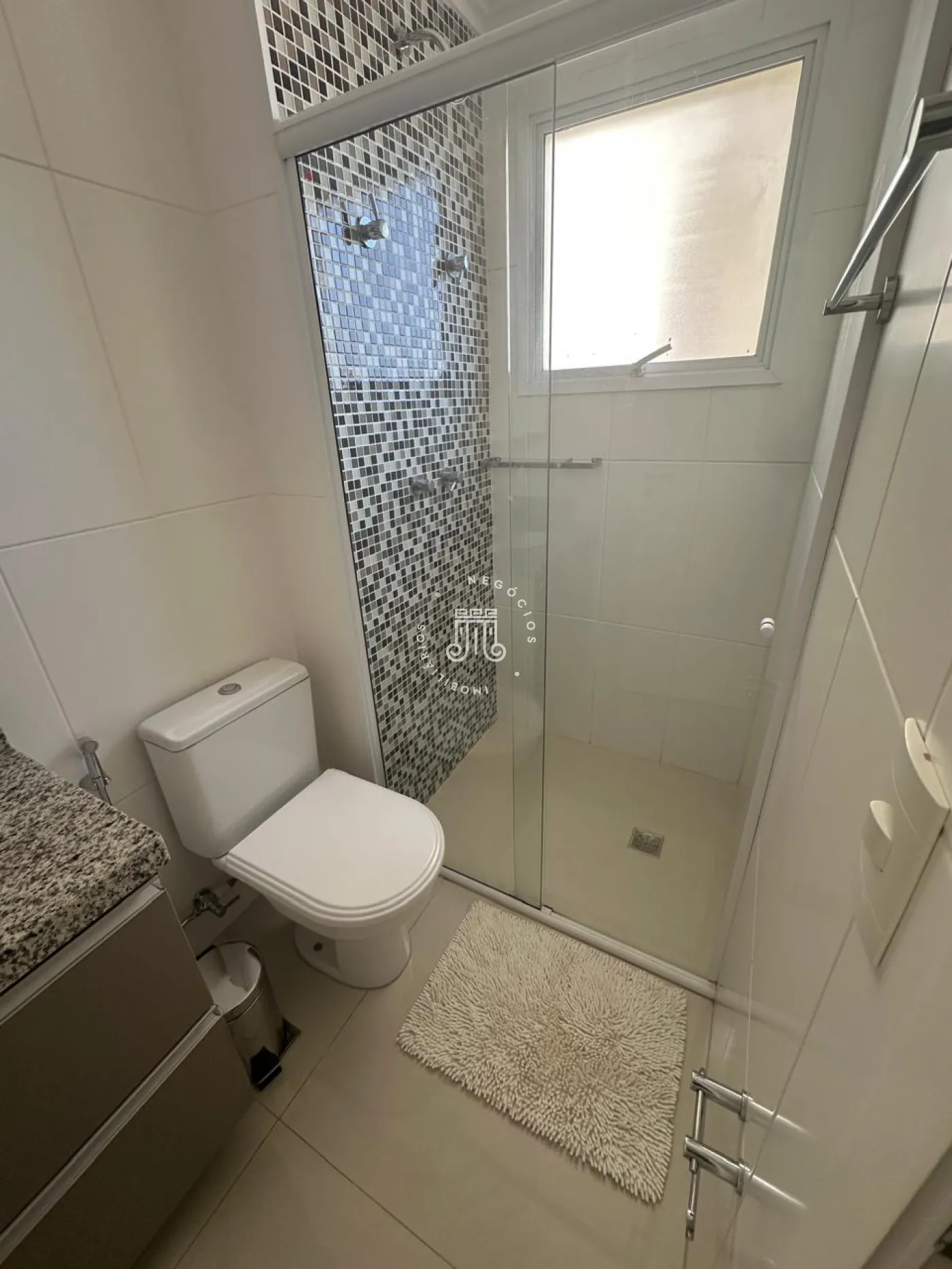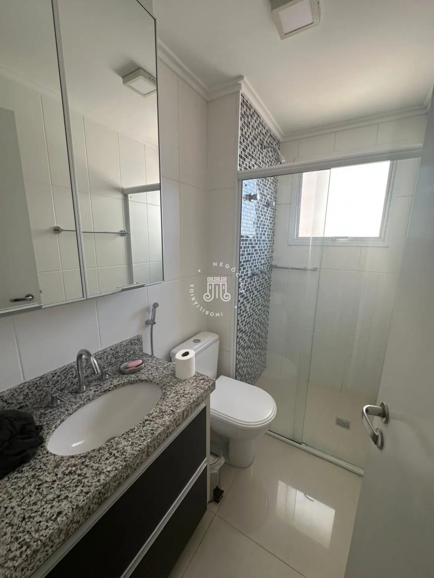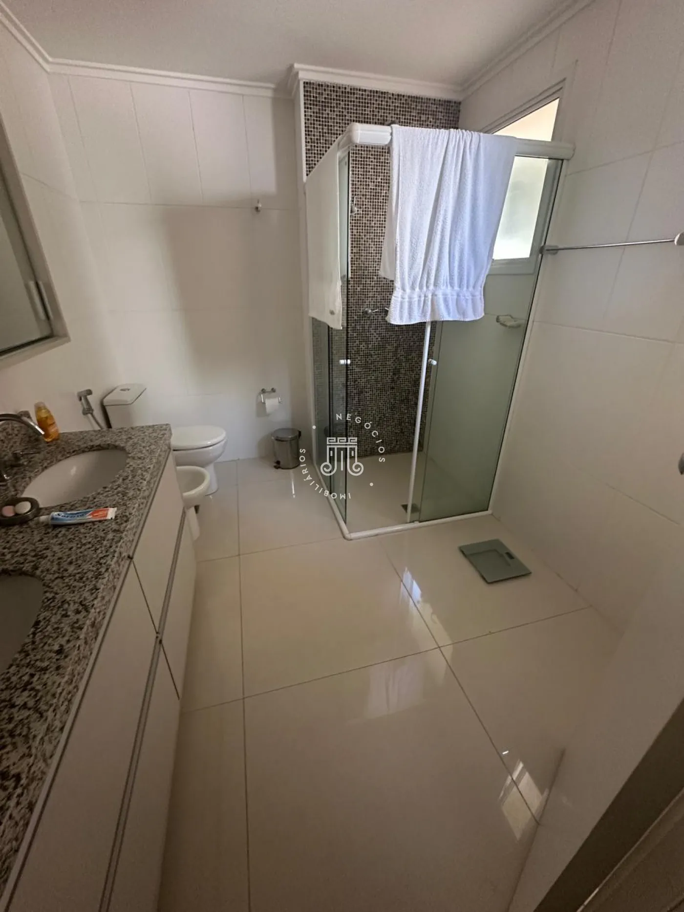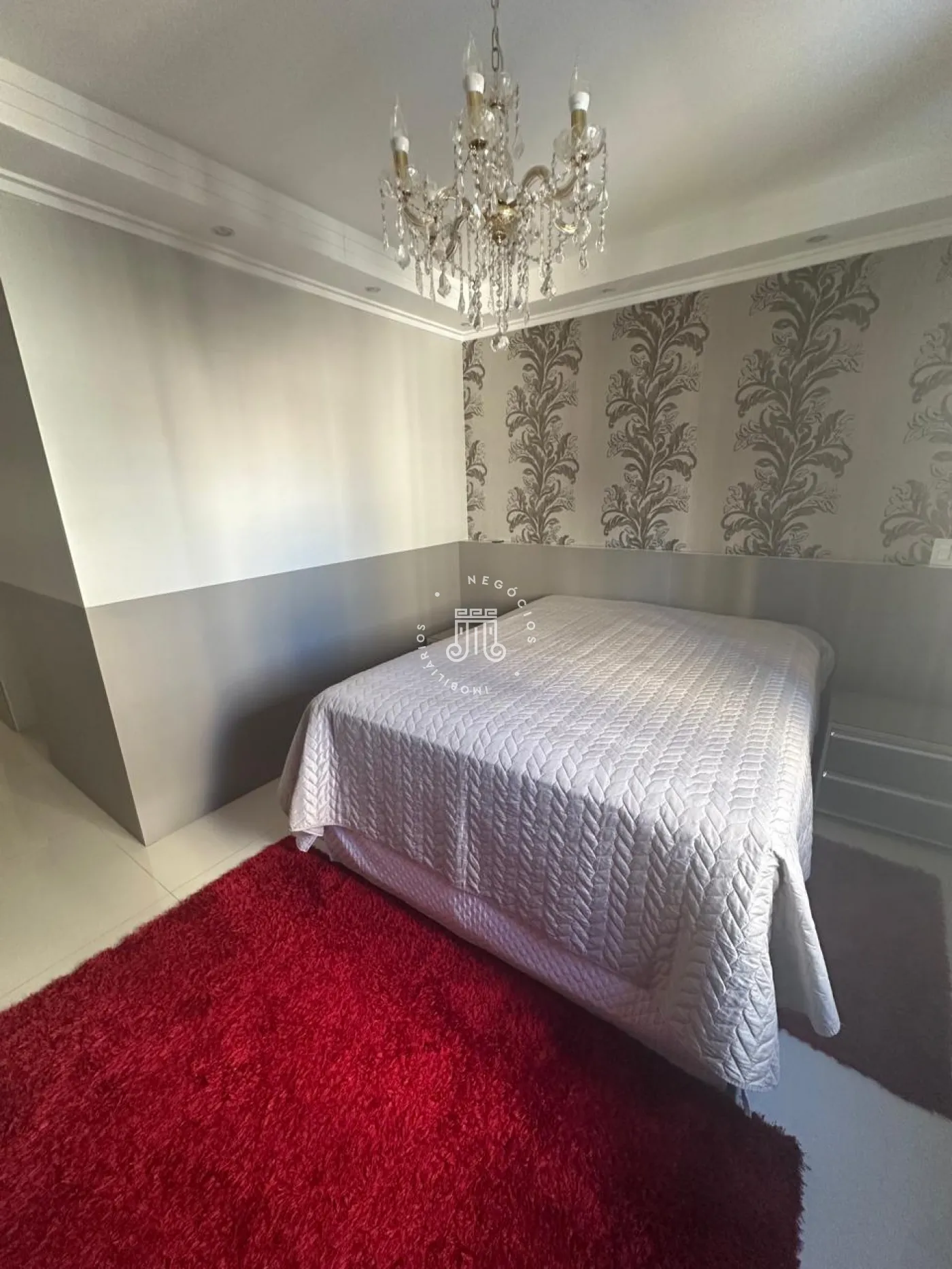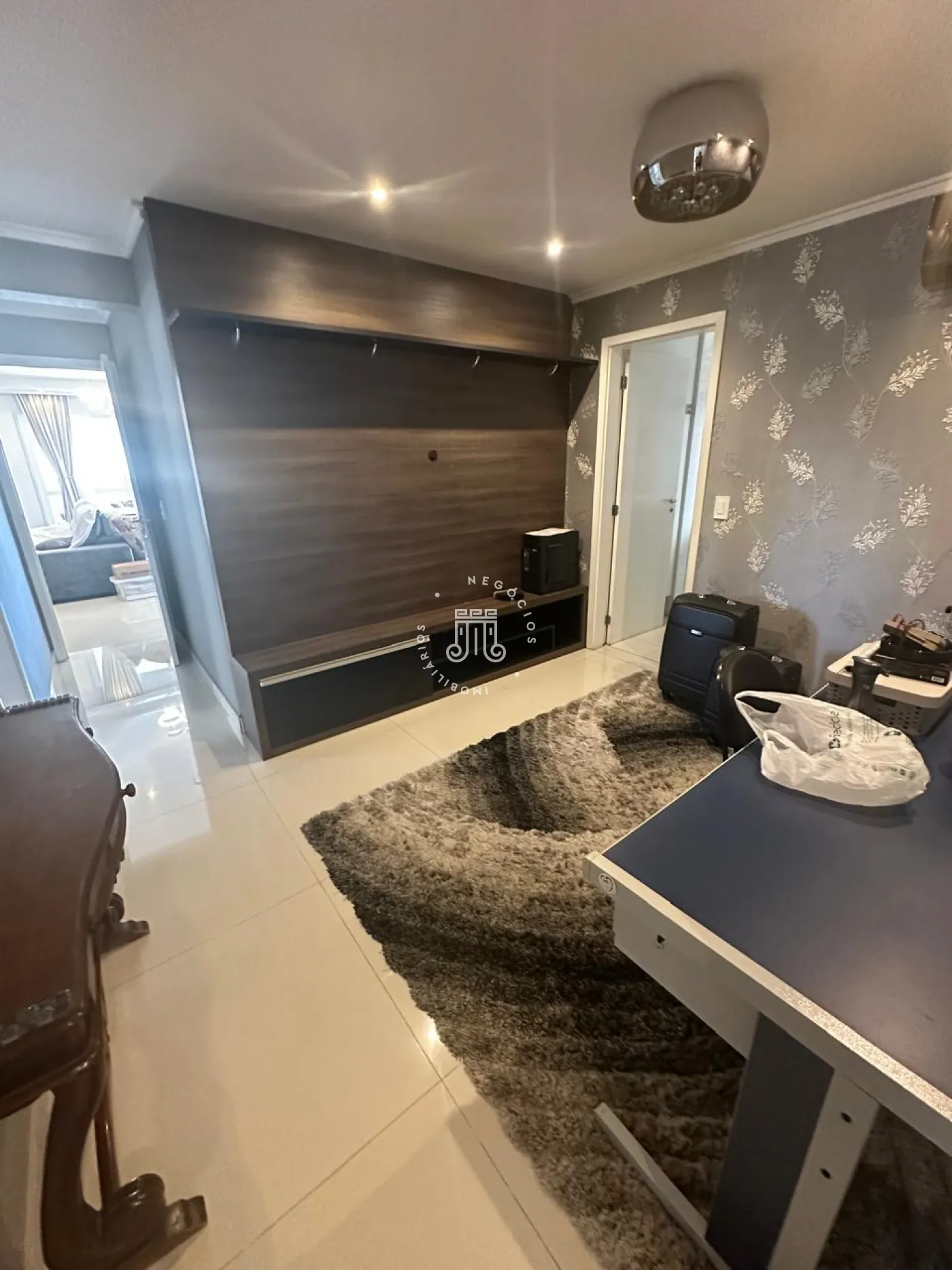 Composto por quatro suítes, sendo uma suíte máster. Todas as suítes contam com ar-condicionado e armários planejados. Sala para dois ambientes integrada à varanda gourmet envidraçada, com persianas. Andar alto, com vista livre para o nascer do sol. Cozinha com armários planejados e equipada com eletrodomésticos. Área de serviço com armários e banheiro. Três vagas de garagem.