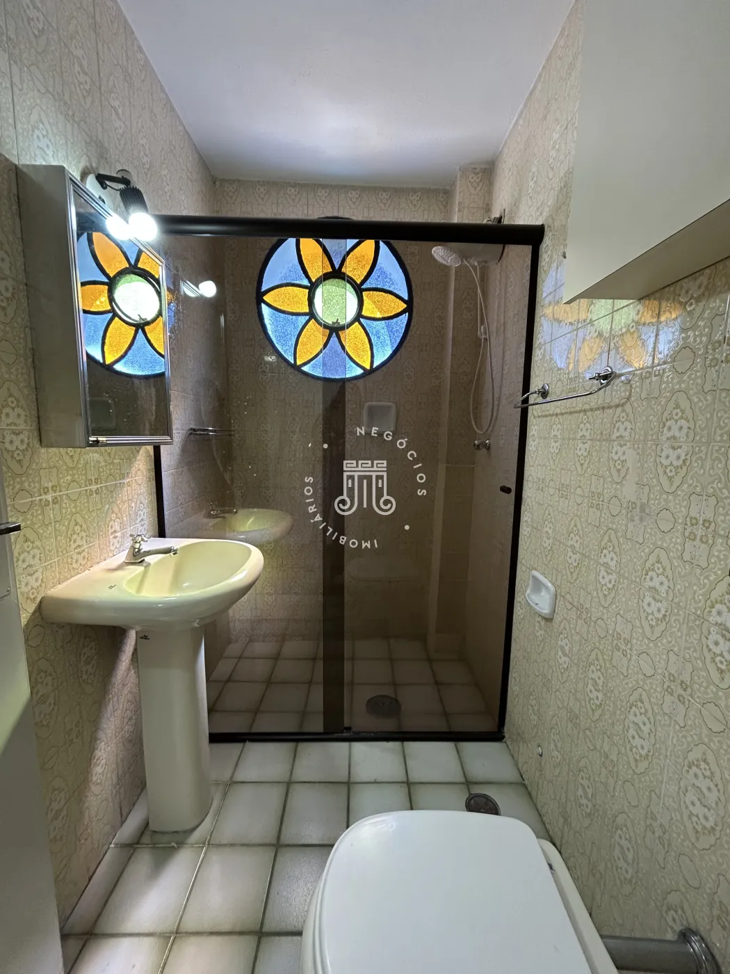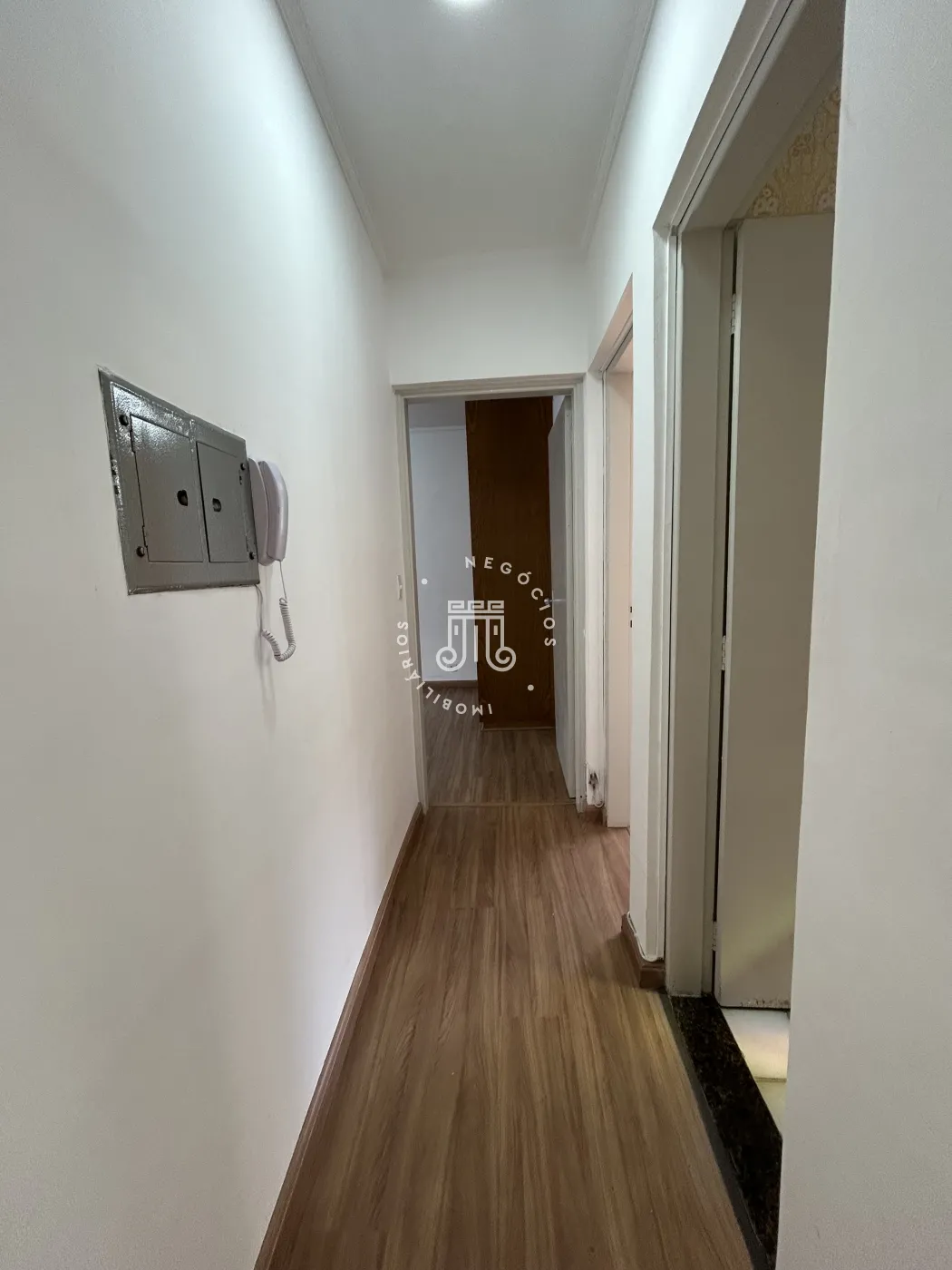 O imóvel possui 70m² de área útil, distribuídos em dois dormitórios com armários embutidos, banheiro social com box de vidro, sala para dois ambientes, cozinha com armários, área de serviço com banheiro de apoio e uma vaga de garagem.