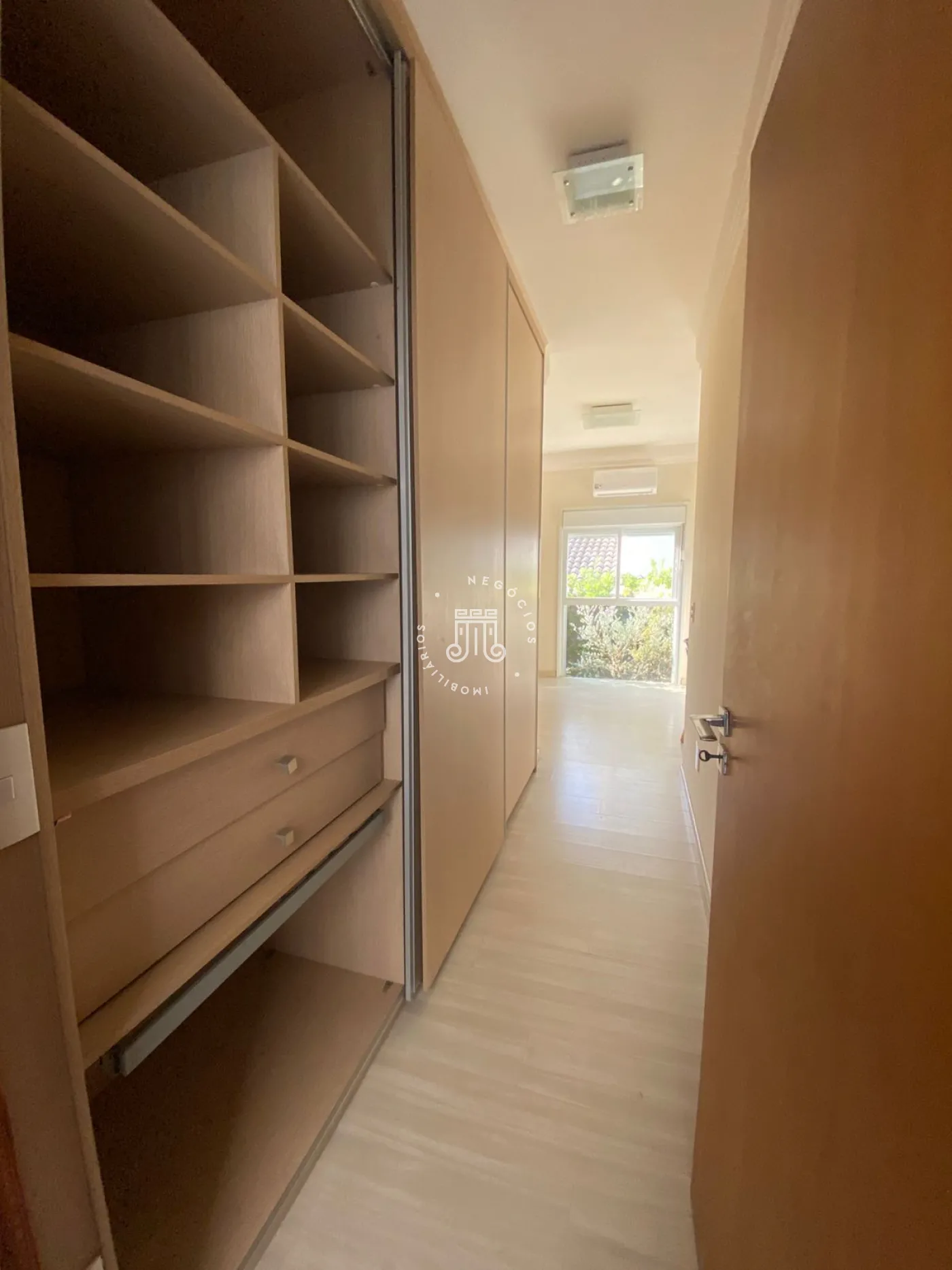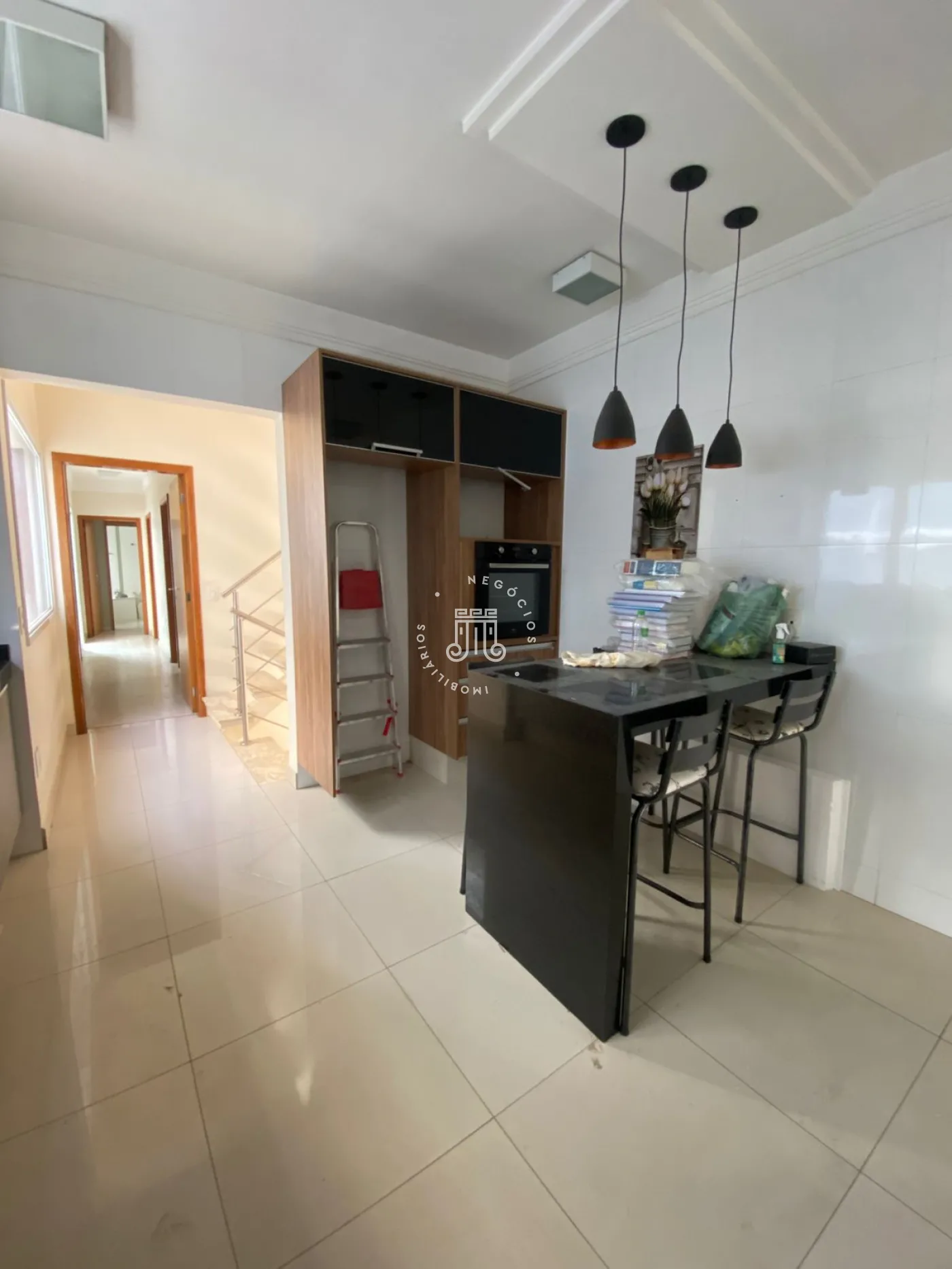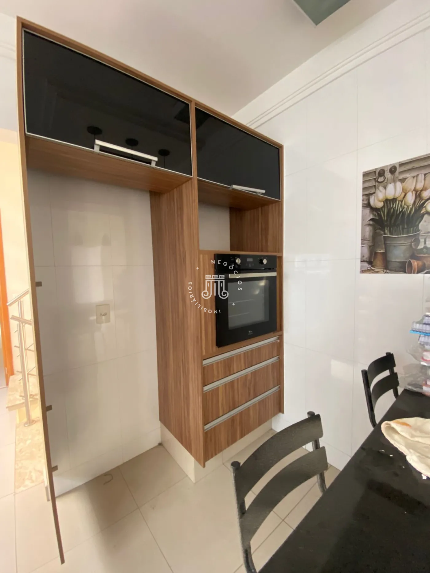 Contendo cozinha com cooktop, coifa e forno, despensa, lavanderia, 1 suíte com closet e ar condicionado, 2 quartos com planejados, banheiro e ar condicionado, sala de estar com dois ambientes, lavabo. Área de churrasqueira nos fundos. Na parte superior com escritório. Todos os cômodos com moveis planejados.
