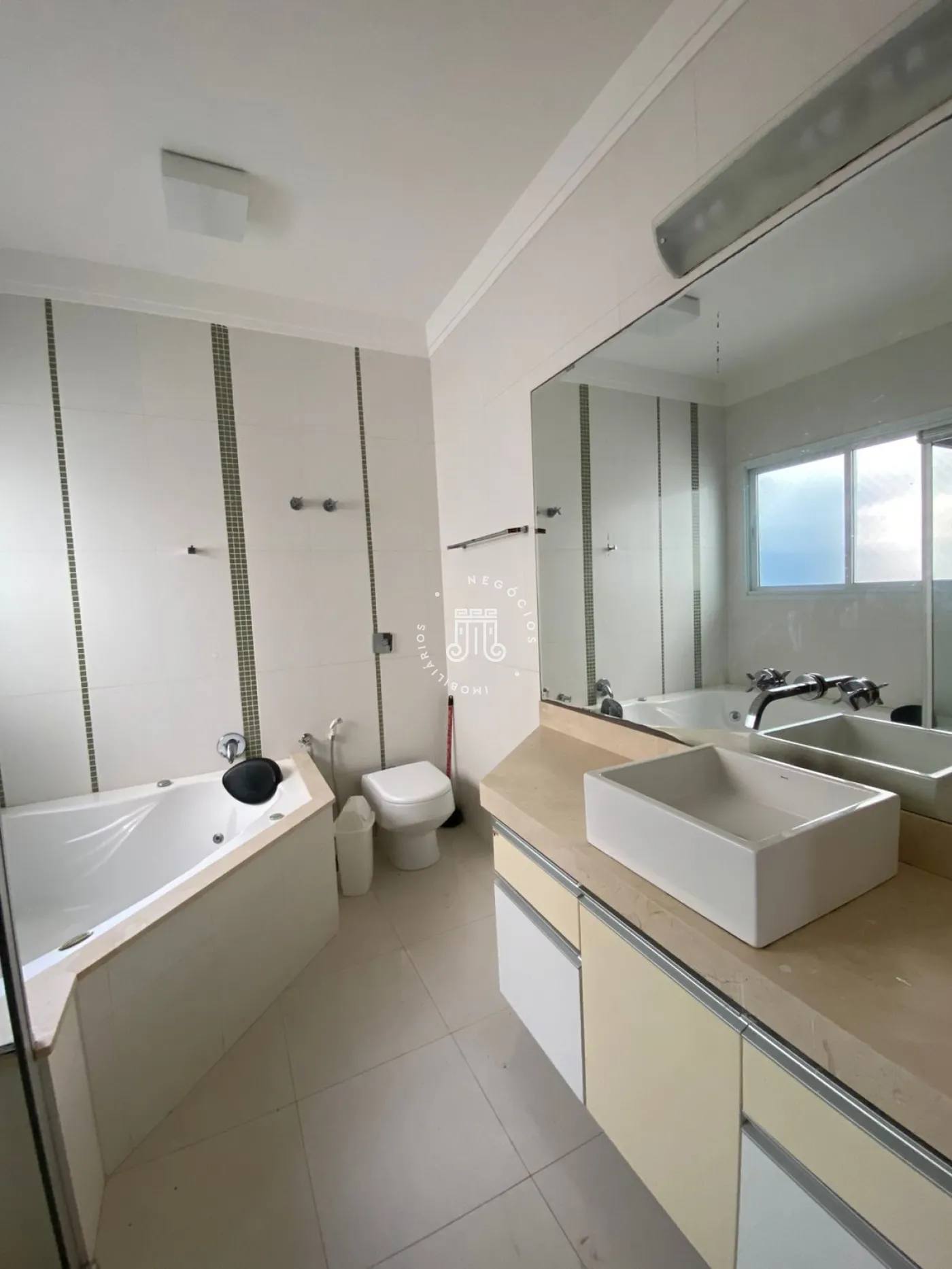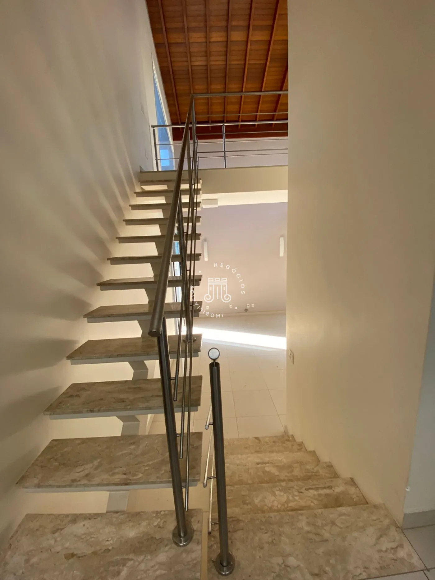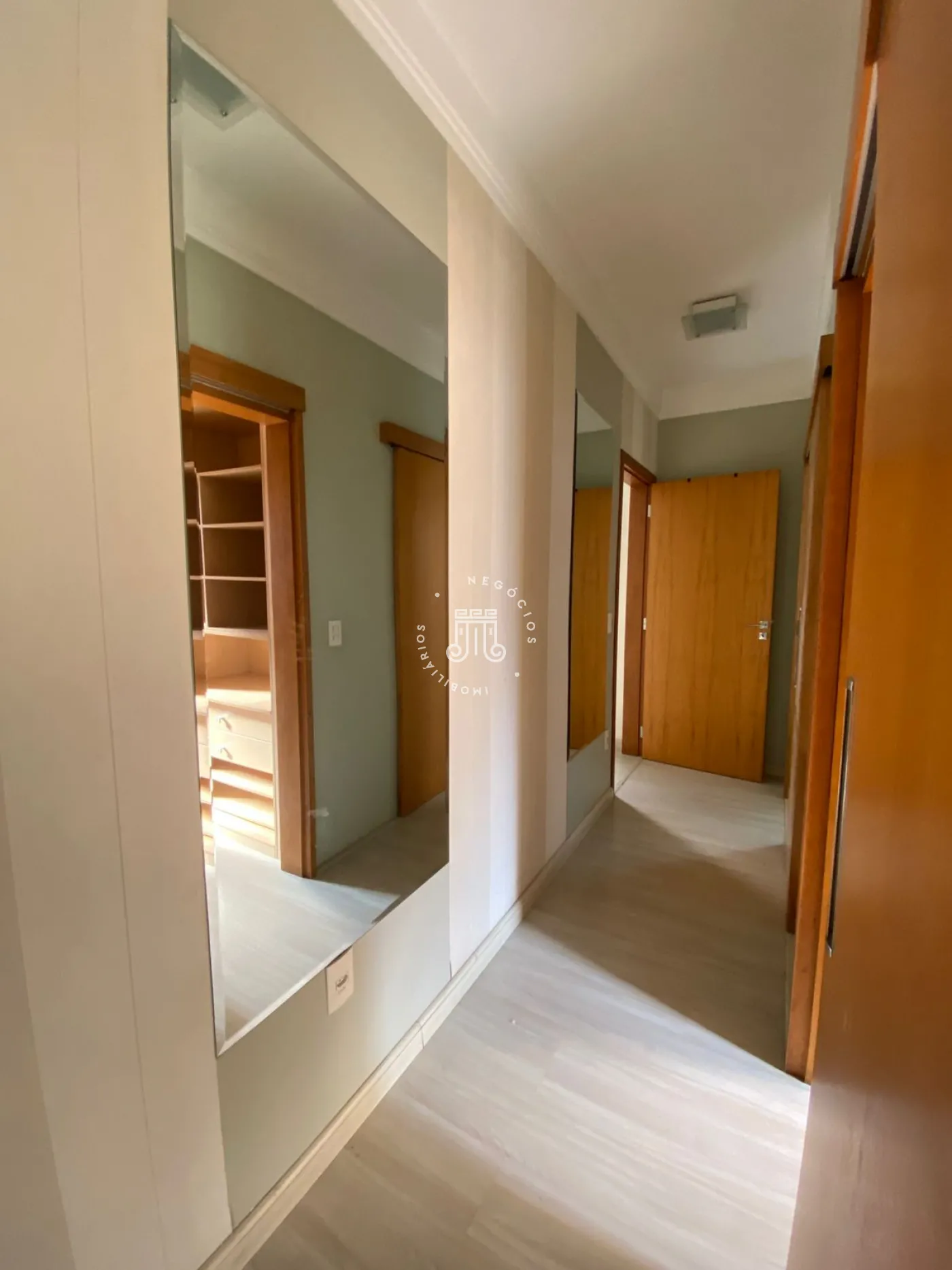 Contendo cozinha com cooktop, coifa e forno, despensa, lavanderia, 1 suíte com closet e ar condicionado, 2 quartos com planejados, banheiro e ar condicionado, sala de estar com dois ambientes, lavabo. Área de churrasqueira nos fundos. Na parte superior com escritório. Todos os cômodos com moveis planejados.