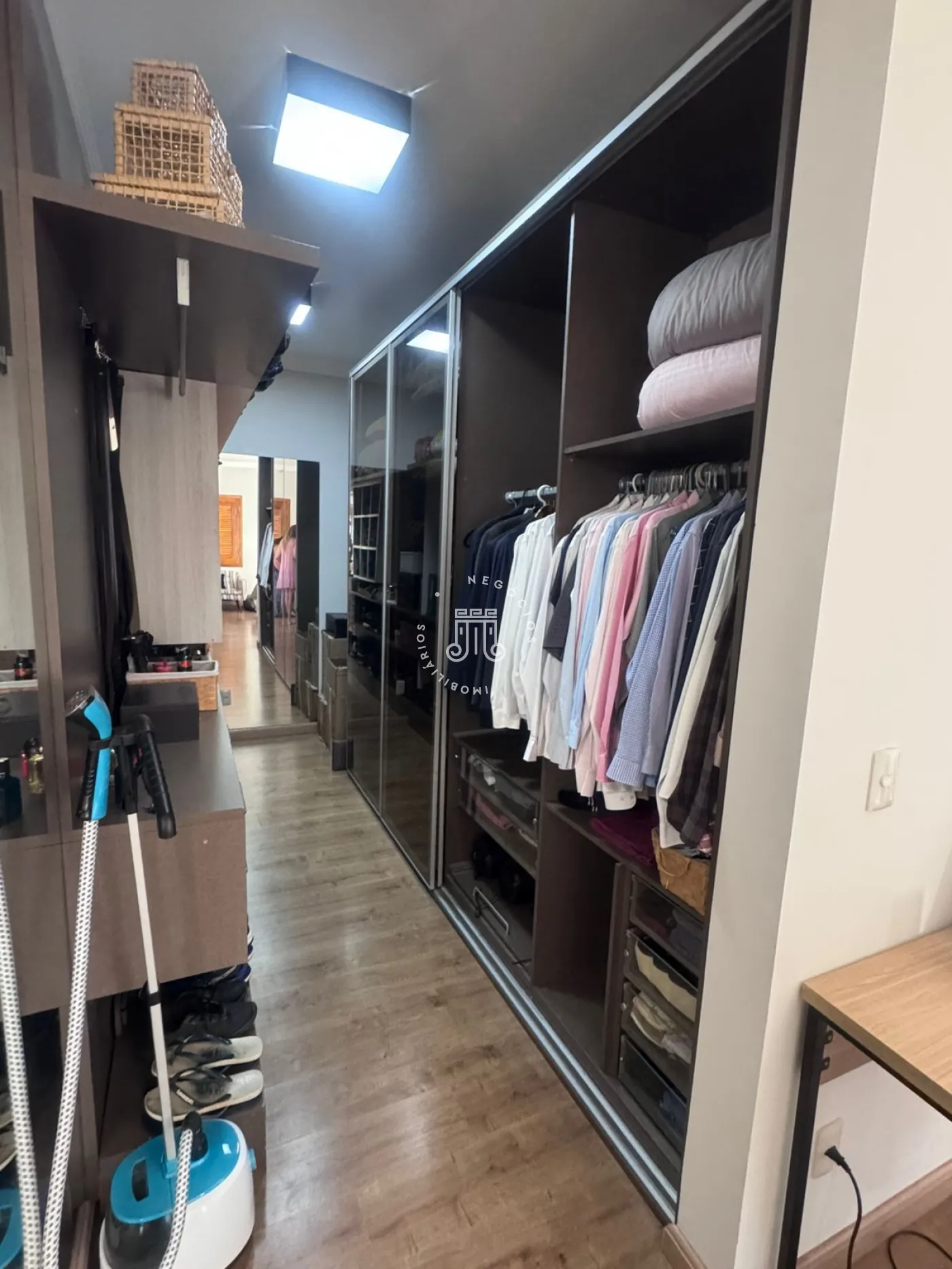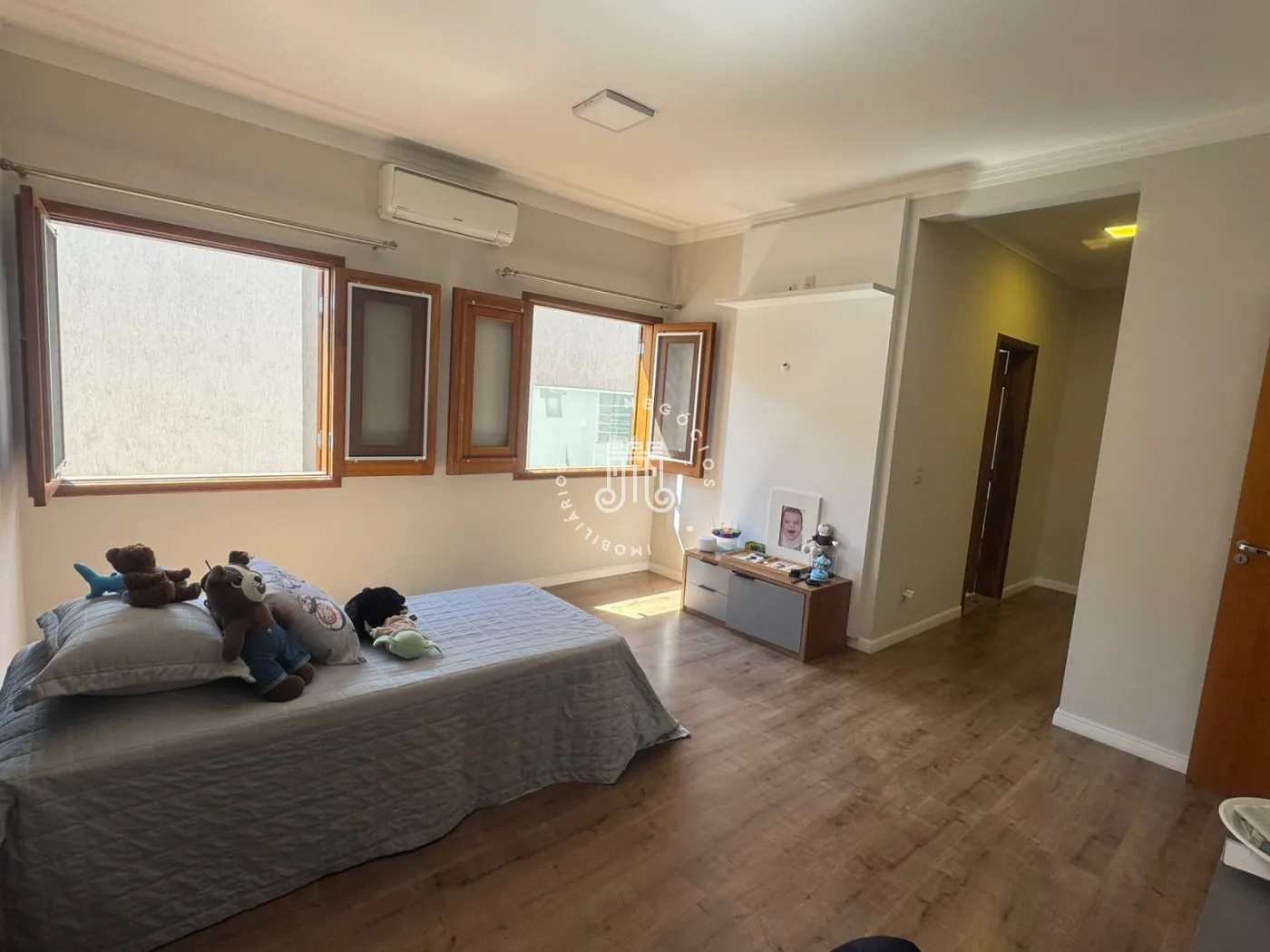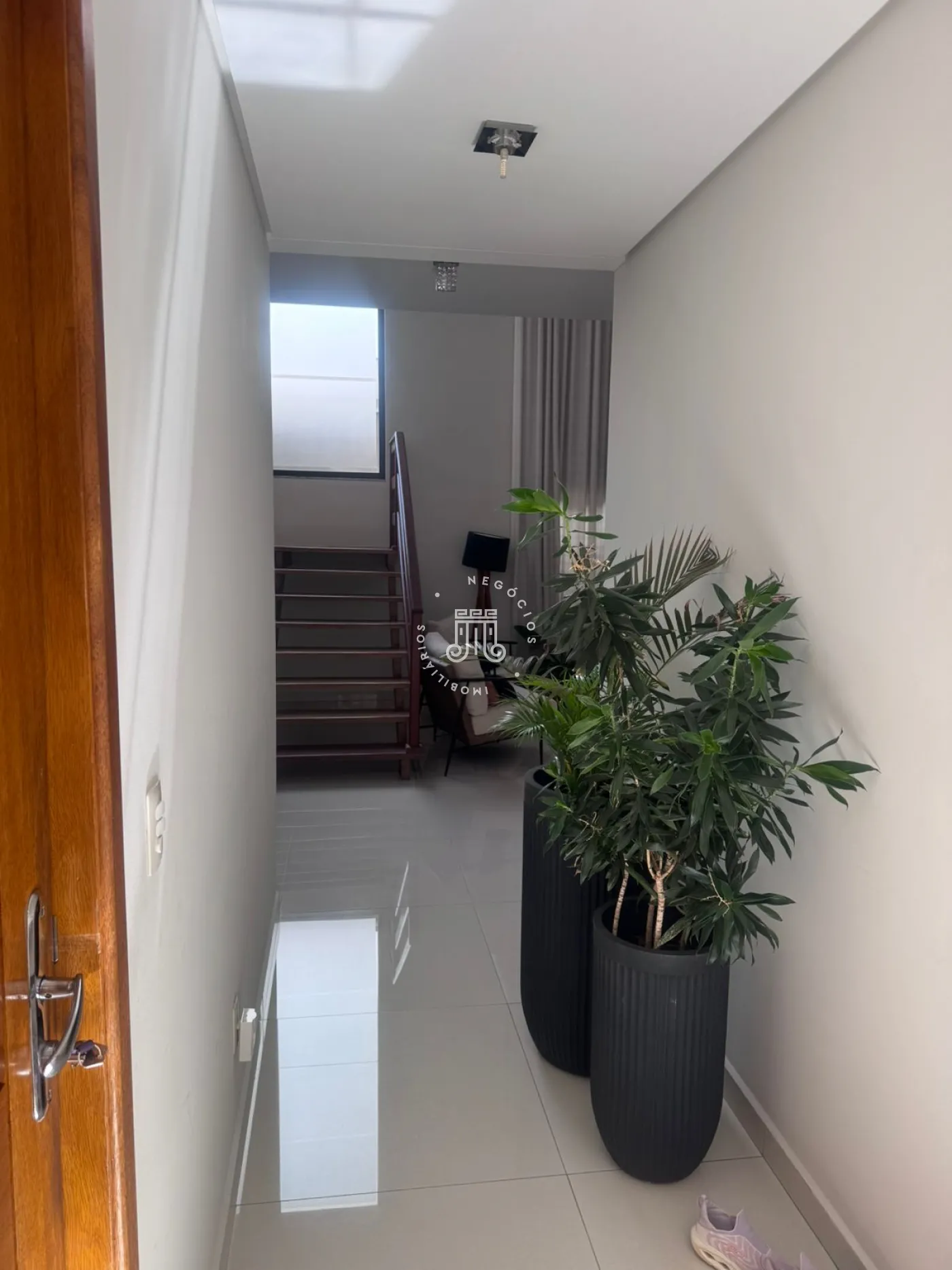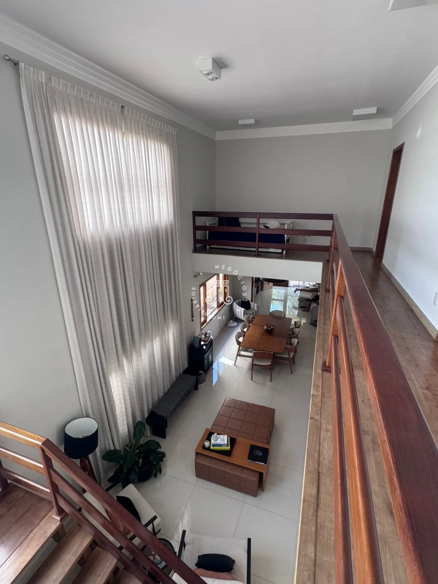 Com 3 suítes climatizadas no pavimento superior, sendo duas com guarda-roupas (uma com sacada) e a principal com amplo closet e sacada privativa. No térreo, ambientes integrados com cozinha planejada equipada com forno e cooktop, área gourmet com churrasqueira, sala de estar, sala com lareira e ar-condicionado, sala de jantar, lavabo e área de serviço com móveis planejados. Imóvel com área verde, corredores laterais que garantem ventilação e privacidade, além de 2 vagas de garagem cobertas.