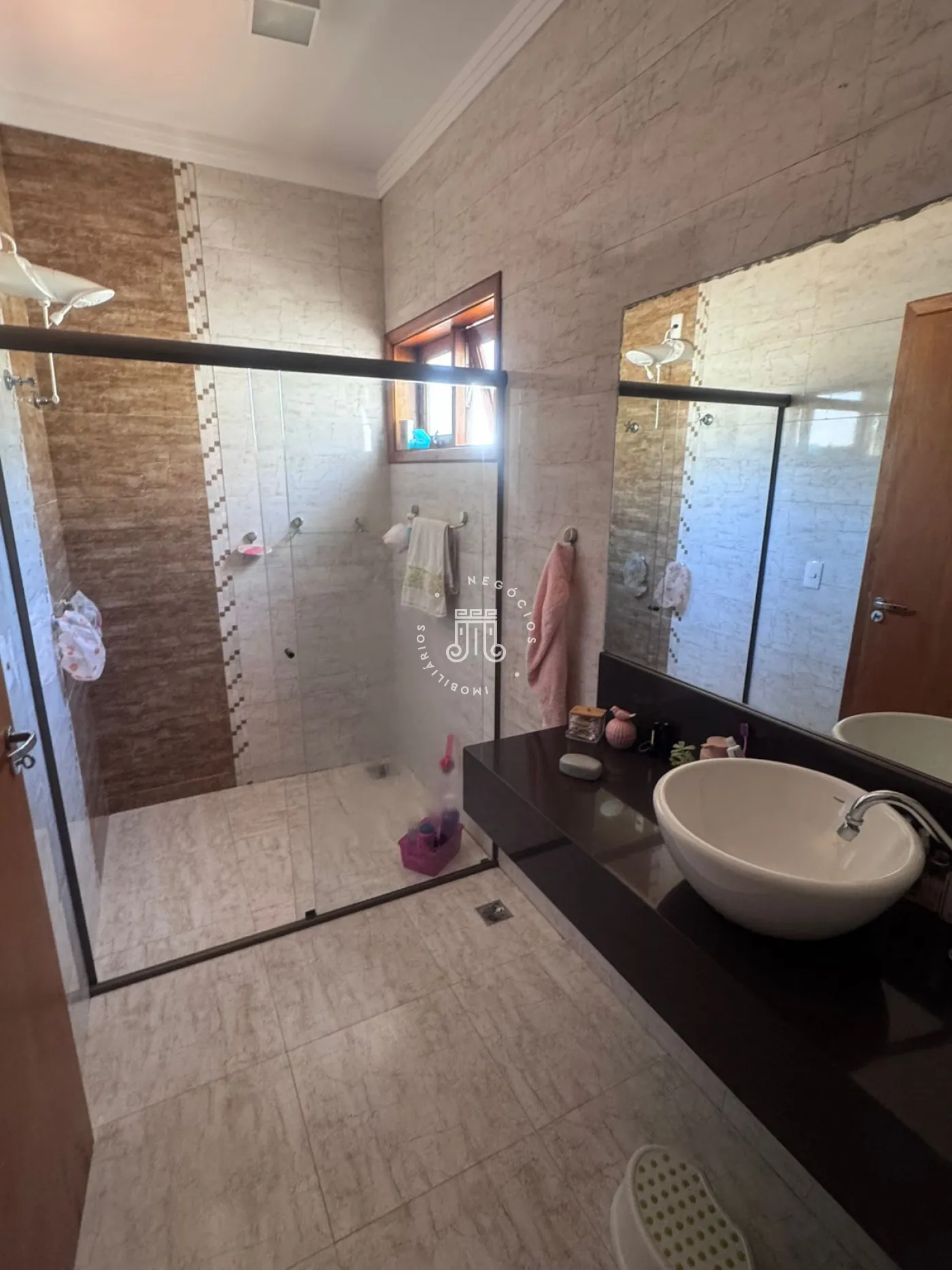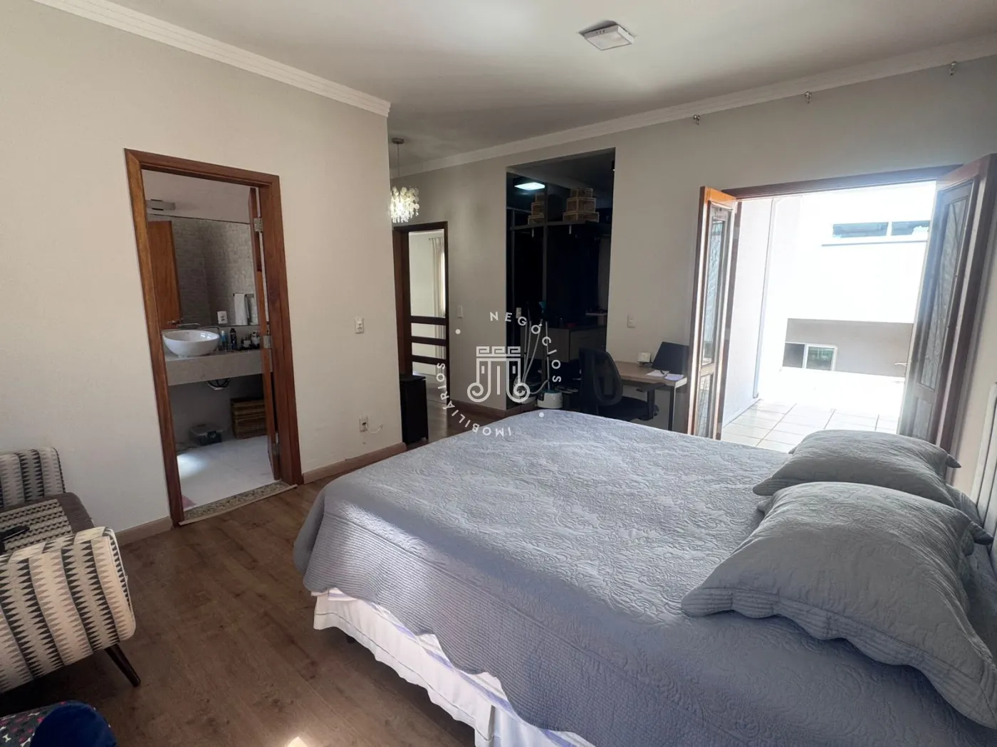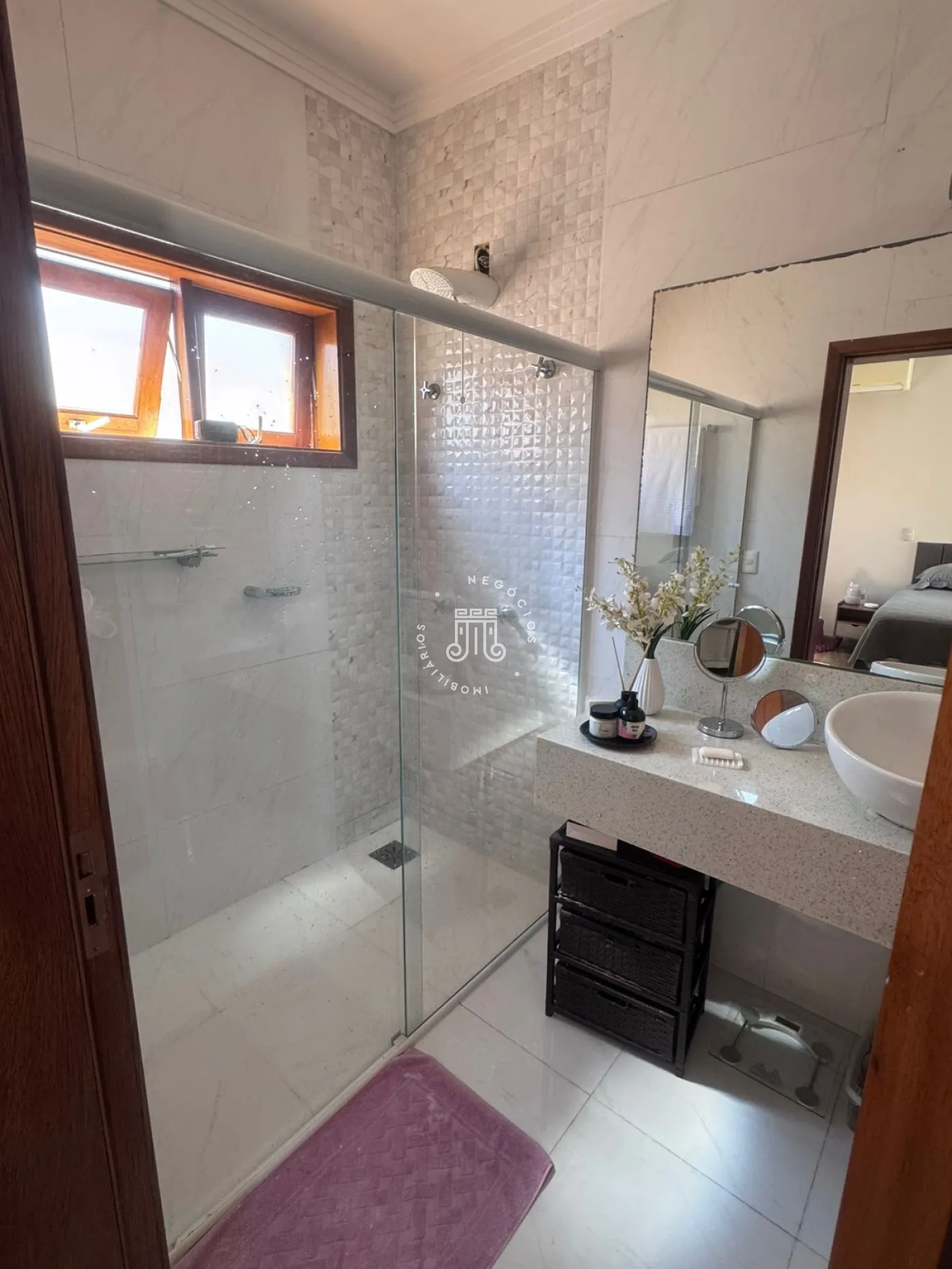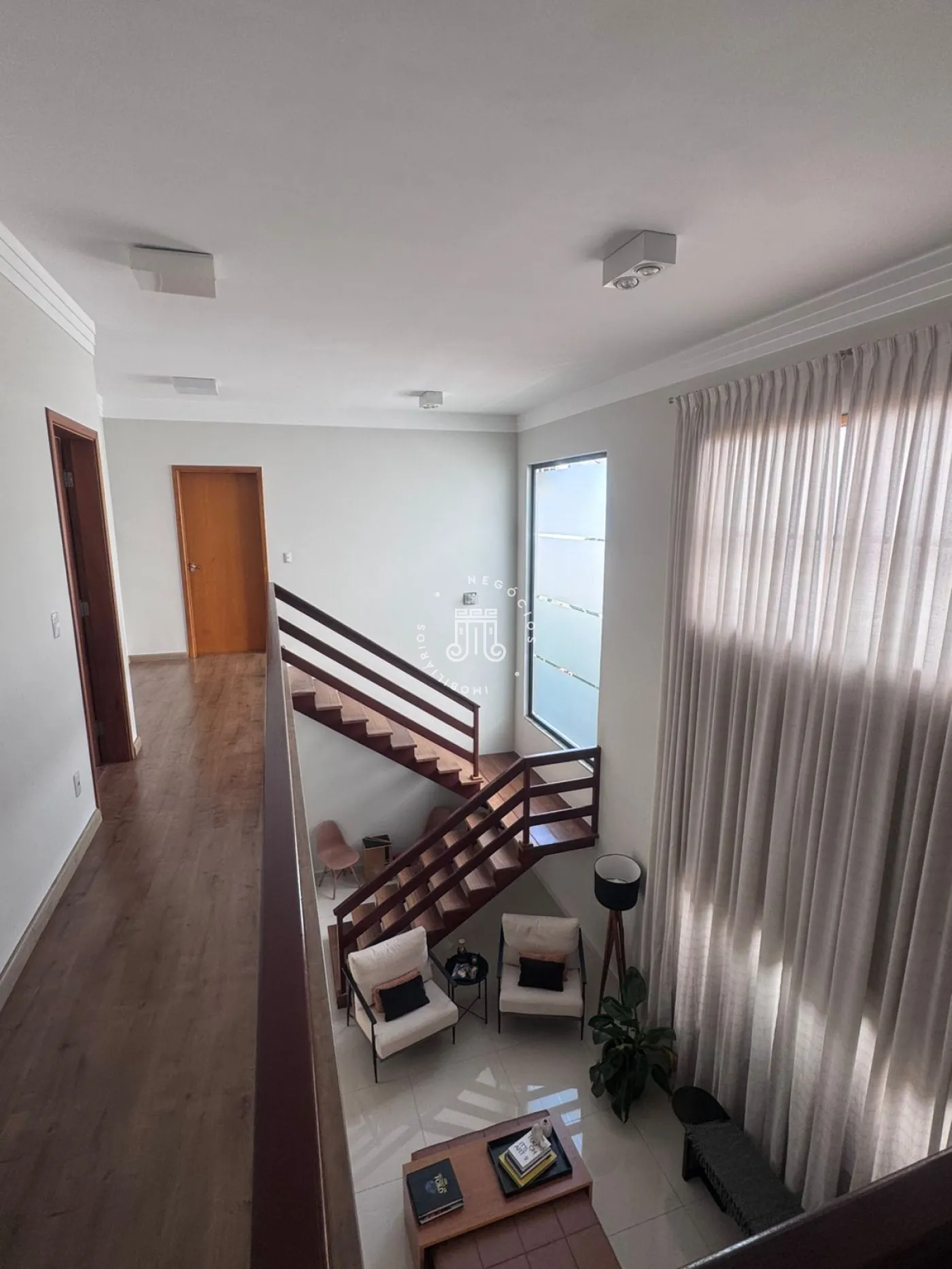 Com 3 suítes climatizadas no pavimento superior, sendo duas com guarda-roupas (uma com sacada) e a principal com amplo closet e sacada privativa. No térreo, ambientes integrados com cozinha planejada equipada com forno e cooktop, área gourmet com churrasqueira, sala de estar, sala com lareira e ar-condicionado, sala de jantar, lavabo e área de serviço com móveis planejados. Imóvel com área verde, corredores laterais que garantem ventilação e privacidade, além de 2 vagas de garagem cobertas.