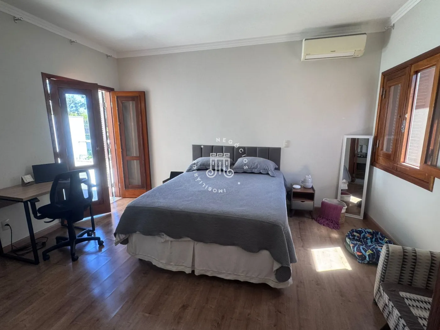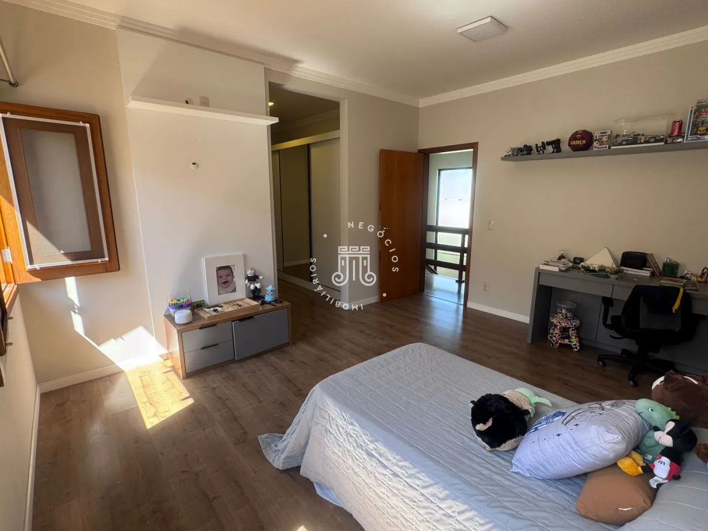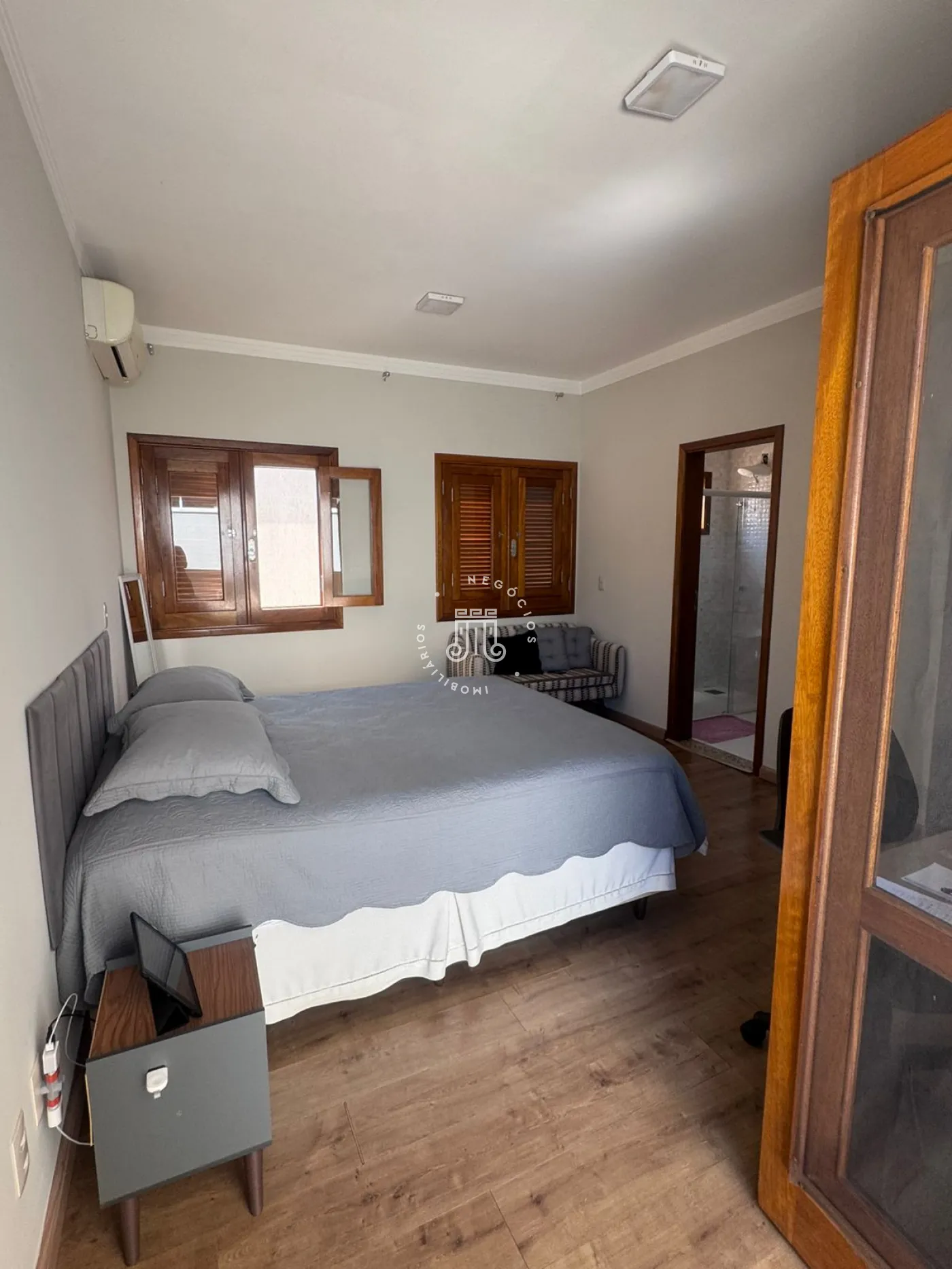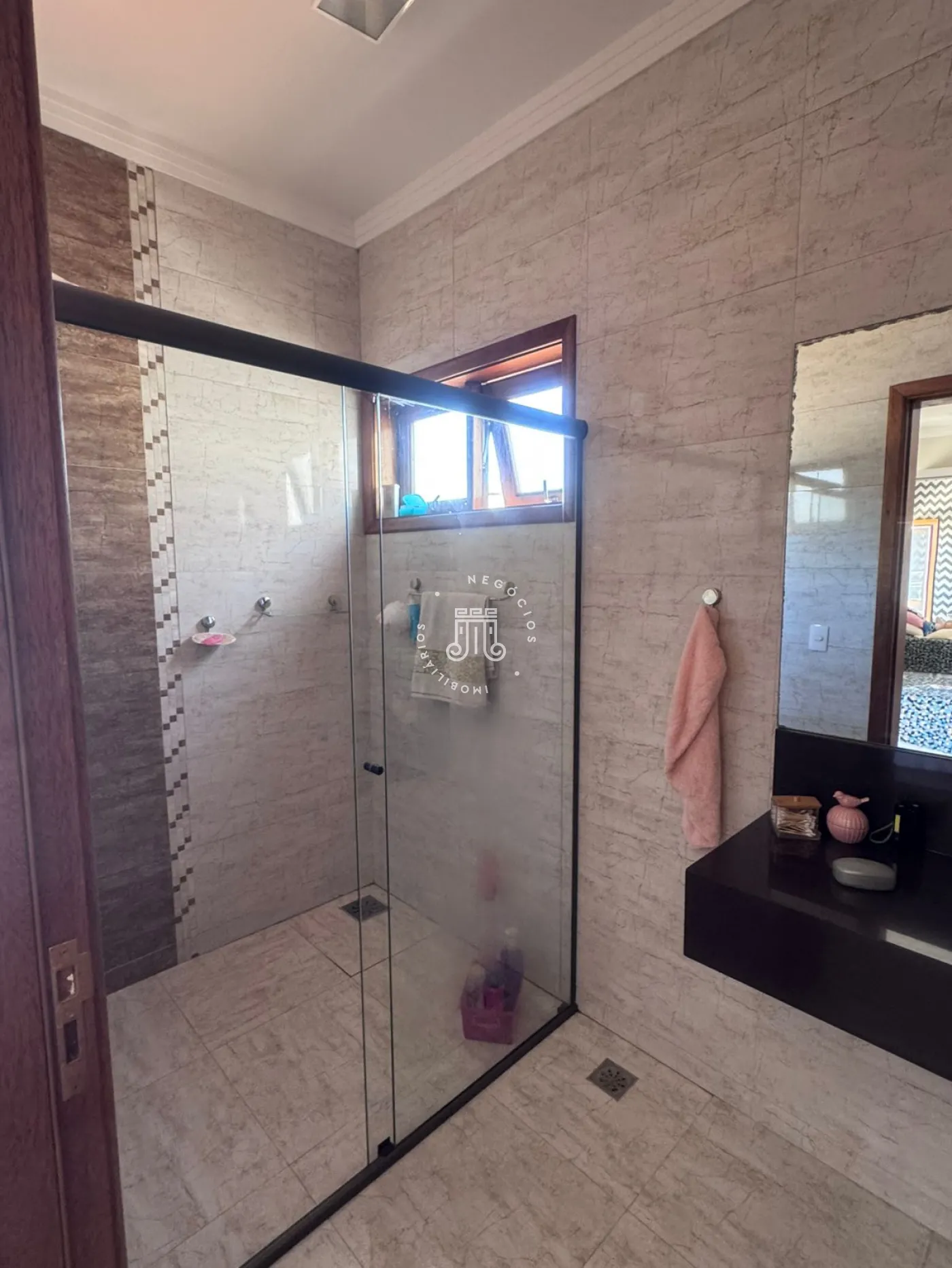 Com 3 suítes climatizadas no pavimento superior, sendo duas com guarda-roupas (uma com sacada) e a principal com amplo closet e sacada privativa. No térreo, ambientes integrados com cozinha planejada equipada com forno e cooktop, área gourmet com churrasqueira, sala de estar, sala com lareira e ar-condicionado, sala de jantar, lavabo e área de serviço com móveis planejados. Imóvel com área verde, corredores laterais que garantem ventilação e privacidade, além de 2 vagas de garagem cobertas.