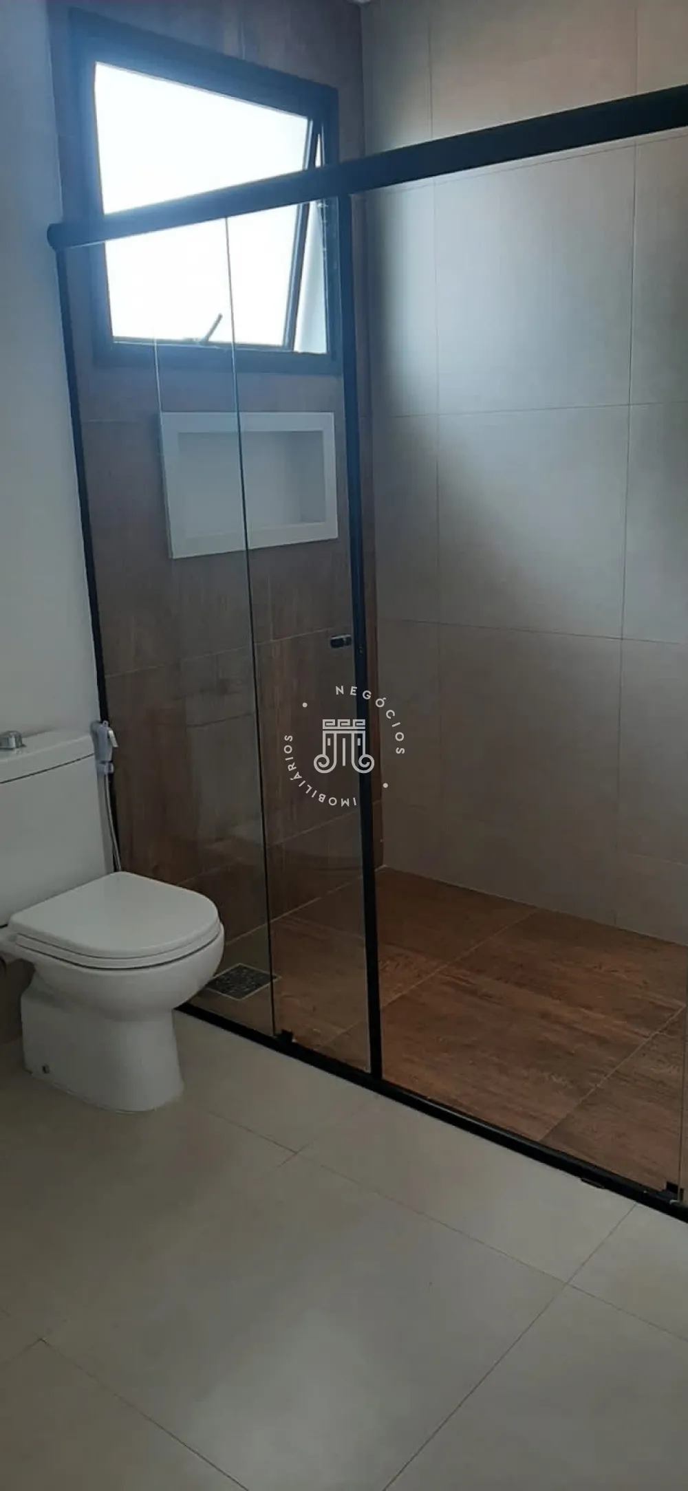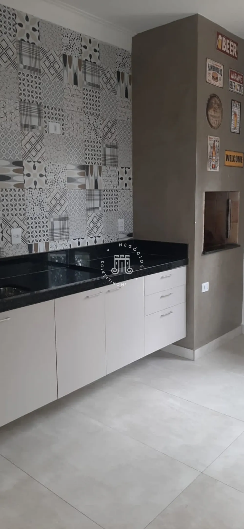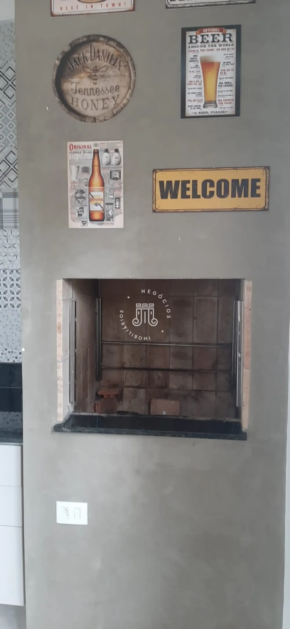 Possui 3 dormitórios, sendo 1 suíte, lavabo, sala de estar e sala de jantar, cozinha com cooktop e forno elétrico, área gourmet com churrasqueira e banheiro externo, lavanderia e 2 vagas de garagem. Conta com armários planejados em todos os ambientes e aquecimento solar.