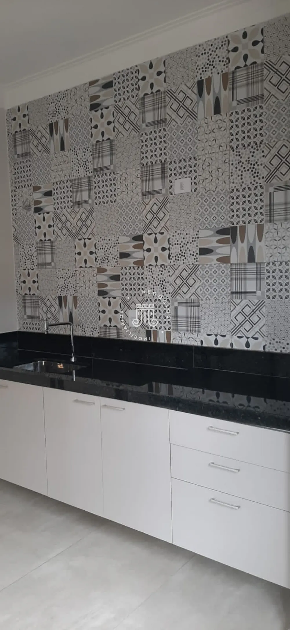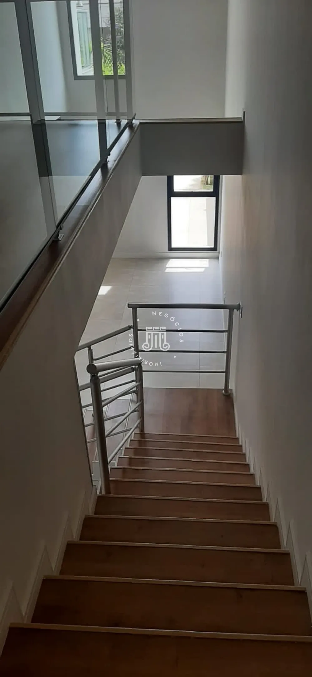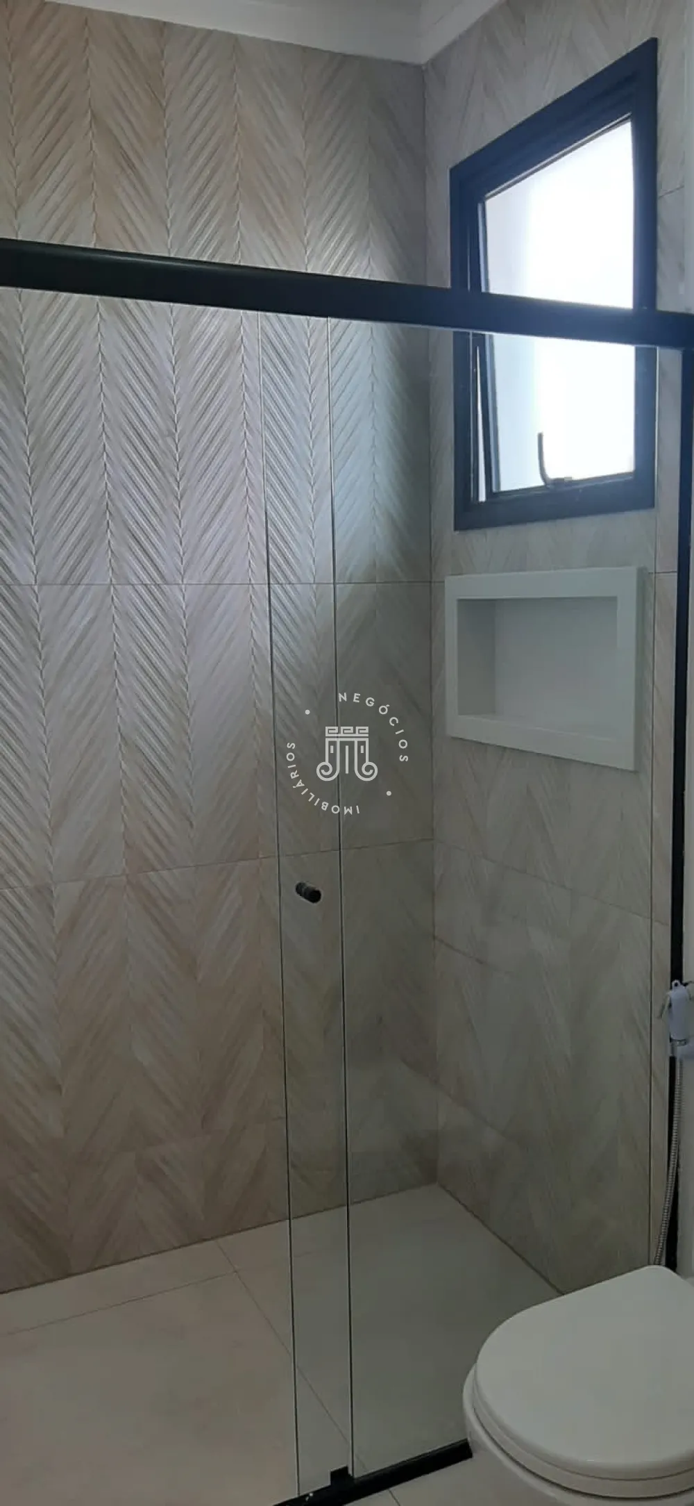 Possui 3 dormitórios, sendo 1 suíte, lavabo, sala de estar e sala de jantar, cozinha com cooktop e forno elétrico, área gourmet com churrasqueira e banheiro externo, lavanderia e 2 vagas de garagem. Conta com armários planejados em todos os ambientes e aquecimento solar.