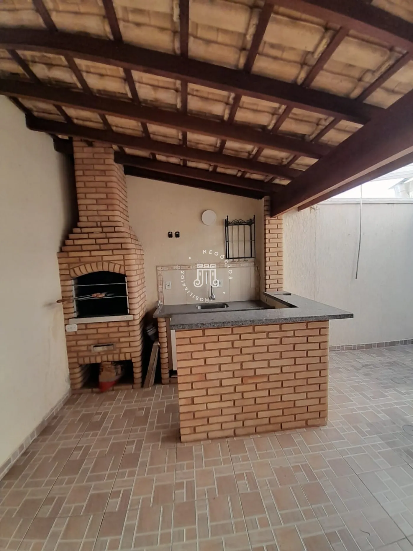 Lindo sobrado com 106 m² de área útil, distribuído em 3 dormitórios sendo 1 suíte com closet e ar condicionado e 2 dormitórios com armários, banheiro social, sala de estar com painel para TV e ar condicionado, sala de jantar com balcão e bar, lavabo, cozinha planejada com fogão e coifa, área de serviço com banheiro, quintal, espaço gourmet com churrasqueira e 2 vagas de garagem descobertas.