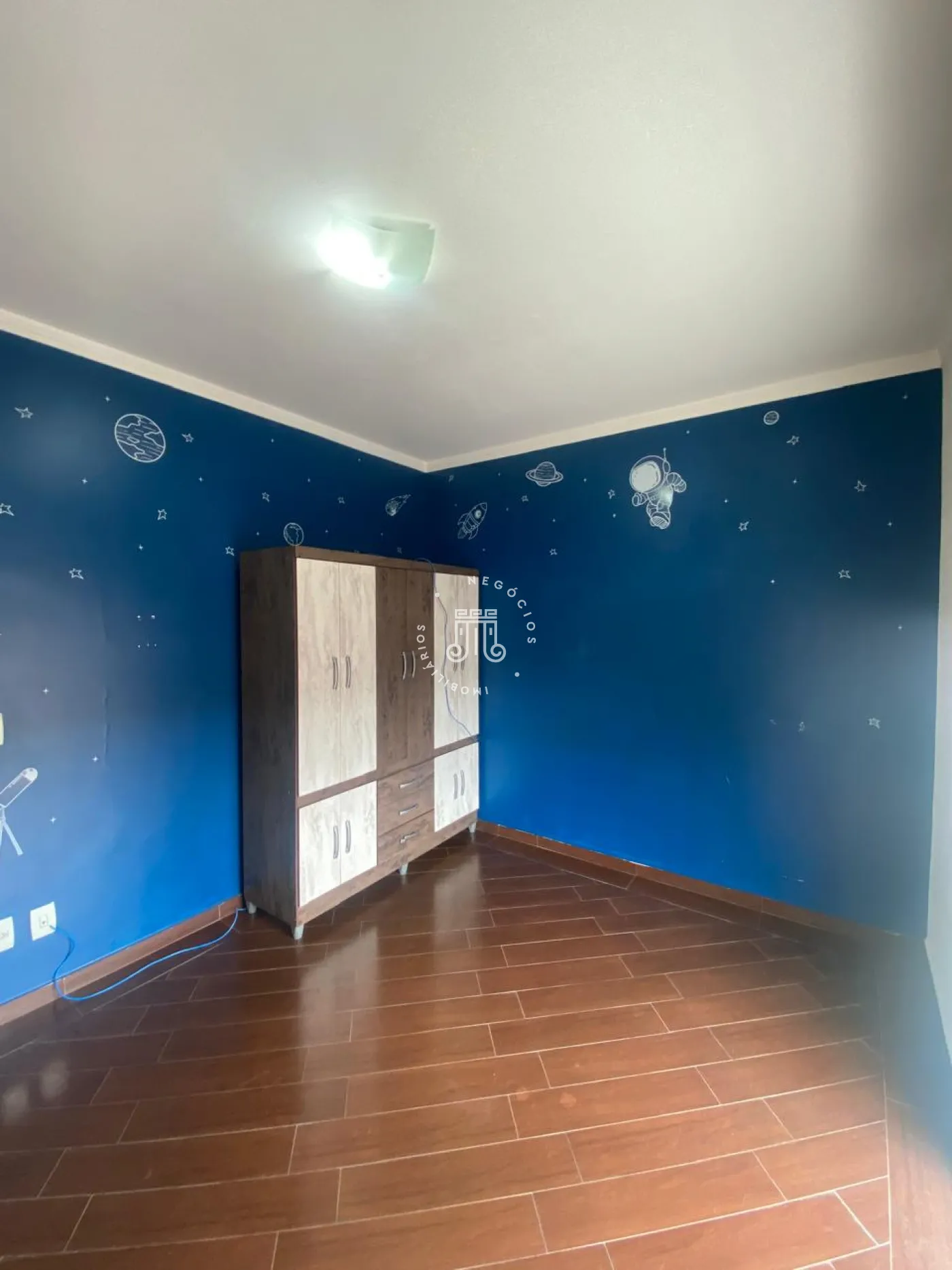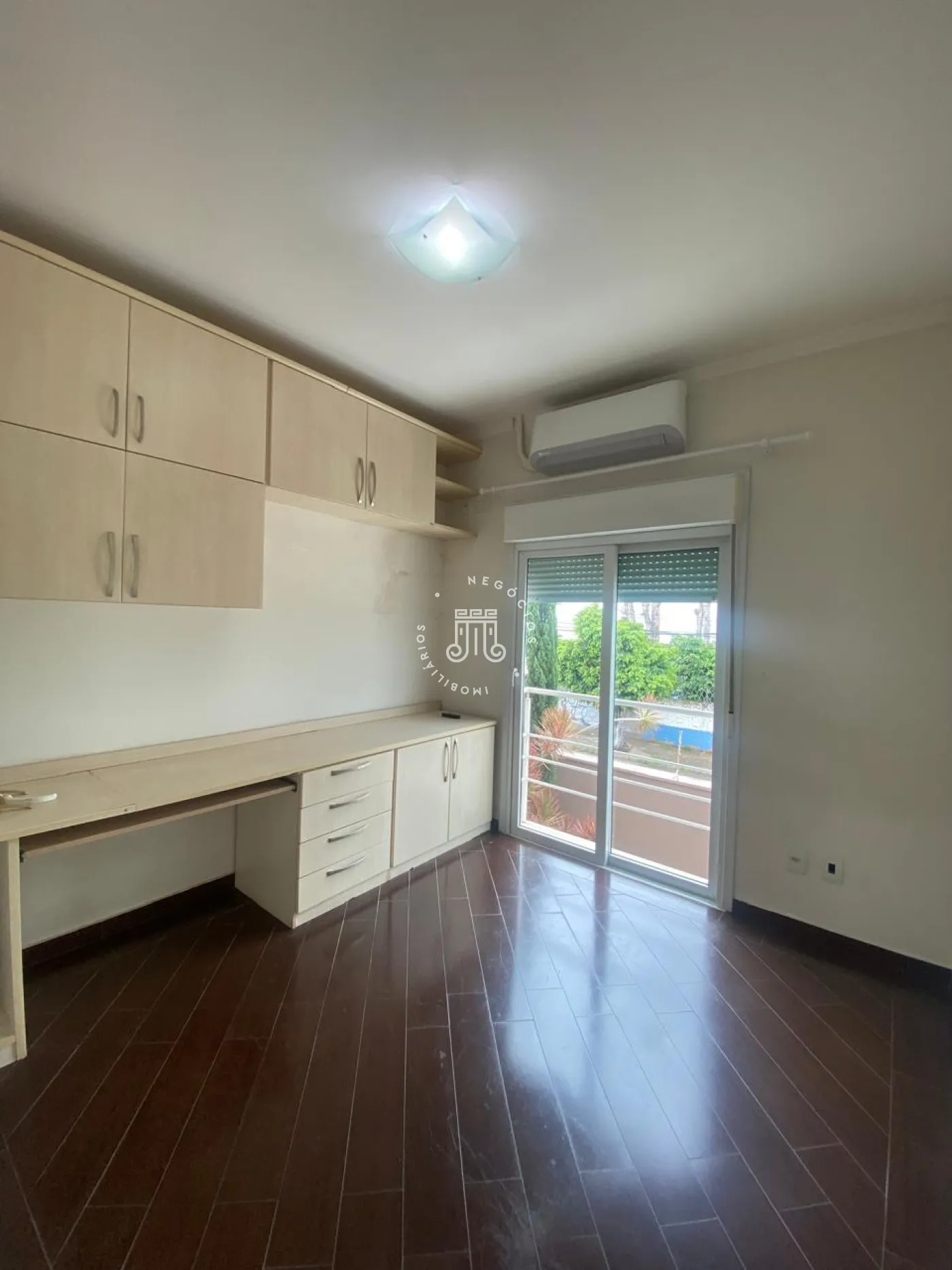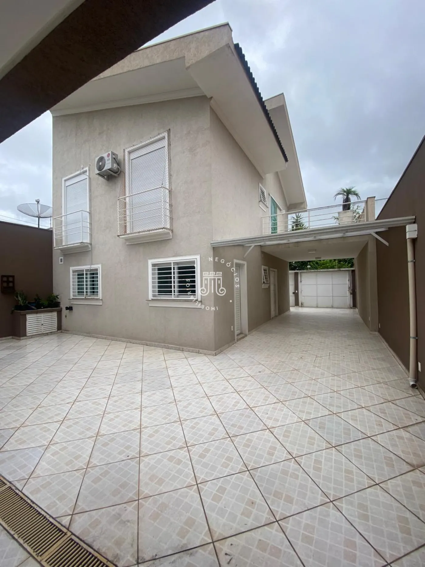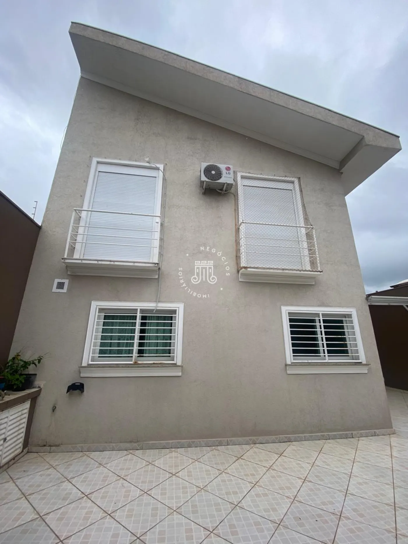Piso superior com 3 quartos, todos com ar-condicionado, sendo 2 com armários planejados, incluindo uma suíte com closet, sacada e banheiro privativo, além de um banheiro social. No piso inferior, ampla sala para 3 ambientes integrada à cozinha planejada, despensa, lavanderia e quintal. Nos fundos, área gourmet completa com quarto e banheiro. Garagem para 4 carros, sendo 2 cobertos, com alarme e portão eletrônico.