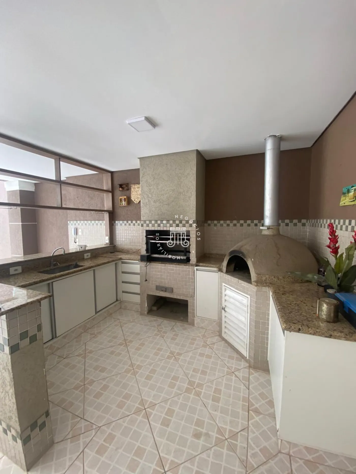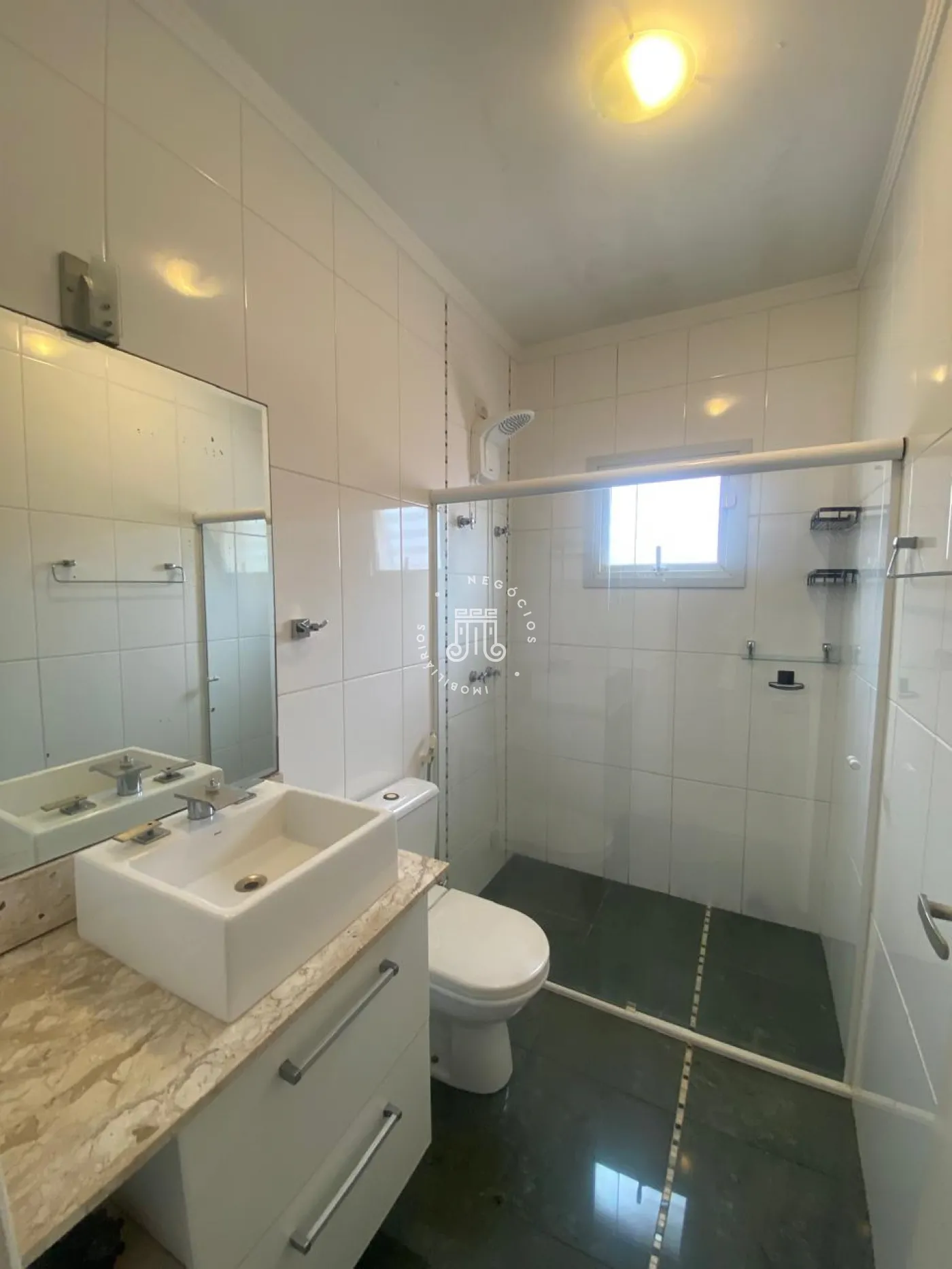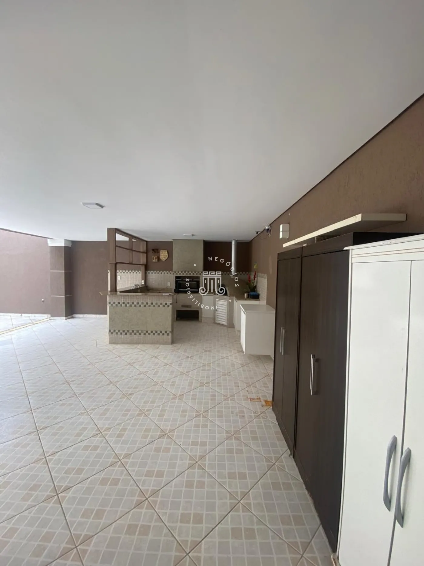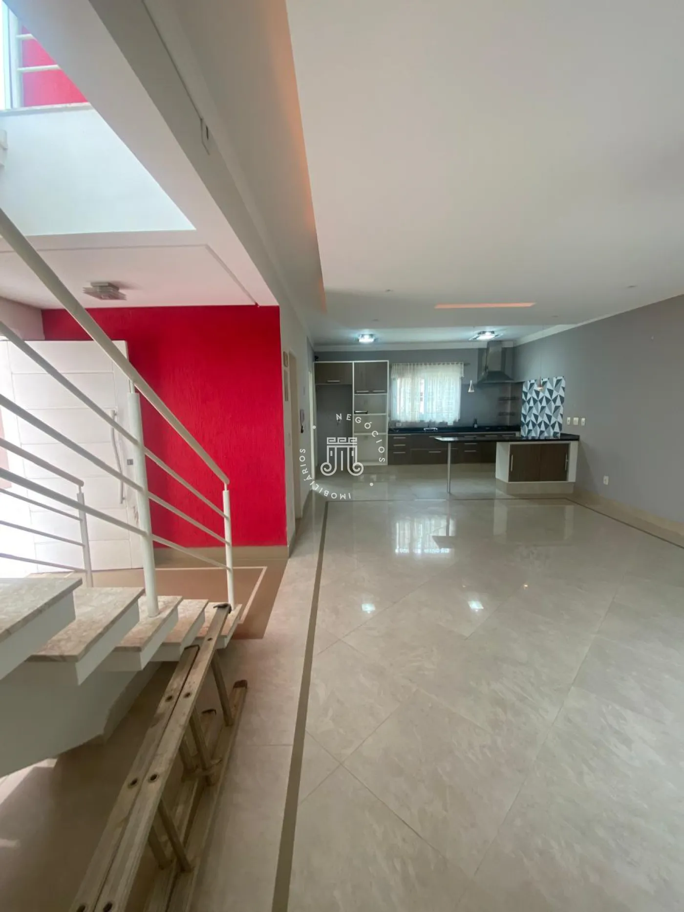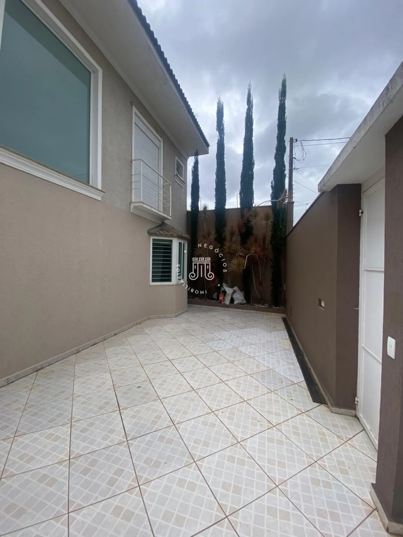 Piso superior com 3 quartos, todos com ar-condicionado, sendo 2 com armários planejados, incluindo uma suíte com closet, sacada e banheiro privativo, além de um banheiro social. No piso inferior, ampla sala para 3 ambientes integrada à cozinha planejada, despensa, lavanderia e quintal. Nos fundos, área gourmet completa com quarto e banheiro. Garagem para 4 carros, sendo 2 cobertos, com alarme e portão eletrônico.