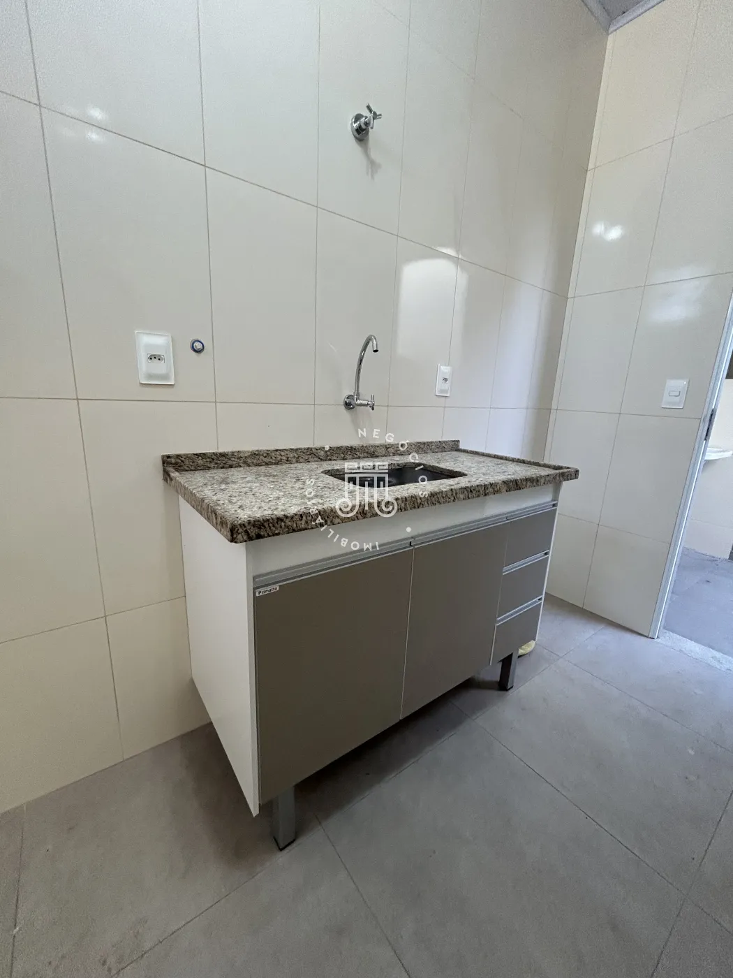 O imóvel possui 45 metros quadrados de área construída, distribuídos em um dormitório, banheiro, cozinha, área de serviço e vaga para duas motos.