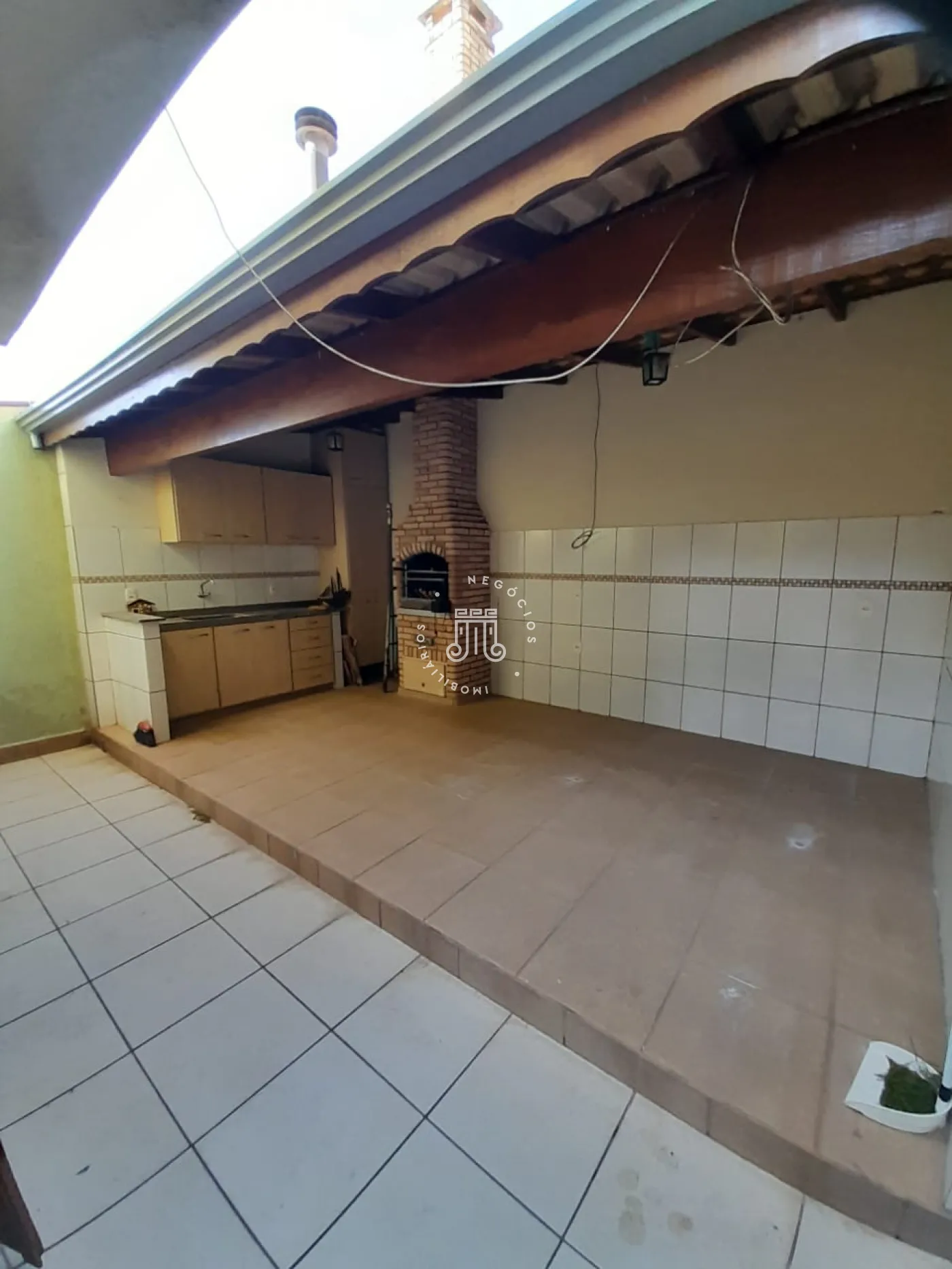 Sobrado amplo, com 3 dormitórios, sendo 1 com terraço e todos com armários, sala, cozinha com armários, sala de jantar, 2 banheiros completos, sendo 1 no térreo e outro no nível inferior,, área de serviço ampla e com armários, área gourmet com churrasqueira e armários, quintal, 2 vagas cobertas com portão eletrônico.
