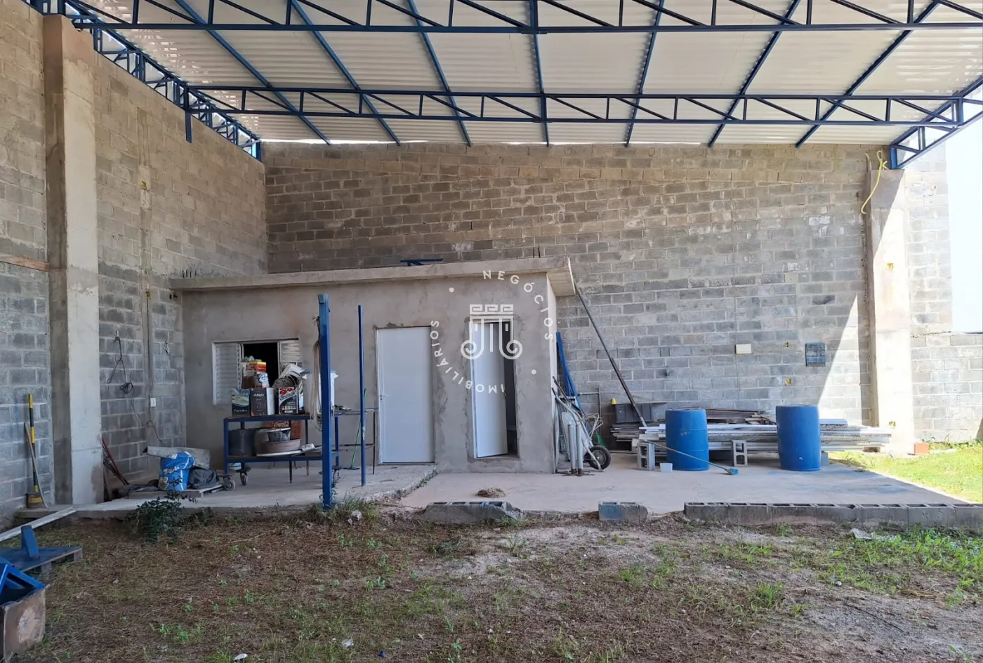Imóvel com 150m² de construção, sendo galpão, escritório e WC, mais pátio externo.