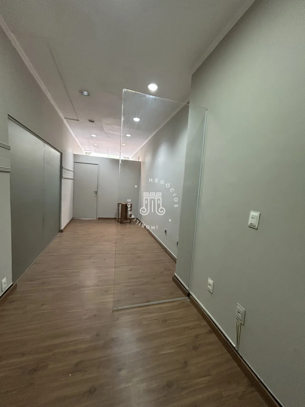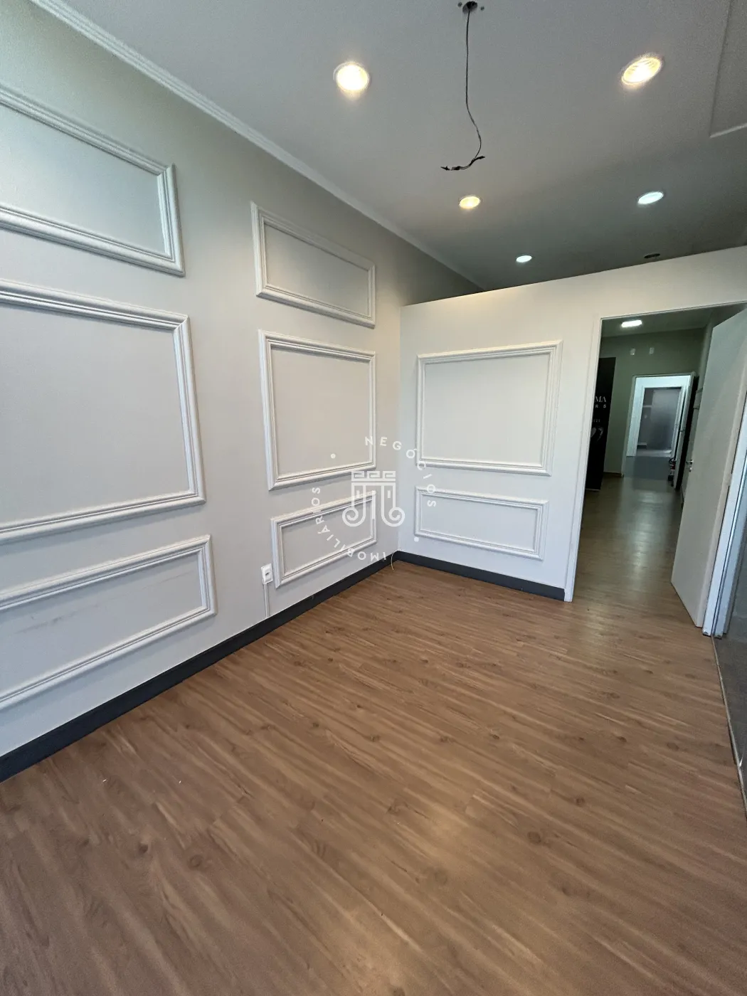O imóvel possui área construída de 137 metros quadrados, distribuídos em quatro salas, dois banheiros e uma cozinha com armários.