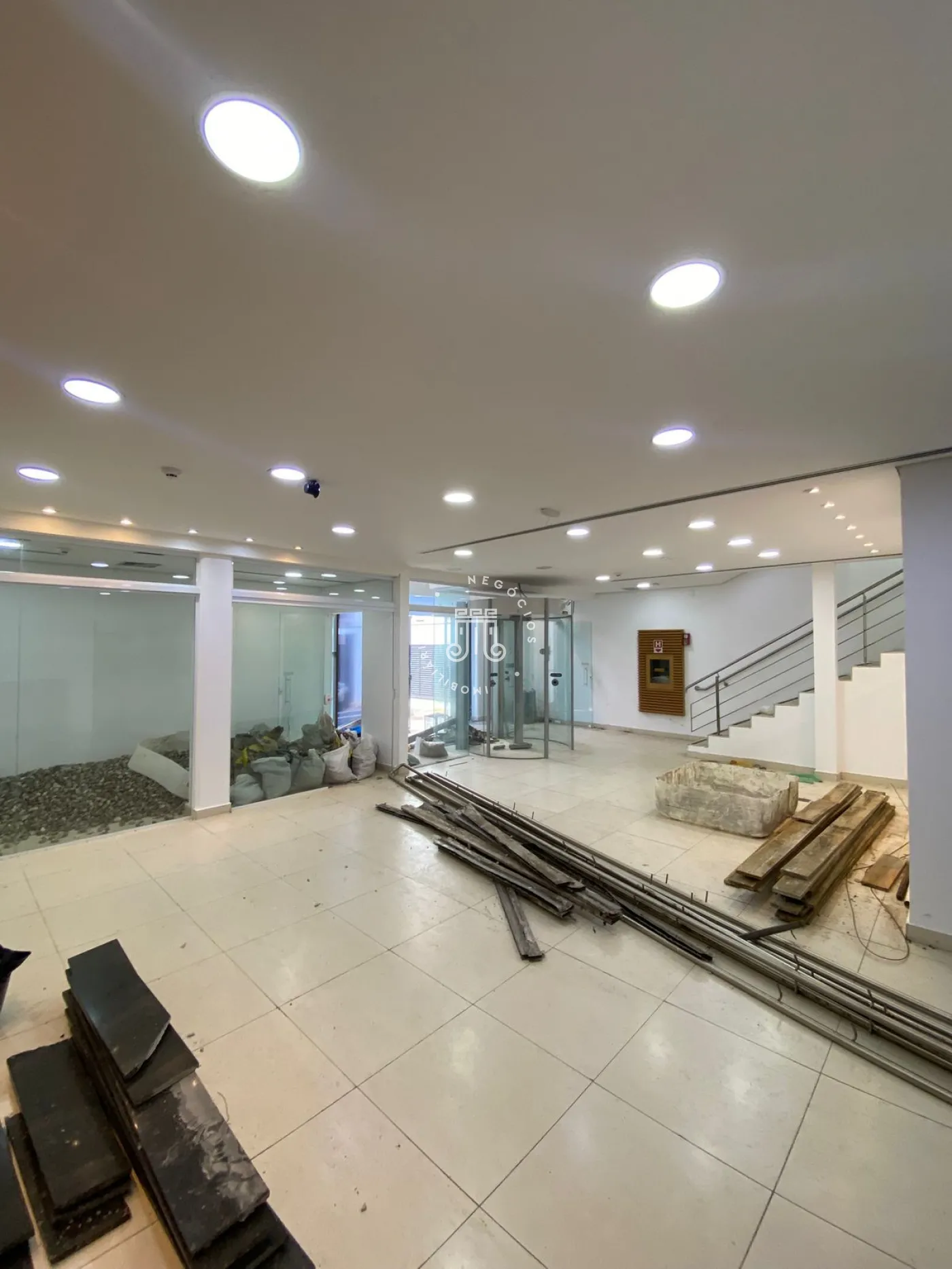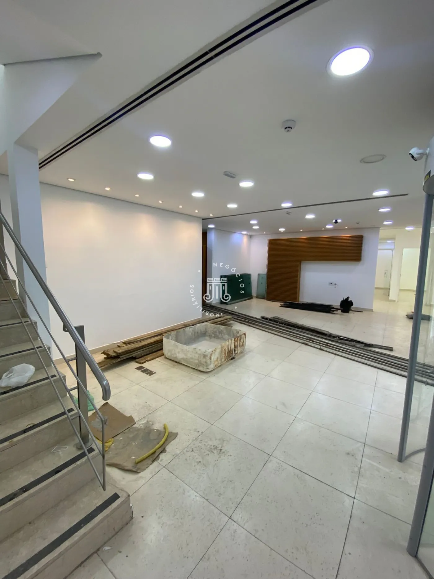 No pavimento térreo, o imóvel conta com 2 lavabos adaptados para pessoas com deficiência, jardim de inverno, além de 4 salas, sendo duas em conceito aberto 1 com fechamento em vidro 1 em drywall, permitindo flexibilidade de uso conforme a necessidade operacional. Totalizando em 220m².