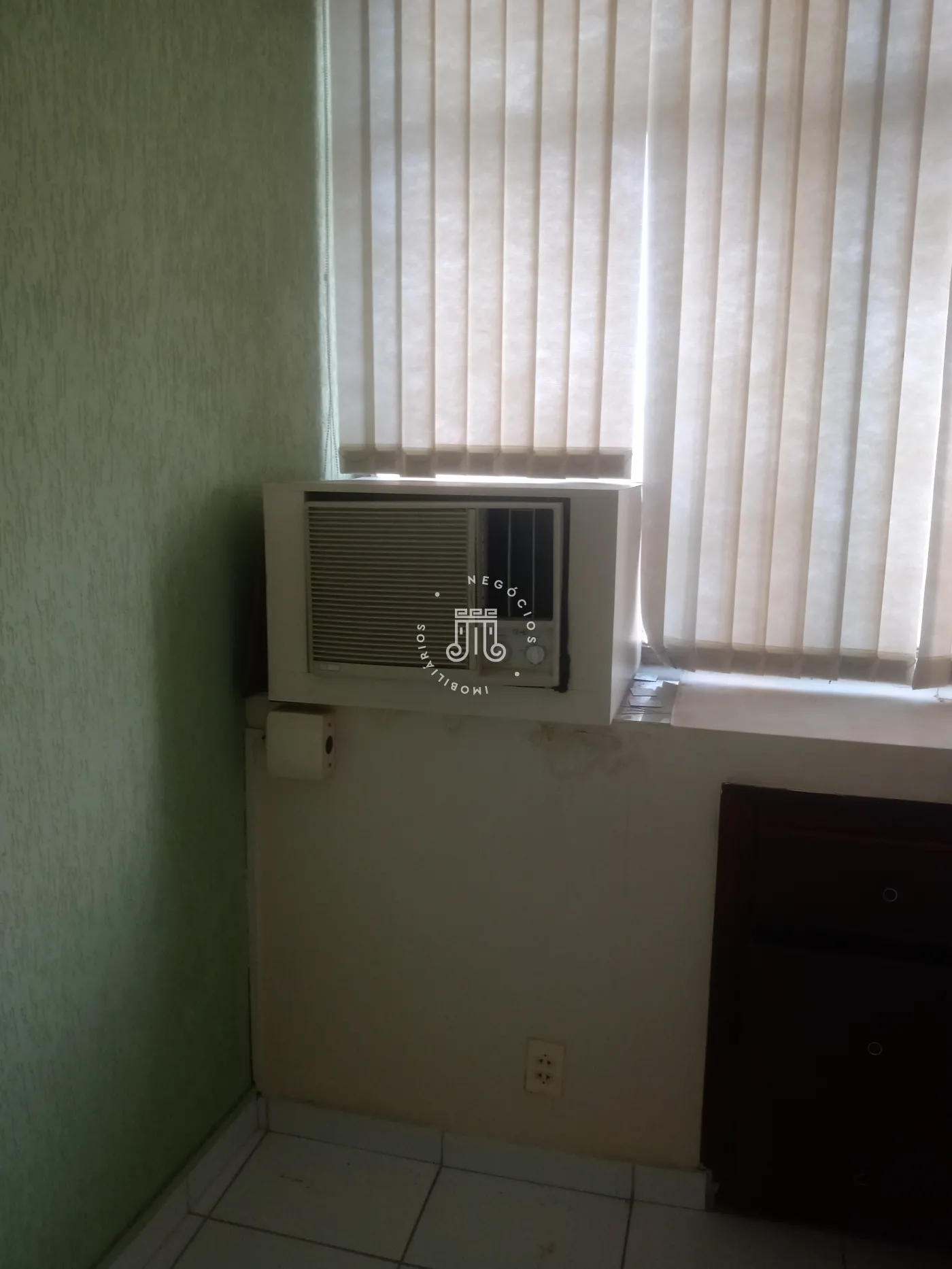 O imóvel possui área de 110 m², distribuída em uma sala ampla, duas salas menores e dois banheiros, com organização que permite diferentes configurações de uso. O condomínio oferece porteiro e câmera de vigilância e não possui vaga de garagem.