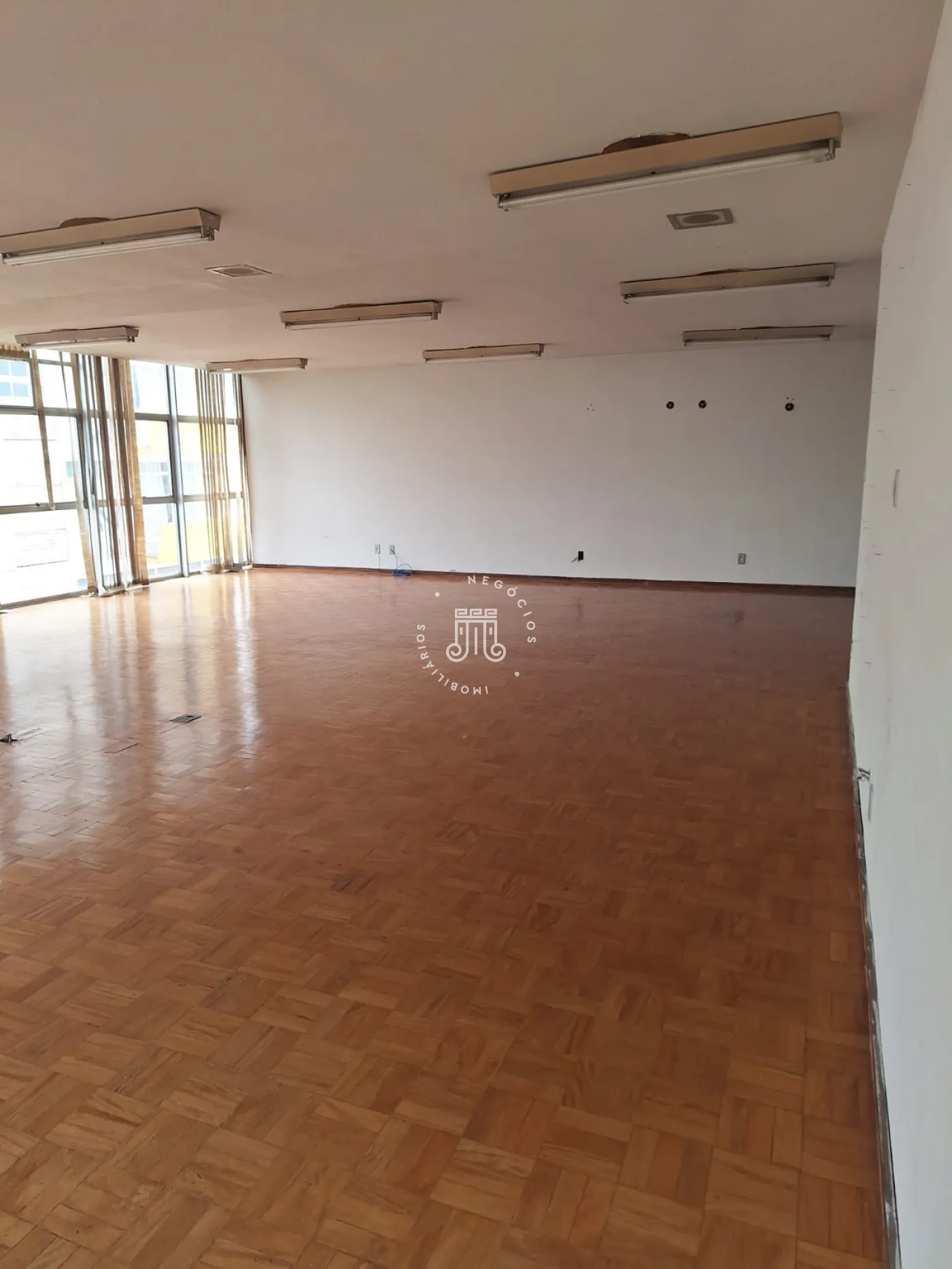 Sala comercial com 98m² de área útil, piso em taco de madeira, ar-condicionado, sacada, persianas embutidas, copa e banheiro. Imóvel em excelente estado, com 1 vaga de garagem coberta. Localização estratégica, próximo a serviços, comércio em geral e opções de transporte público.