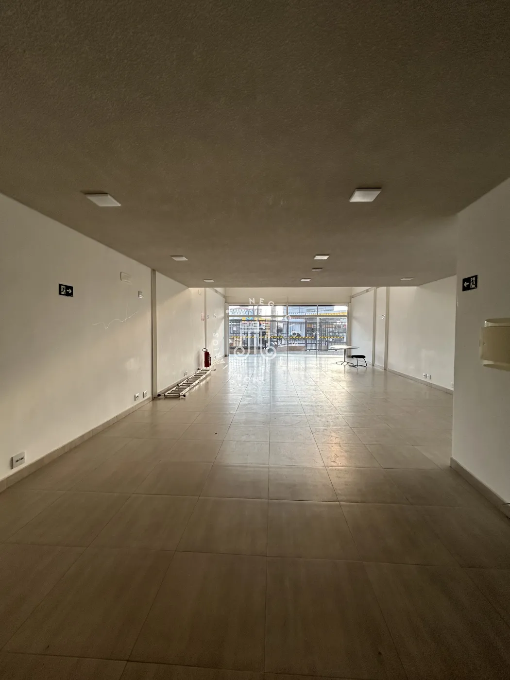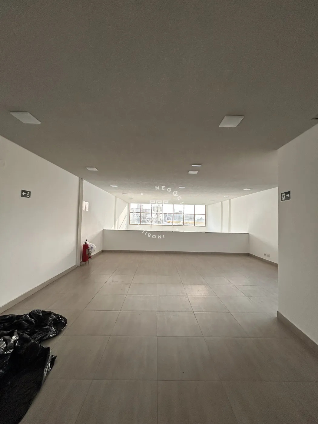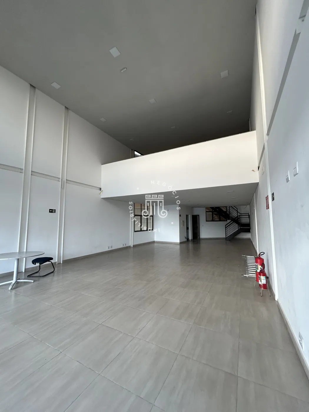 O imóvel possui 173,1 metros quadrados de área útil, divididos em uma sala ampla, um mezanino, dois banheiros e uma vaga de garagem fixa. O edifício oferece oito vagas rotativas destinadas a clientes e três vagas rotativas destinadas a pessoas com deficiência. A sala está estruturada com pontos de iluminação, internet e telefone.