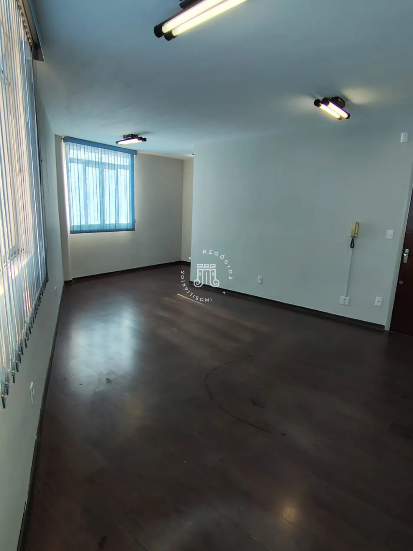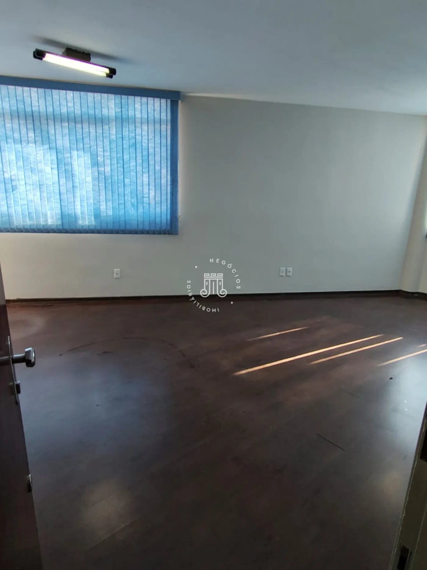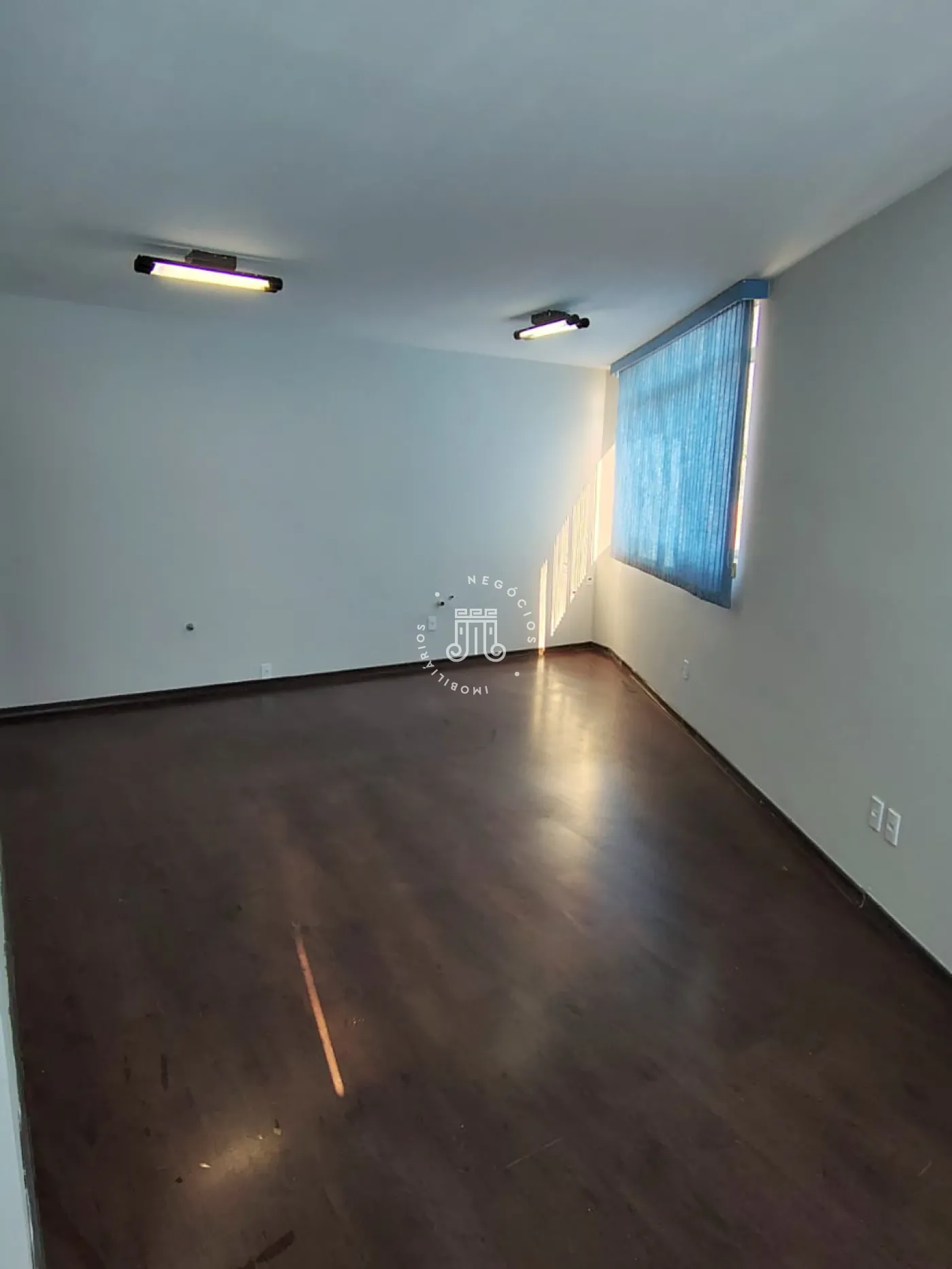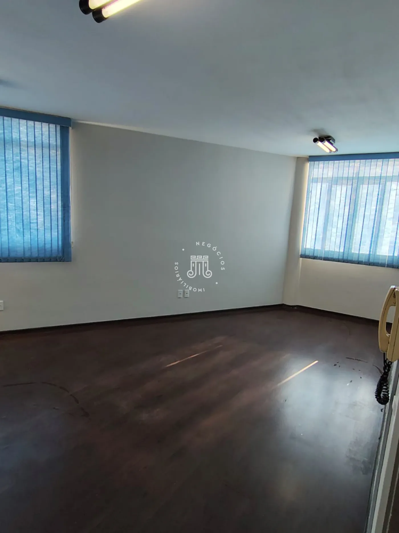 Sala comercial ampla, bem iluminada e arejada, com um banheiro banheiros. Na área comum do prédio conta ainda com dois banheiros e algumas cadeiras que tornam o ambiente uma sala de espera.