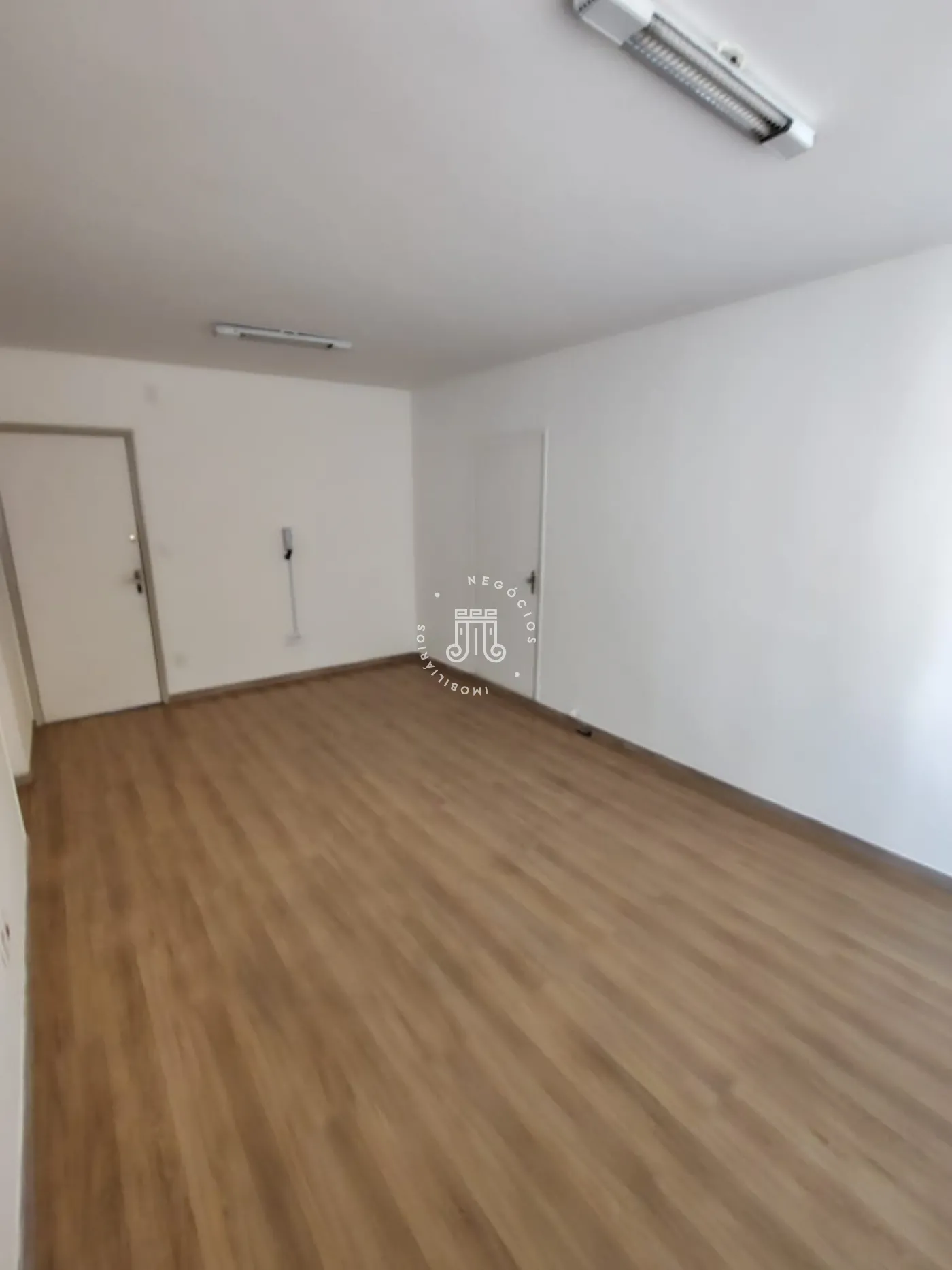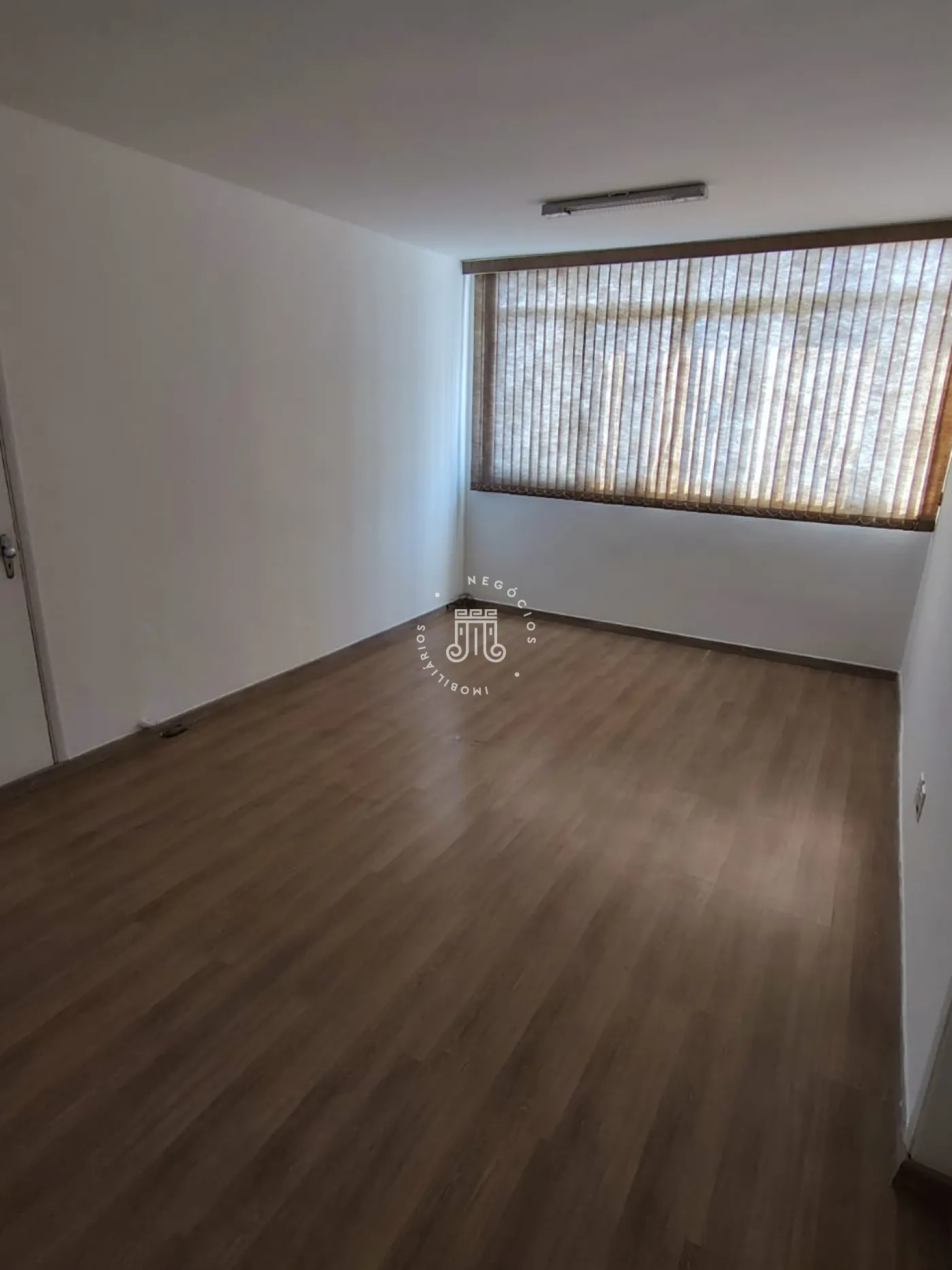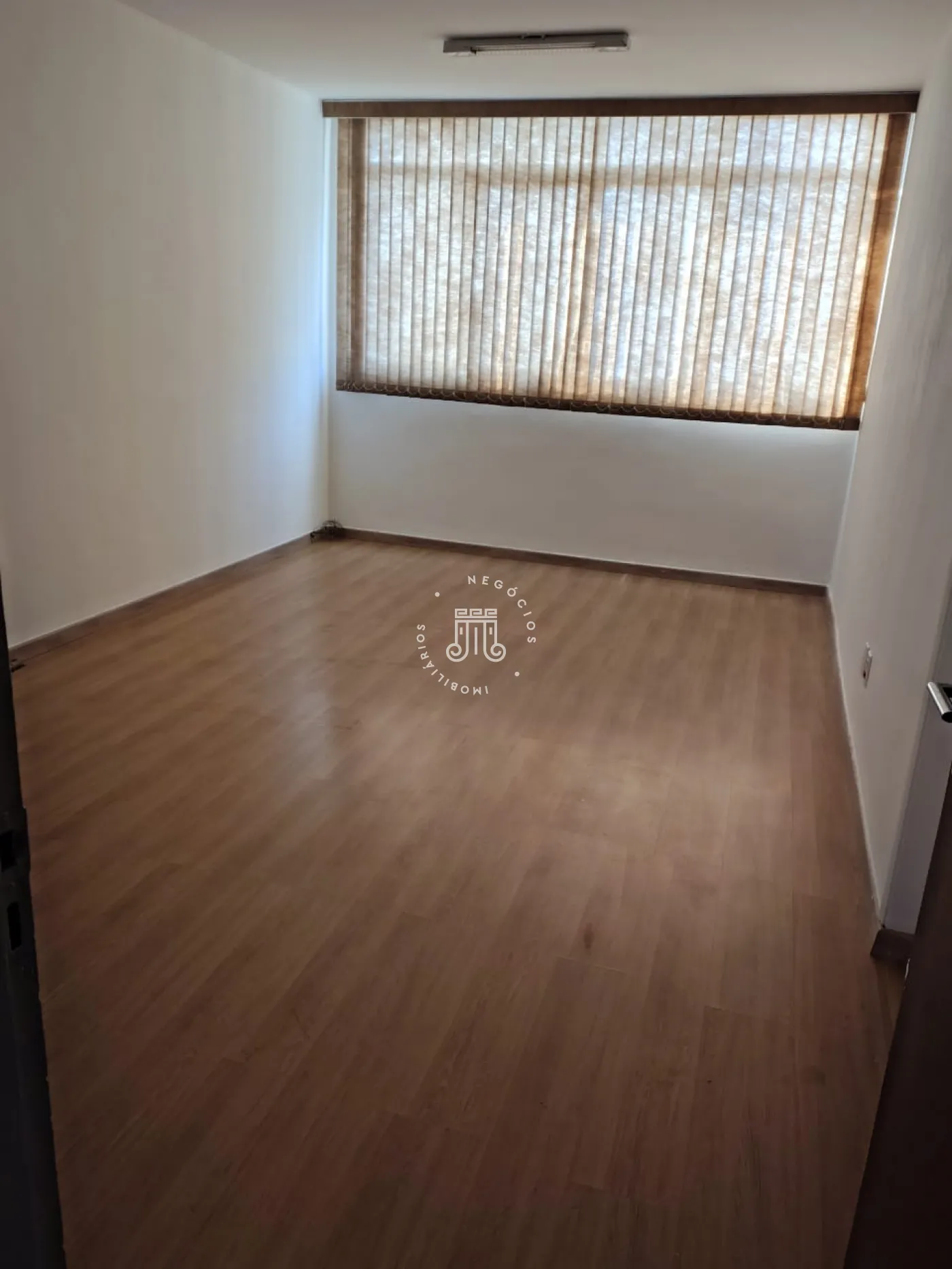 Sala comercial ampla, bem iluminada e arejada, com um banheiro banheiros. Na área comum do prédio conta ainda com dois banheiros e algumas cadeiras que tornam o ambiente uma sala de espera.