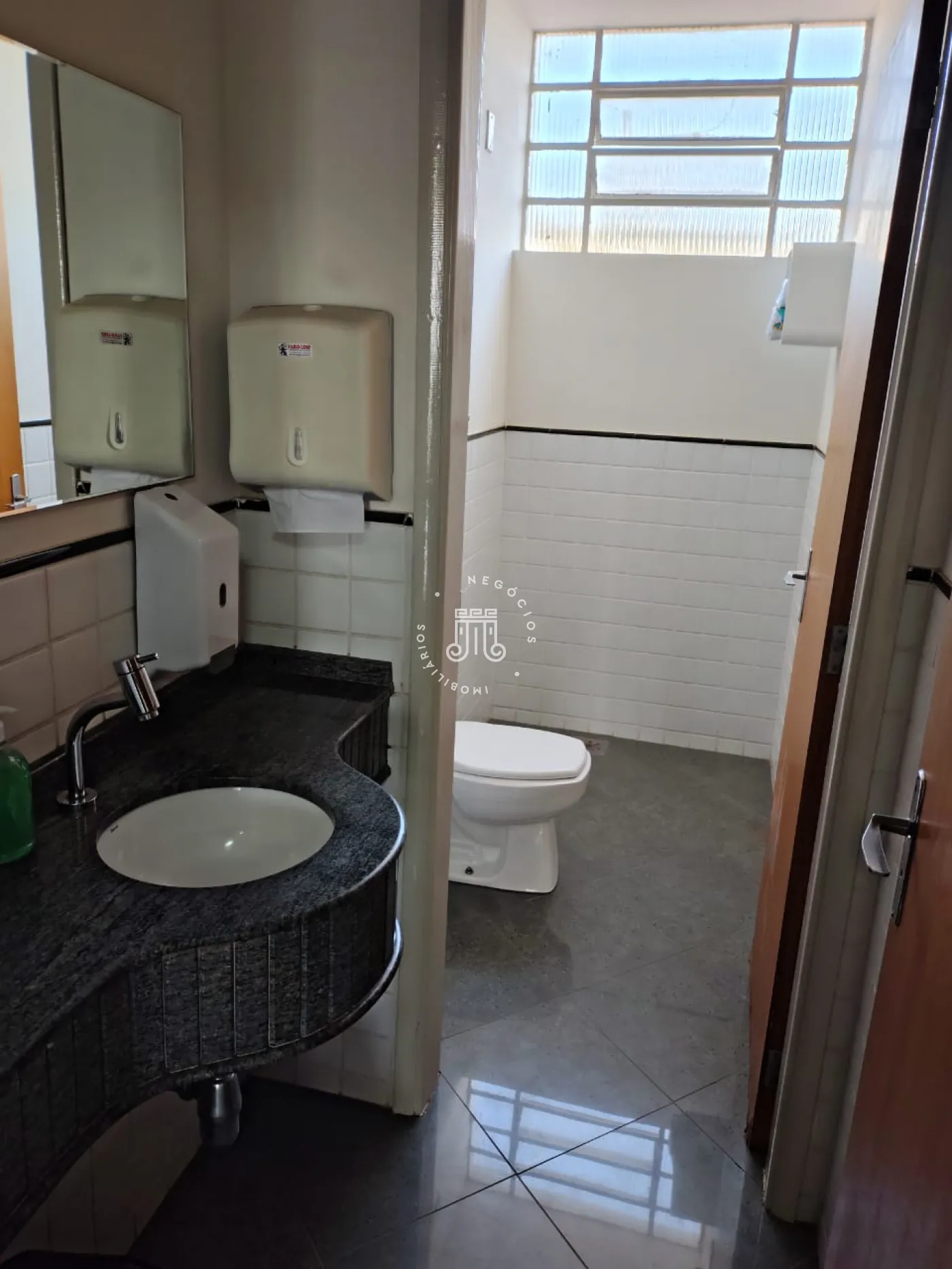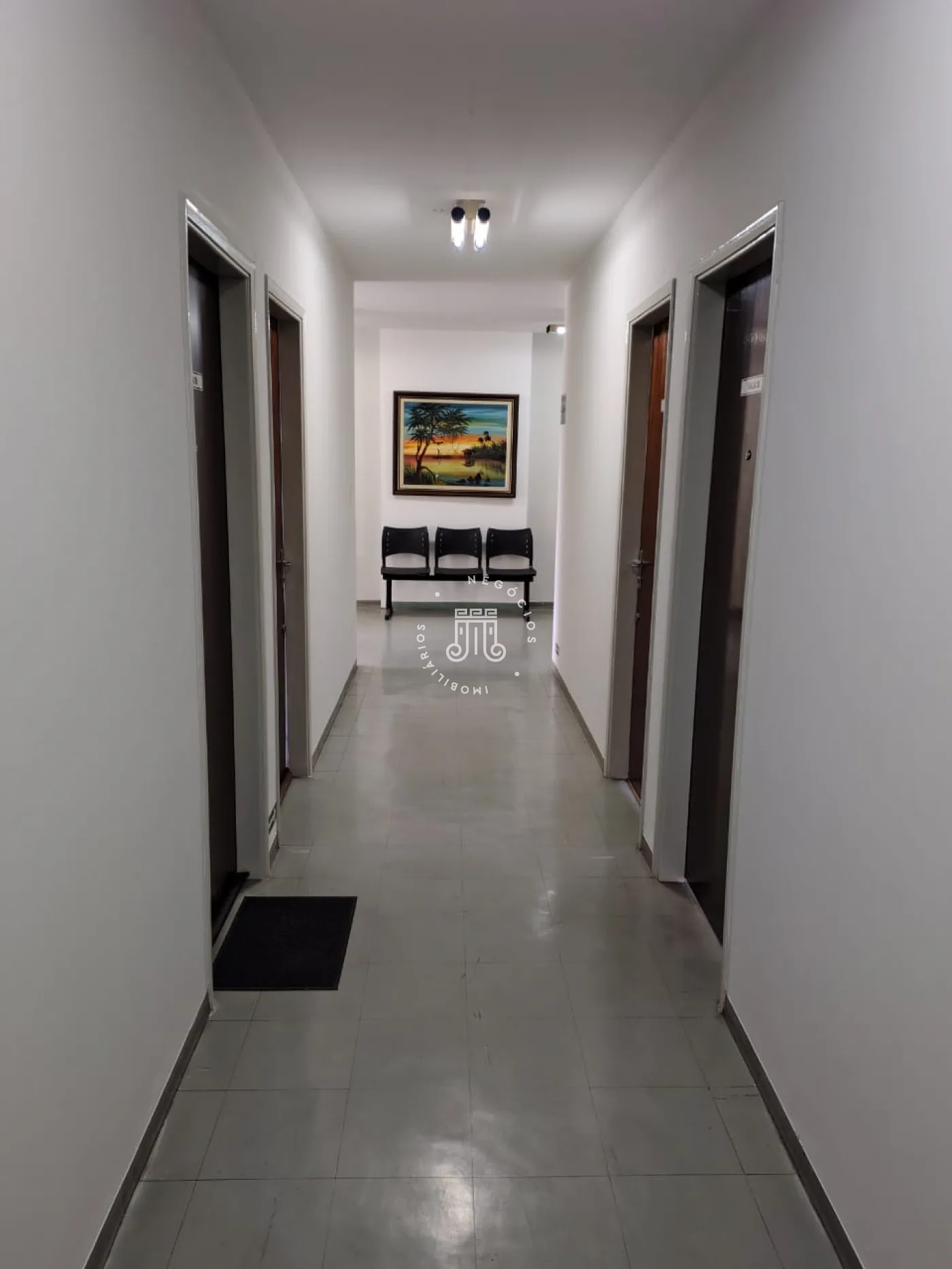 Sala comercial ampla, bem iluminada e arejada, com um banheiro banheiros. Na área comum do prédio conta ainda com dois banheiros e algumas cadeiras que tornam o ambiente uma sala de espera.