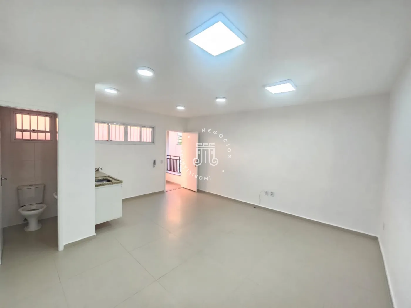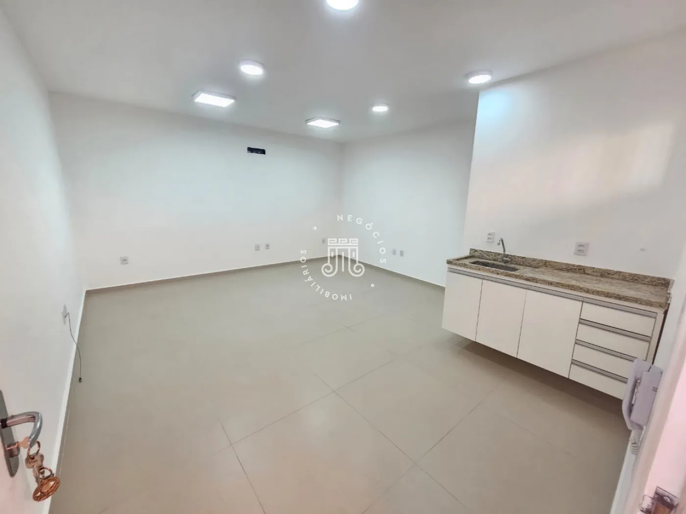 Sala comercial no 1º andar com 25m², toto em piso frio, 1 banheiro privativo, pia com armário para refeições rápidas, 1 vaga de garagem.