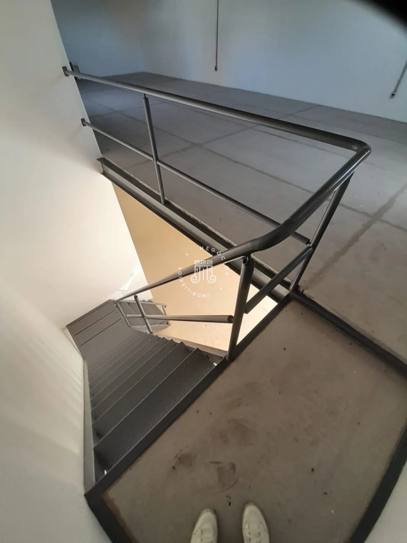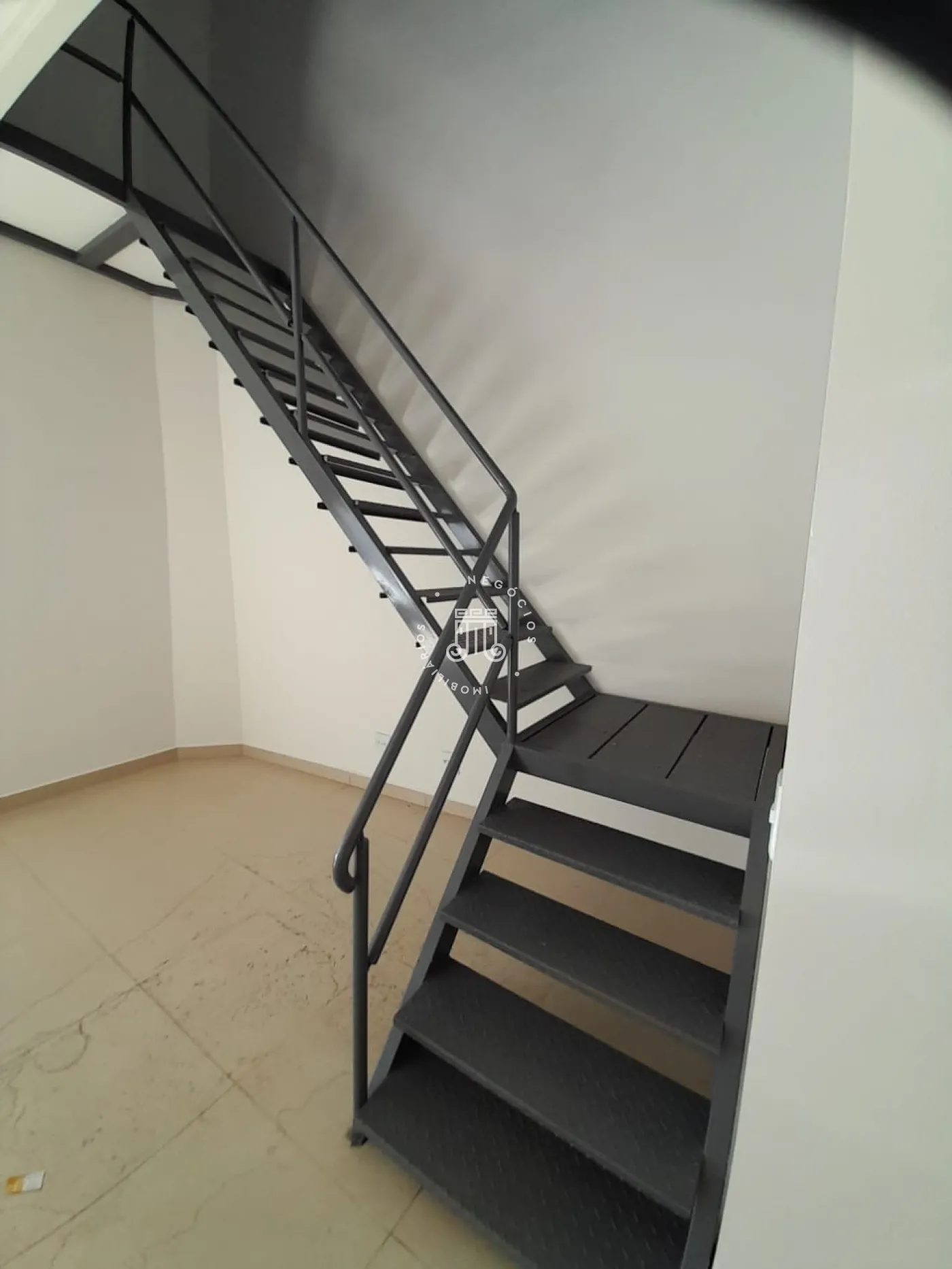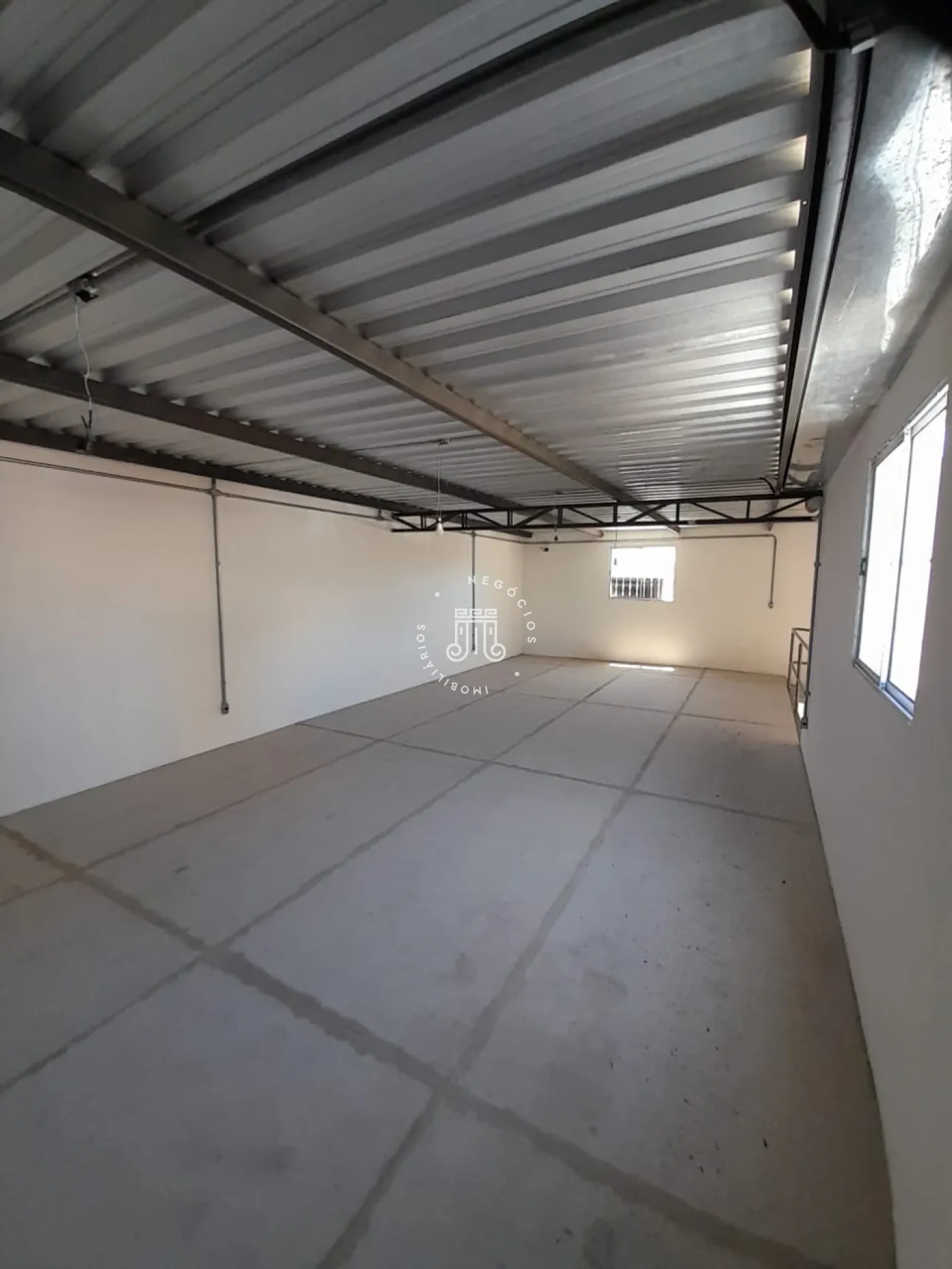 Com 2 andares sendo os dois com vão livre, cozinha, banheiros feminino e masculino, 6 vagas frontais, de esquina, com 2 entradas/saídas.