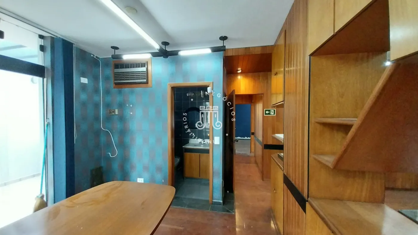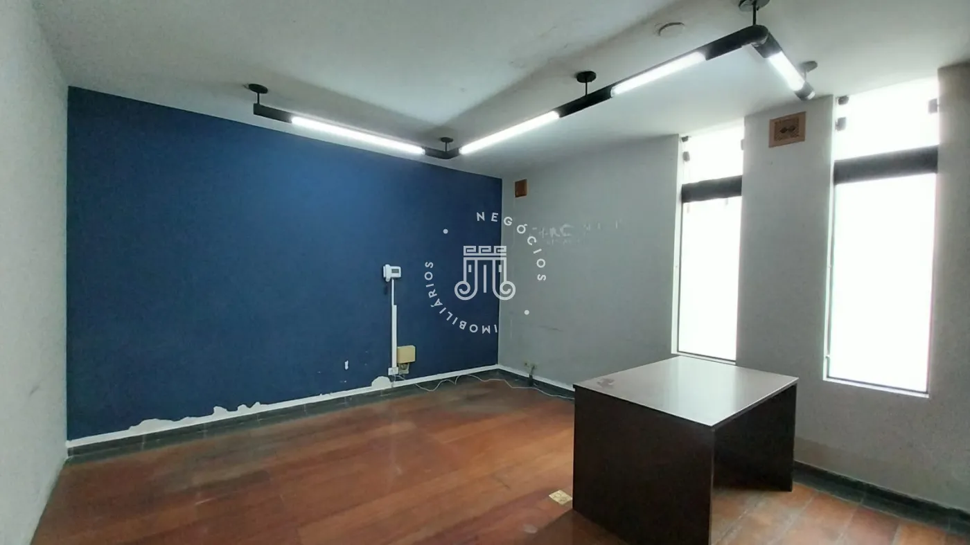 Salão comercial com 500m² de terreno e 414,95m² , composto por salão principal no térreo com 235,70m², composto de mais 2 salas, copa e banheiro, nos fundos possui uma edíula com 66m² composto por 2 salas, depósito e banheiro, área de escritório no primeiro andar com 113,25m², composto por recepção, 2 salas com ar condicionado, sala de reunião com armários, 2 banheiros e copa.