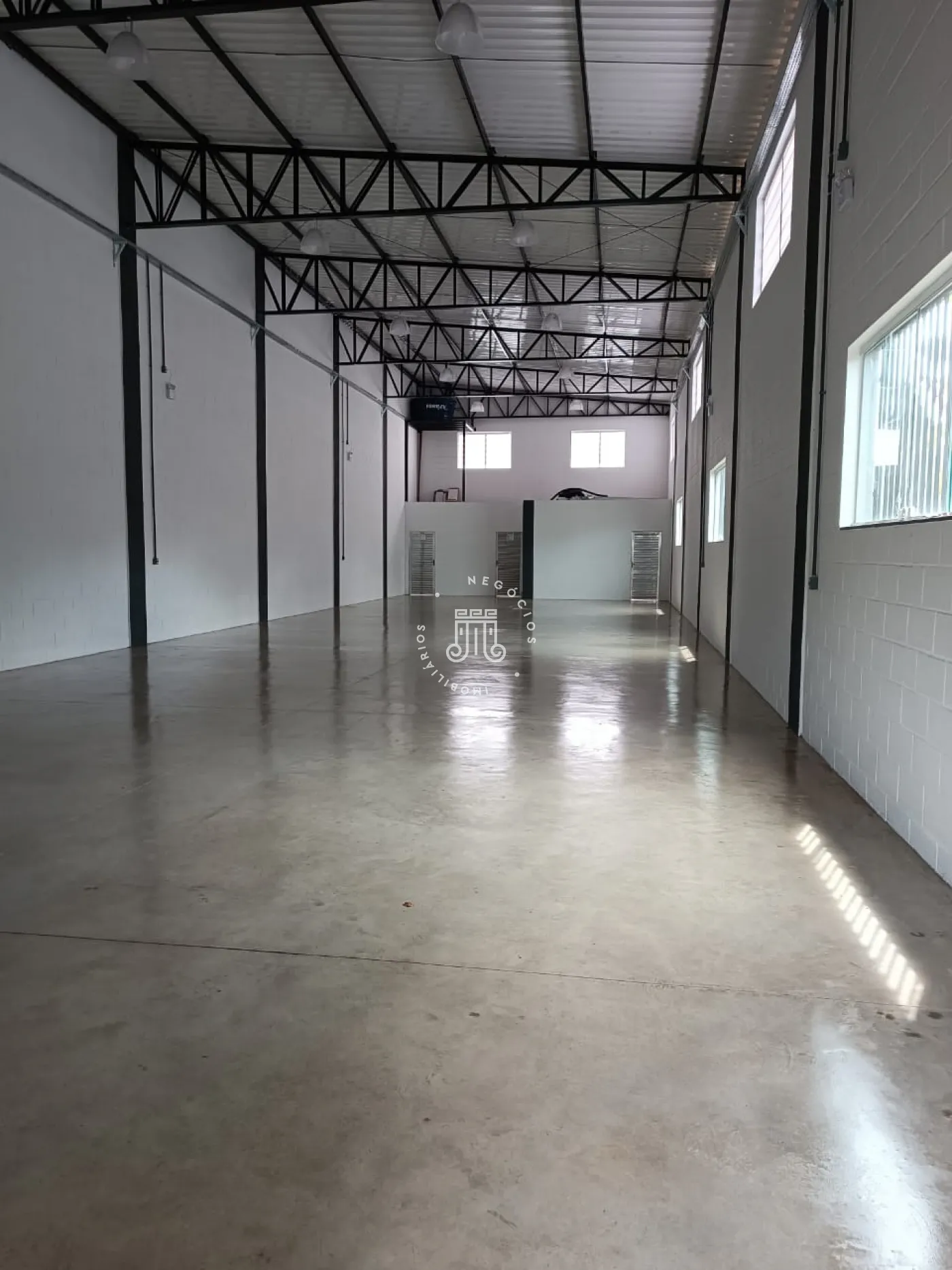 O imóvel possui área total de 1.420 metros quadrados. A área construída do galpão corresponde a 560 metros quadrados. O espaço interno é composto por uma sala e dois banheiros, sendo um destinado ao uso masculino e outro ao uso feminino.
