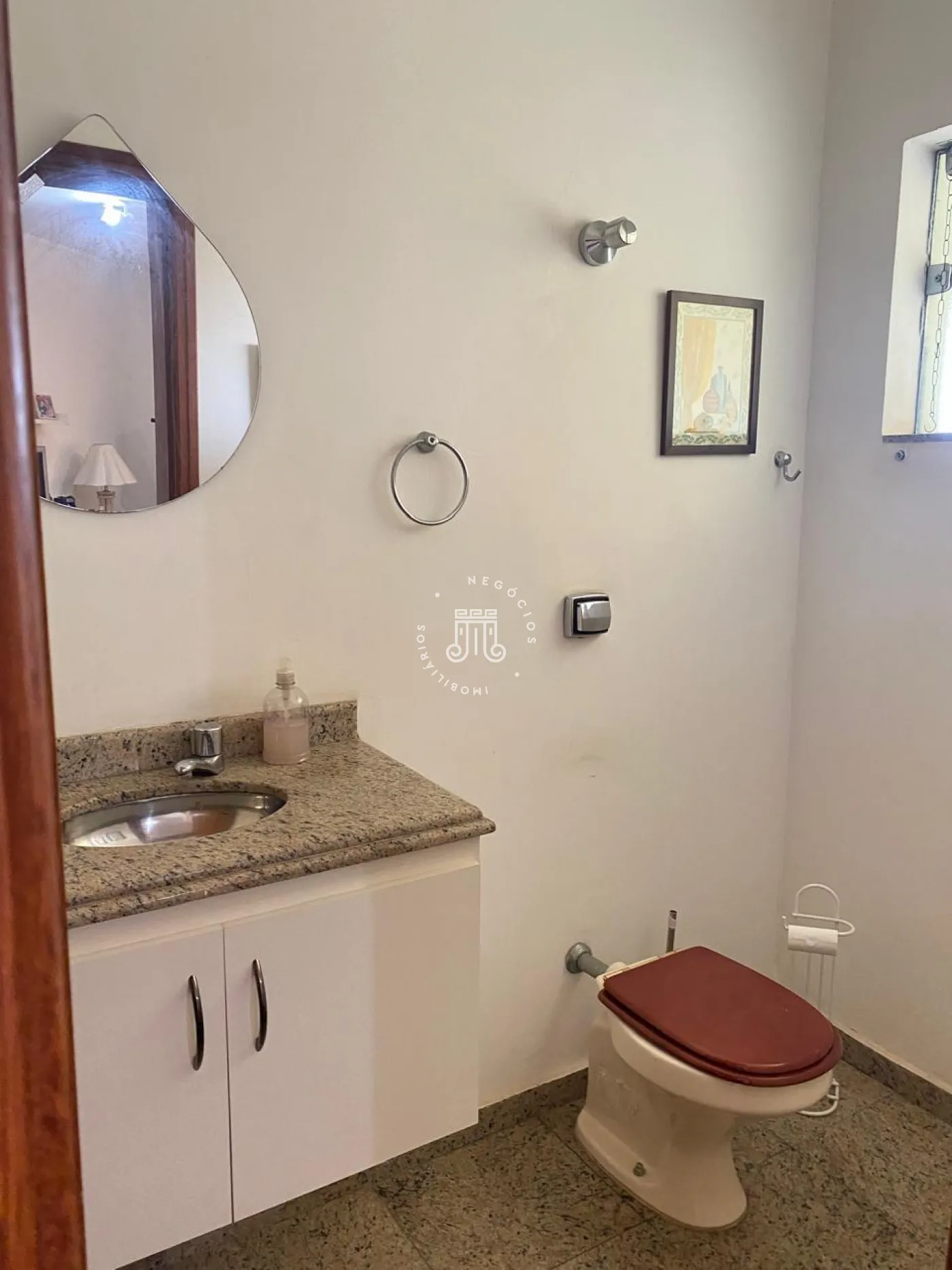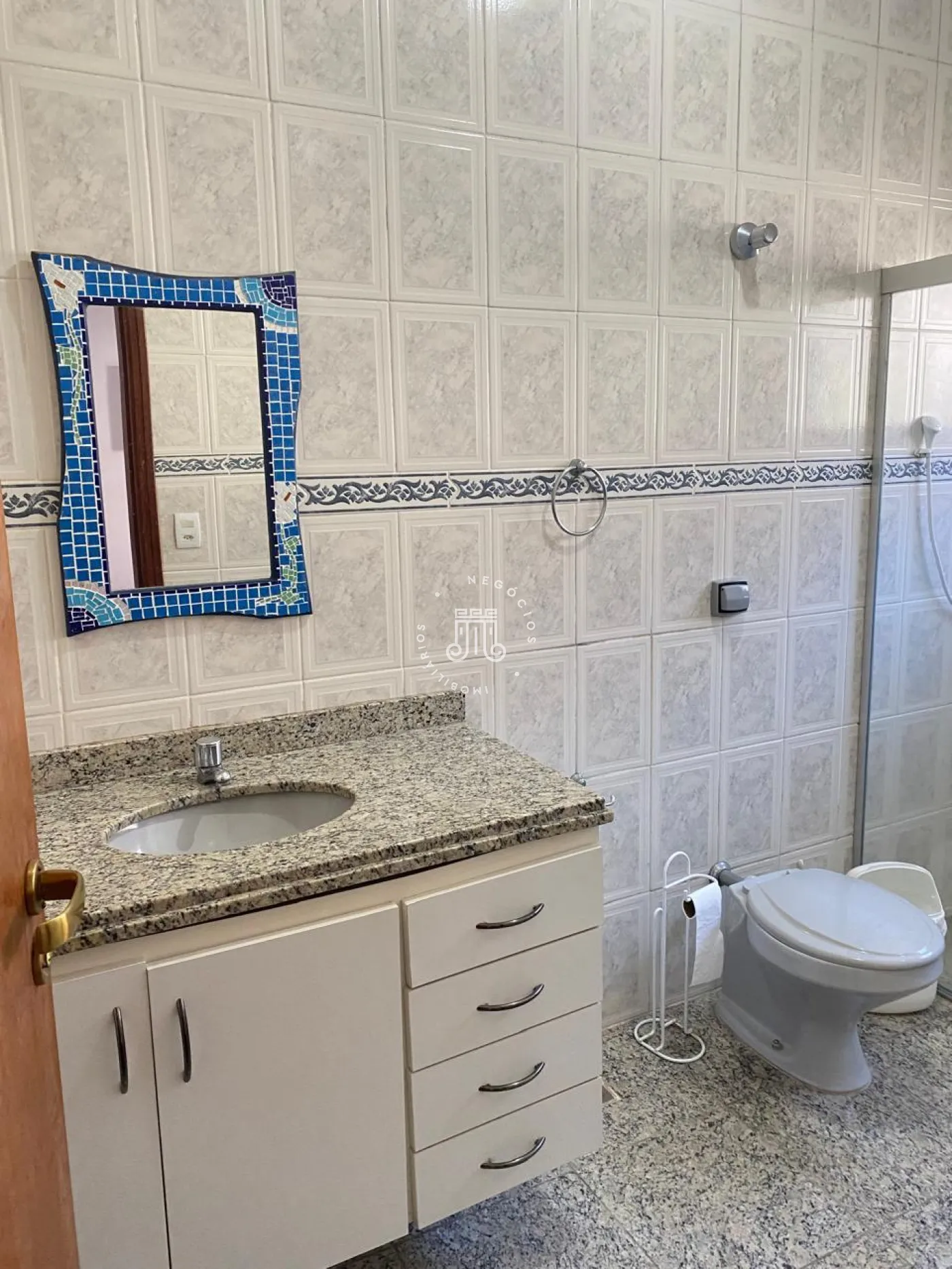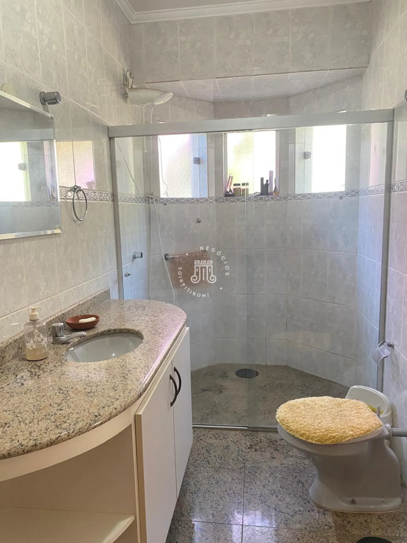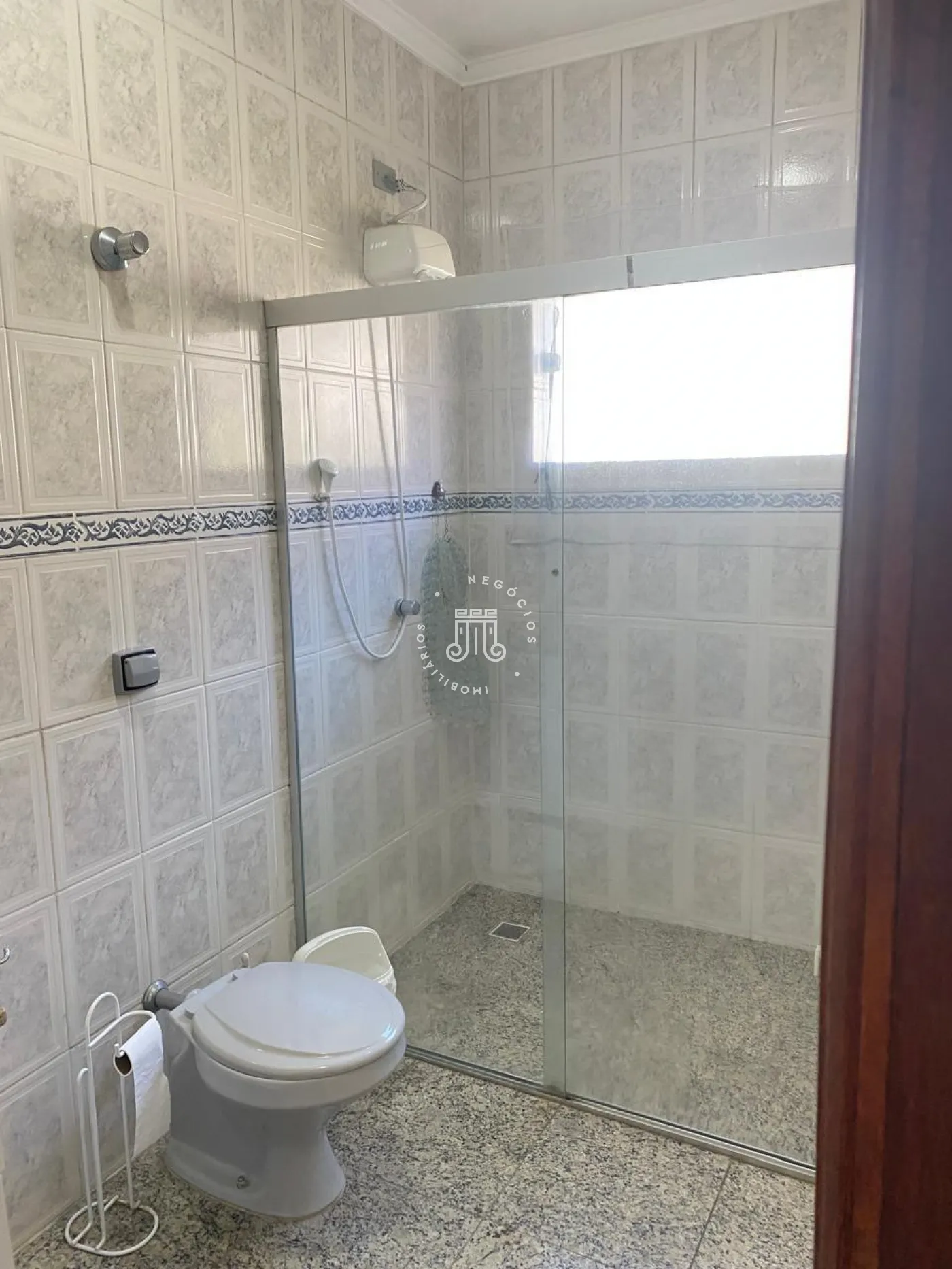 Casa térrea com 4 dormitórios sendo 3 suítes. Duas salas de estar/jantar com lareira. Ampla cozinha com armários. Área de lazer com churrasqueira e forno de pizza a lenha. Tem banheiro na área da churrasqueira. Piscina com aquecimento solar. Metragem da piscina 4m por 8m sendo uma parte mais rasa (prainha para crianças) e outra parte tem 1M e meio mais ou menos. Uns 32 mil litros Está coberta por capa térmica e de proteção. Formação vinil em bom estado de conservação.