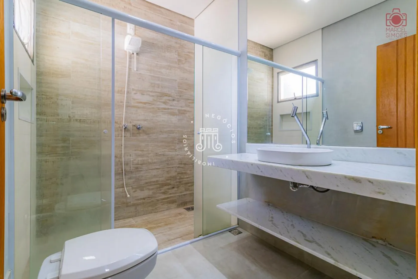 O imóvel conta com 04 suítes, sendo 01 master com closet, sala ampla, cozinha, banheiro social, área de serviço, jacuzzi, pomar produzido, quintal com mais de 430m² e 05 vagas de garagem. A casa é toda em porcelanato e com planejados.