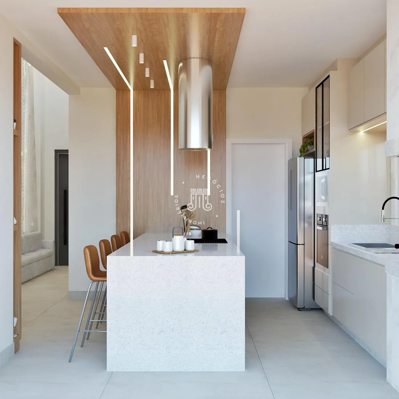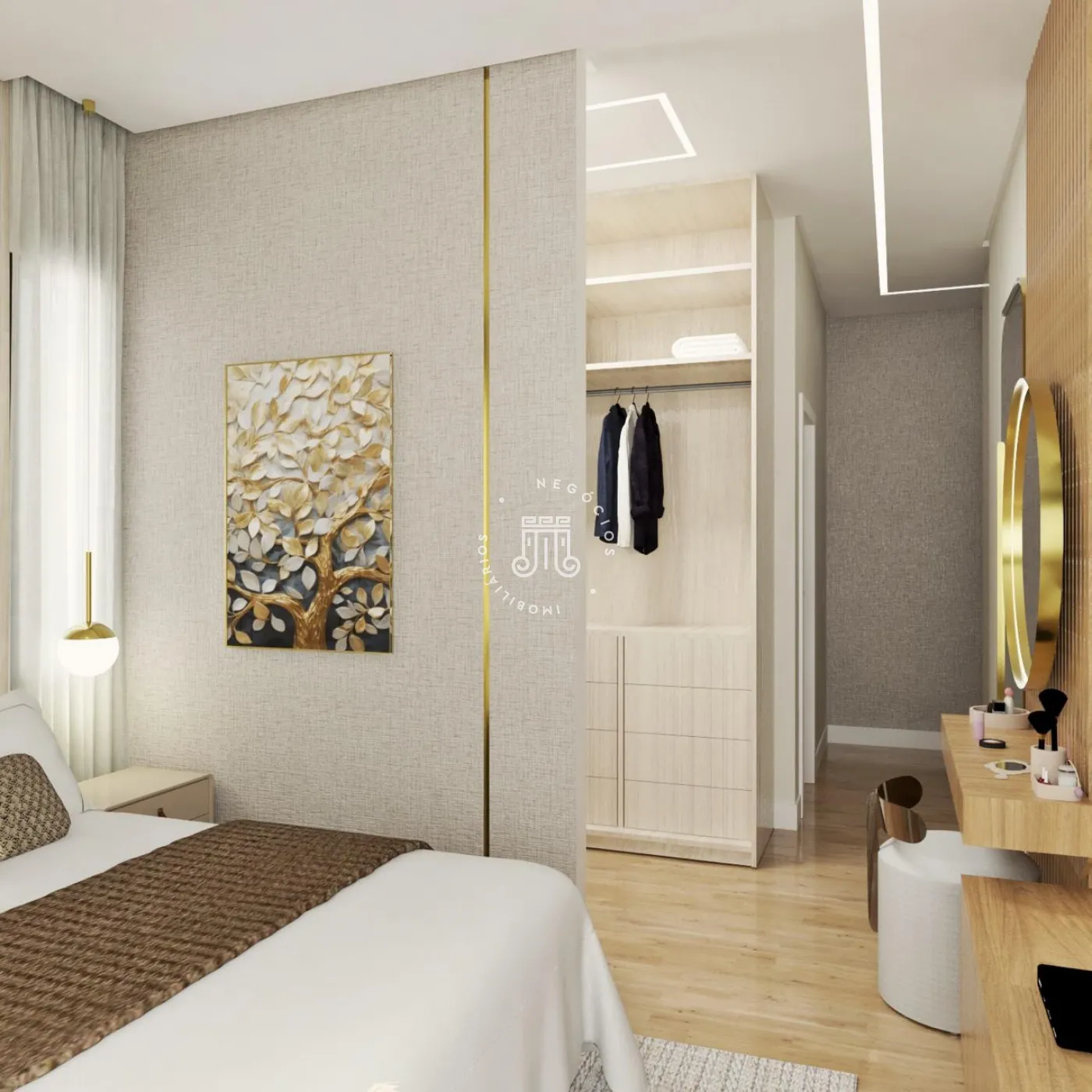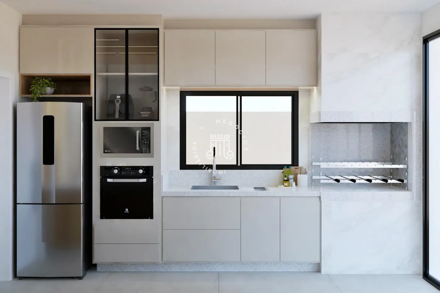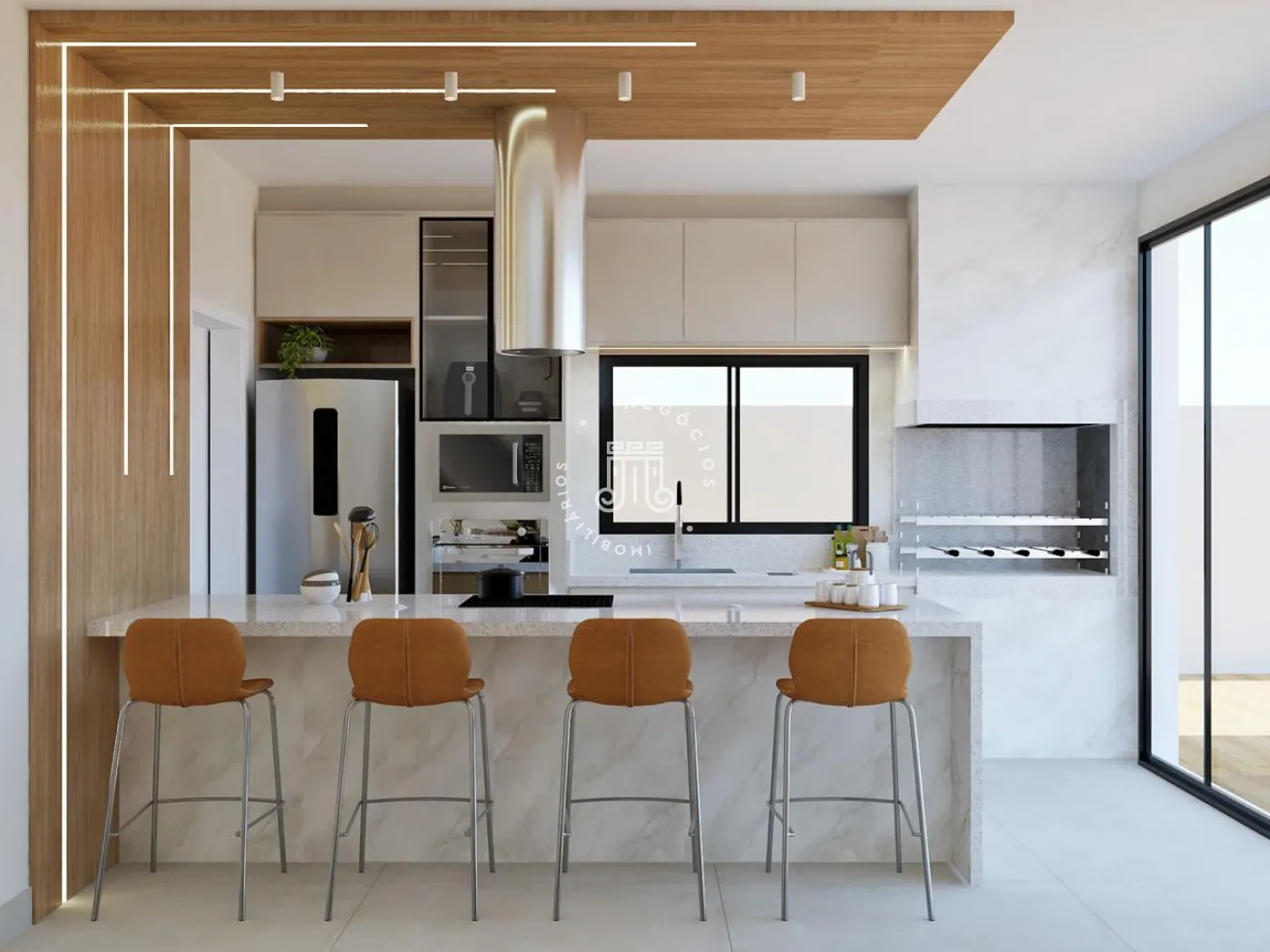 O imóvel conta com: 3 suítes, sendo 1 master com closet, sala ampla, cozinha toda em pedra branca estrelar, total de 5 banheiros, lavado interno e externo, escritório, área de serviço, despensa, 2 vagas de garagem cobertas, área gourmet com churrasqueira e terraço/rooftop com vista para área de preservação.
