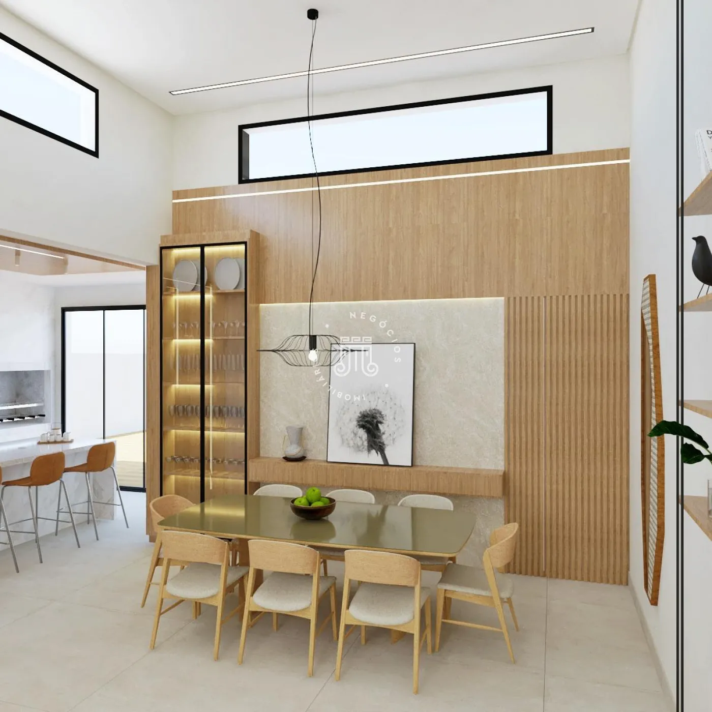 Casa térrea em rua sem saída, com infraestrutura para A/C, pé direito alto na sala, energia fotovoltaica, preparada para água quente, toda com teto com forro de gesso para personalização de projeto luminotécnico, pisos em porcelanatos, terraço com vista para área de preservação, janelas maiores do que a padrão para garantia de luminosidade e ventilação.