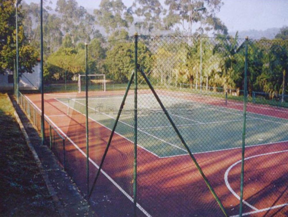 Propriedade conta ainda com lago, piscina, salão de jogos, quadra de tênis e muito verde.