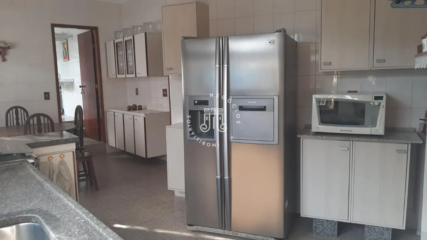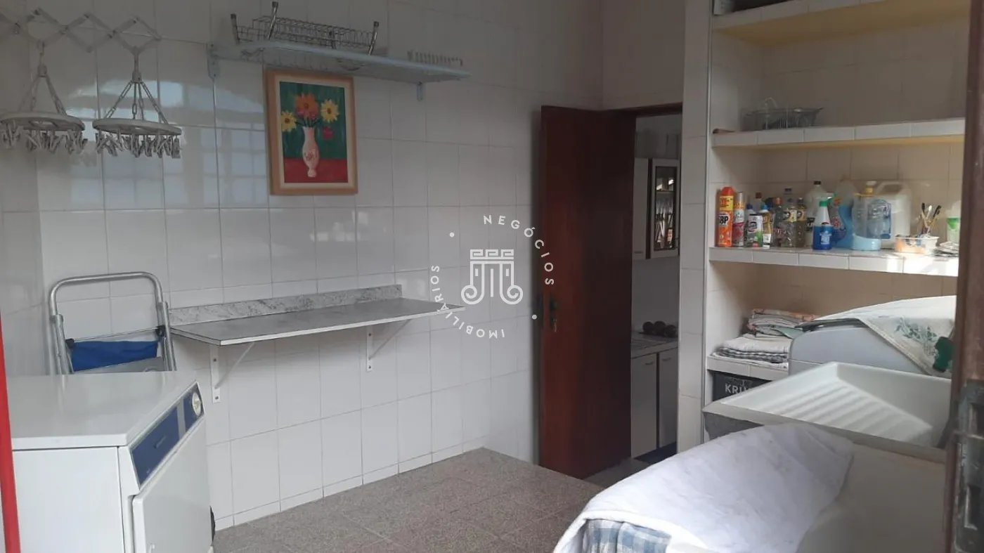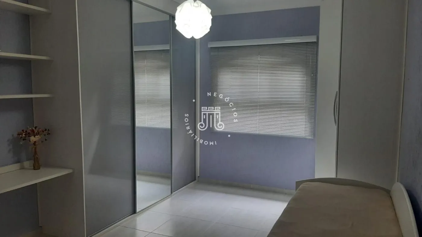 São três suítes, sendo uma delas com closet. O hall social dá acesso à sala com três ambientes e lareira, além de uma sacada com vista para a área de lazer. A cozinha é planejada e integrada à área de serviço.