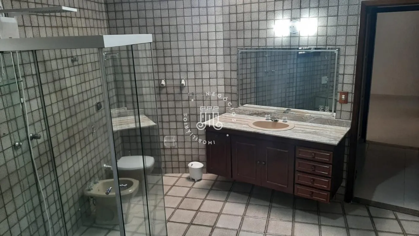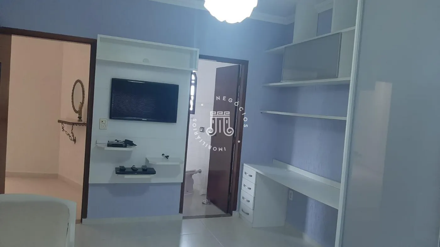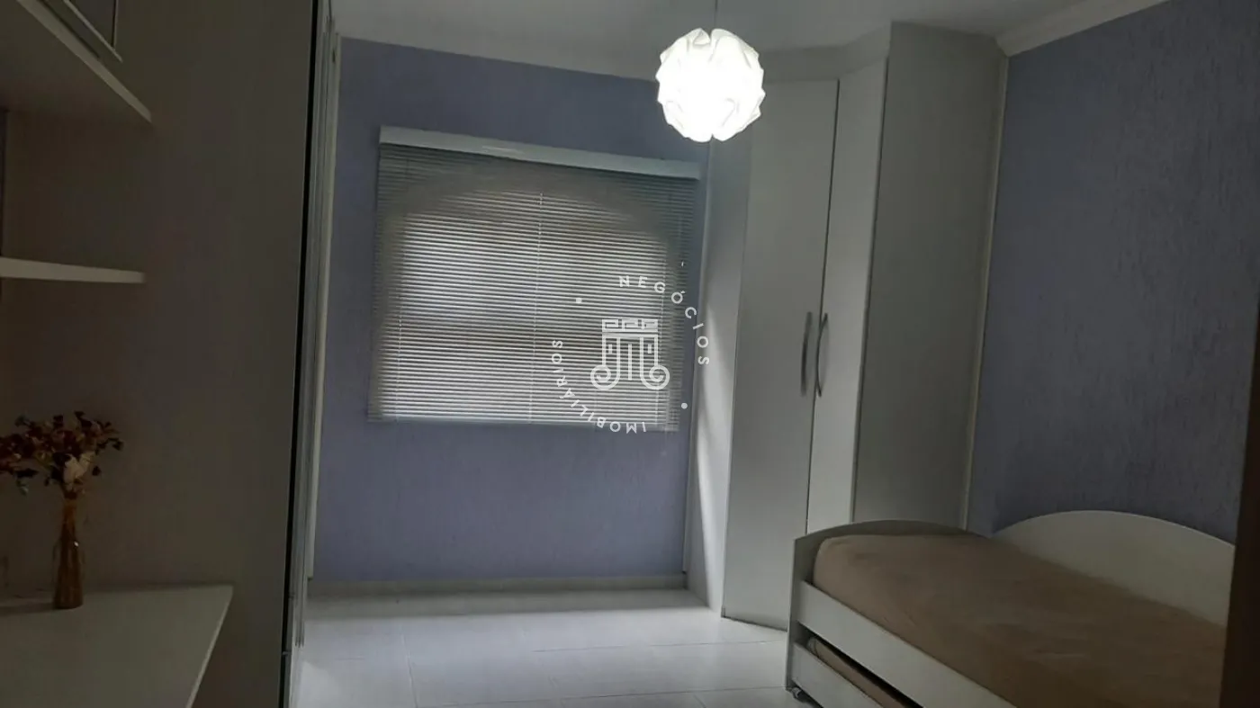 São três suítes, sendo uma delas com closet. O hall social dá acesso à sala com três ambientes e lareira, além de uma sacada com vista para a área de lazer. A cozinha é planejada e integrada à área de serviço.