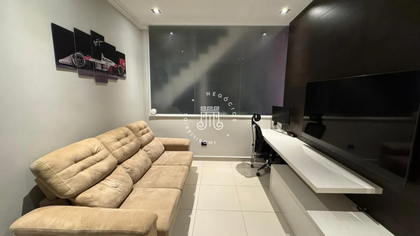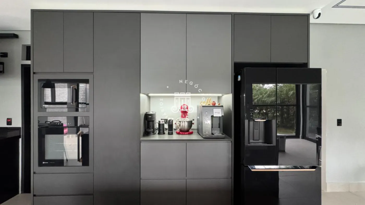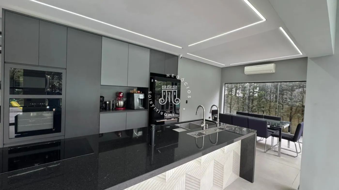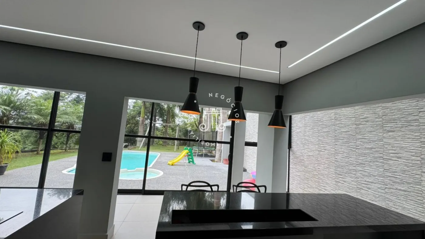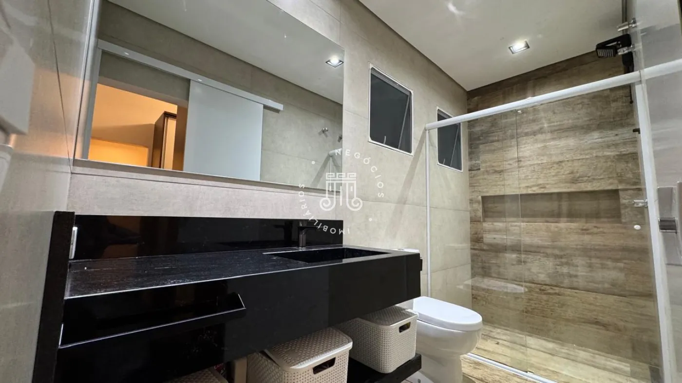 03 suítes sendo 01 master com closet, sala de estar, escritório, cozinha integrada com área gourmet e churrasqueira, piscina com cascata e led, 03 lavabos sendo 02 para atender o piso inferior e 01 no piso superior, garagem para 06 carros, sendo 02 cobertas. A casa ainda conta com gerador de energia e ponto de carregamento para carro elétrico, 12 placas de energia fotovoltaica.
