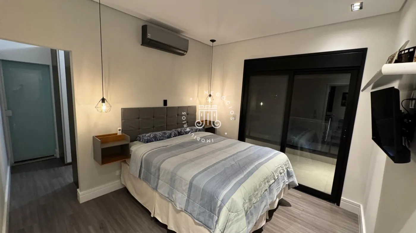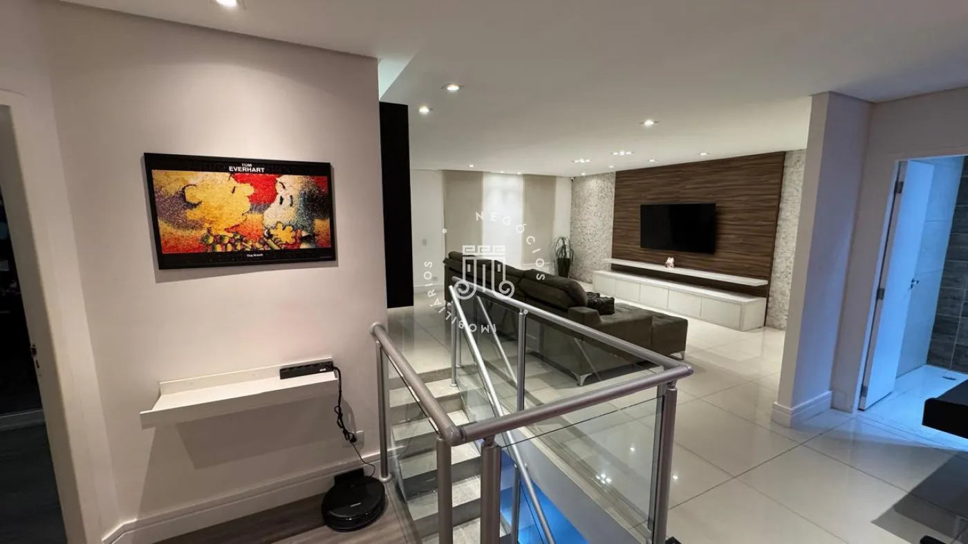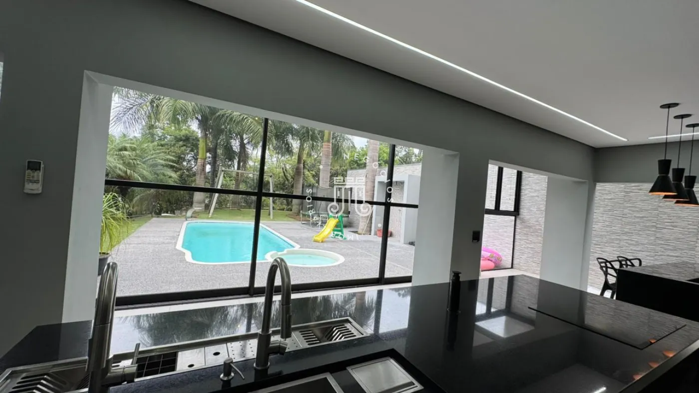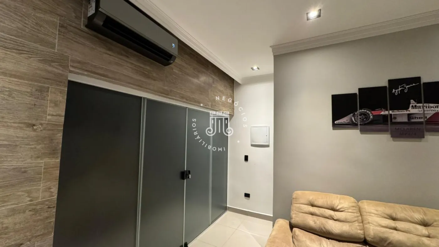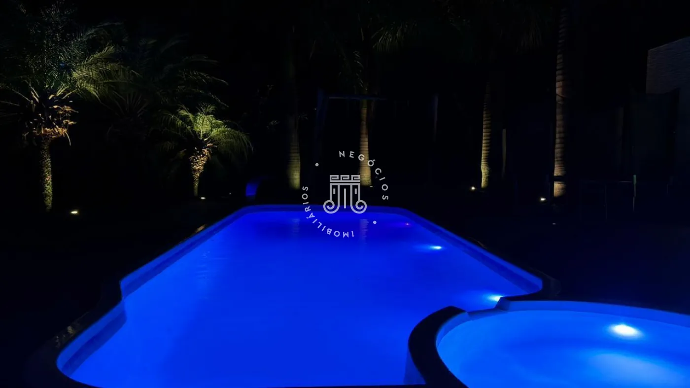 03 suítes sendo 01 master com closet, sala de estar, escritório, cozinha integrada com área gourmet e churrasqueira, piscina com cascata e led, 03 lavabos sendo 02 para atender o piso inferior e 01 no piso superior, garagem para 06 carros, sendo 02 cobertas. A casa ainda conta com gerador de energia e ponto de carregamento para carro elétrico, 12 placas de energia fotovoltaica.