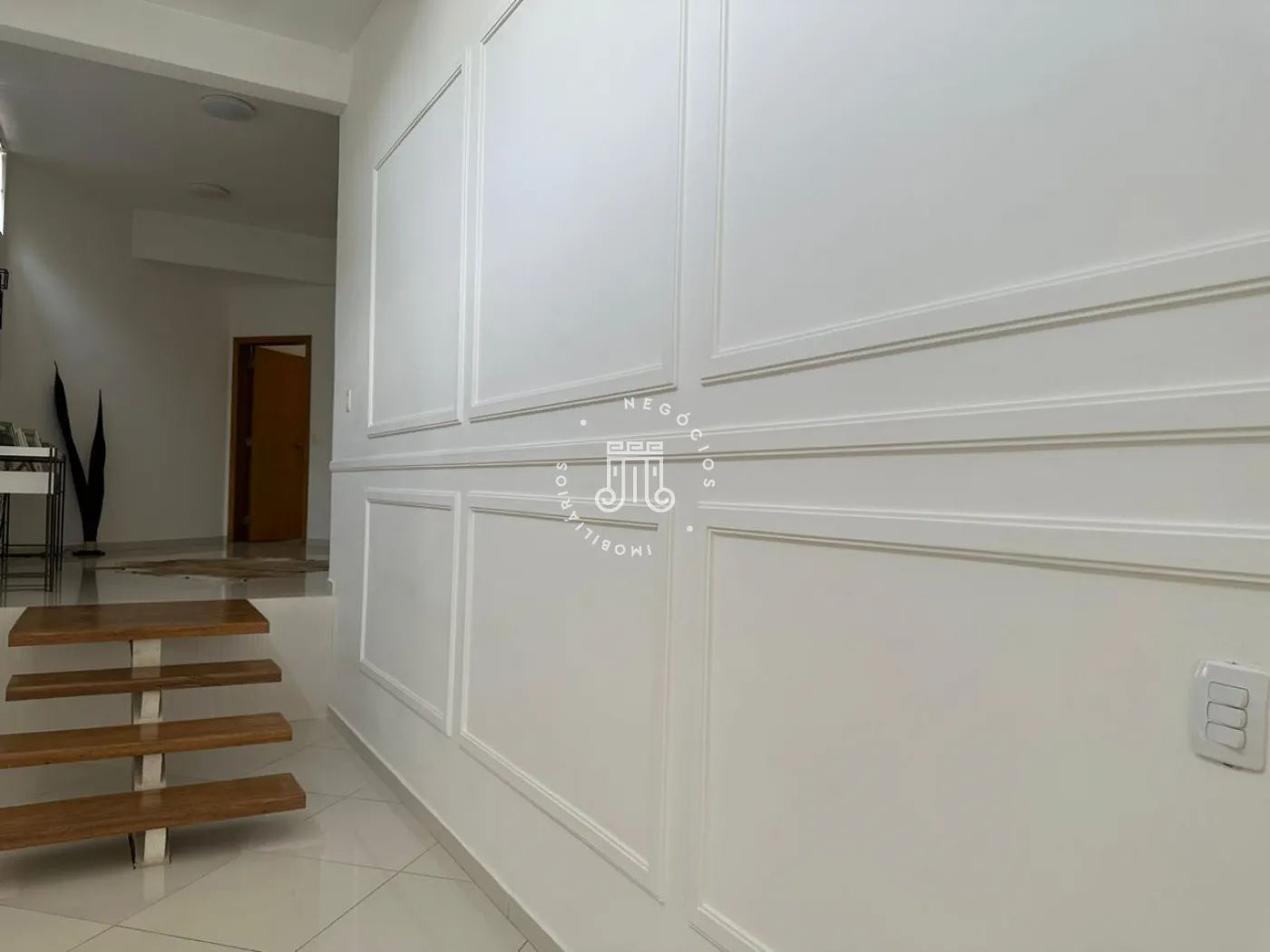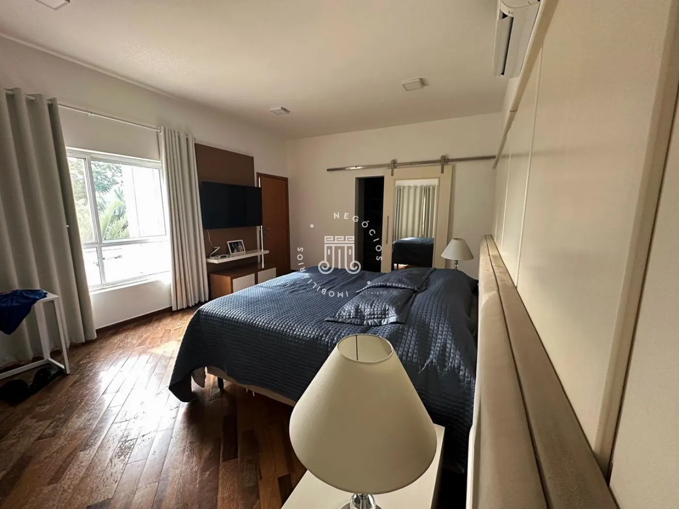 - Sala de tv com cortinas automatizadas e pé direito duplo;